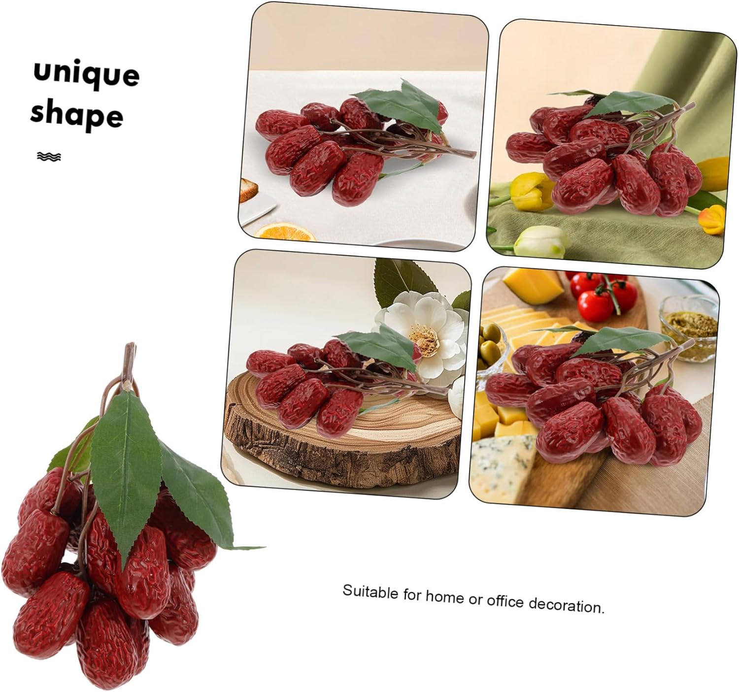 Applicazione versatile: prodotto può essere utilizzato come decorativo, oggetto o strumento didattico, offrendo molteplici usi per diverse esigenze e contesti, decorazioni artificiali, cibo per feste Esposizione didattica: la giuggiola artificiale essiccata è adatta per esposizioni didattiche, offrendo una rappresentazione realistica delle per l'insegnamento e l'apprendimento, datteri finti, decorazioni realistiche Multifunzionale: prodotto può essere utilizzato come decorativo, oggetto o strumento didattico, offrendo molteplici usi per diverse esigenze e contesti, modelli cibo artificiale, dattero rosso Design dettagliato: la giuggiola essiccata realistica è realizzata con attenzione ai dettagli, assicurando assomigli esattamente alla cosa , rendendola adatta a usi, alimentare, simulazione giuggiola essiccata Oggetto per film e televisione: la data simulazione è per l'uso in produzioni cinematografiche e televisive, fornendo un oggetto realistico e affidabile per varie scene, decorazione artificiali, frutta realistica