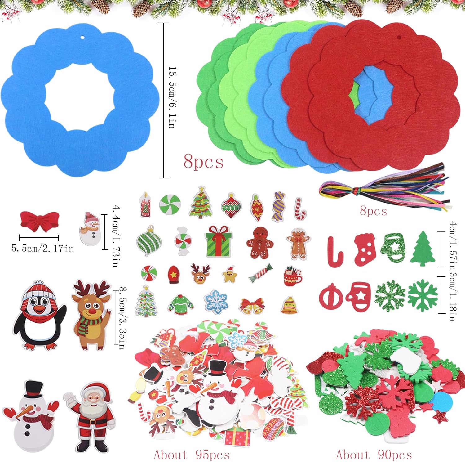 Set fai da te natalizio: 266 set di decorazioni natalizie per bambini, tra cui 16 basi in schiuma in 4 colori; 150 adesivi natalizi in schiuma; 8 nastri. Con questo set potrete dare libero sfogo alla vostra creatività e creare la propria ghirlanda natalizia Materiali di alta qualità: il set di ghirlande natalizie è realizzato in feltro di alta qualità, durevole, resistente agli strappi, inodore e sicuro per i bambini. È resistente e leggero, non si rompe facilmente e può essere utilizzato a lungo. Si allenerà le capacità pratiche e creative dei bambini Set fai da te per il fai da te per Natale: il set per il fai da te contiene diversi elementi natalizi come fiocchi di neve, pupazzi di neve, Babbo Natale, alberi di Natale, pinguini, ecc., che conferiscono alla tua decorazione un carattere più tridimensionale. Puoi combinarli liberamente per creare diversi design Facile da usare: ogni accessorio per ghirlande fatto a mano viene fornito con adesivi per un facile fissaggio. I bambini possono progettare in base alle loro preferenze e alla loro immaginazione, basta personalizzare gli accessori e incollarli insieme per completare la ghirlanda personalizzata e appenderla ovunque tu voglia decorare, molto divertente Decorazione natalizia perfetta: queste ghirlande natalizie sono perfette per decorare progetti di artigianato natalizio, biglietti di Natale, feste per bambini e decorazioni in classe. Possono anche essere incollati su finestre, porte e altri luoghi per decorare e creare un'atmosfera natalizia