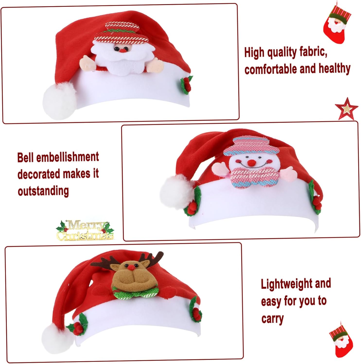 Descrizione prodotto dei pacchetti 3 cappelli Natale Caratteristiche - Materiale: Cappello stoffa per feste Natale per . - Colore: Articoli natalizi assortiti. - Dimensioni: circa 30,00X24,50X1,00 cm/11,79X9,63X0,39 pollici Cappello invernale per . -Informazioni sul prodotto: Cappello natalizio per - Disponibili in colori vivaci e in uno adorabile, aggiungono un'atmosfera festosa ai cappellini natalizi per . - È realizzato con materiali qualità, è sulla e ha un berretto natalizio per . - Questo adorabile cappello è perfetto per spettacoli, giochi ruolo, oggetti per foto, regali Natale, ecc. Cappello per feste Natale. - Mantiene i vostri al e li rende adorabili nelle fredde giornate invernali. Costume per . - Questo cappello è perfetto per qualsiasi attività all'aperto quando fa freddo ed è perfetto per il periodo invernale dei durante il periodo natalizio. Descrizione della merce Cappello per feste Natale per accessorio per costumi per feste Natale, cosplay Natale, compleanni, Capodanno, , spettacoli teatrali, riprese fotografiche, ecc. Cappello invernale per Questo cappello Natale è progettato per i . Cappello invernale per Realizzato in materiale, piacevole al tatto, adatto ai , sulla l'uso Avviso di sicurezza 1