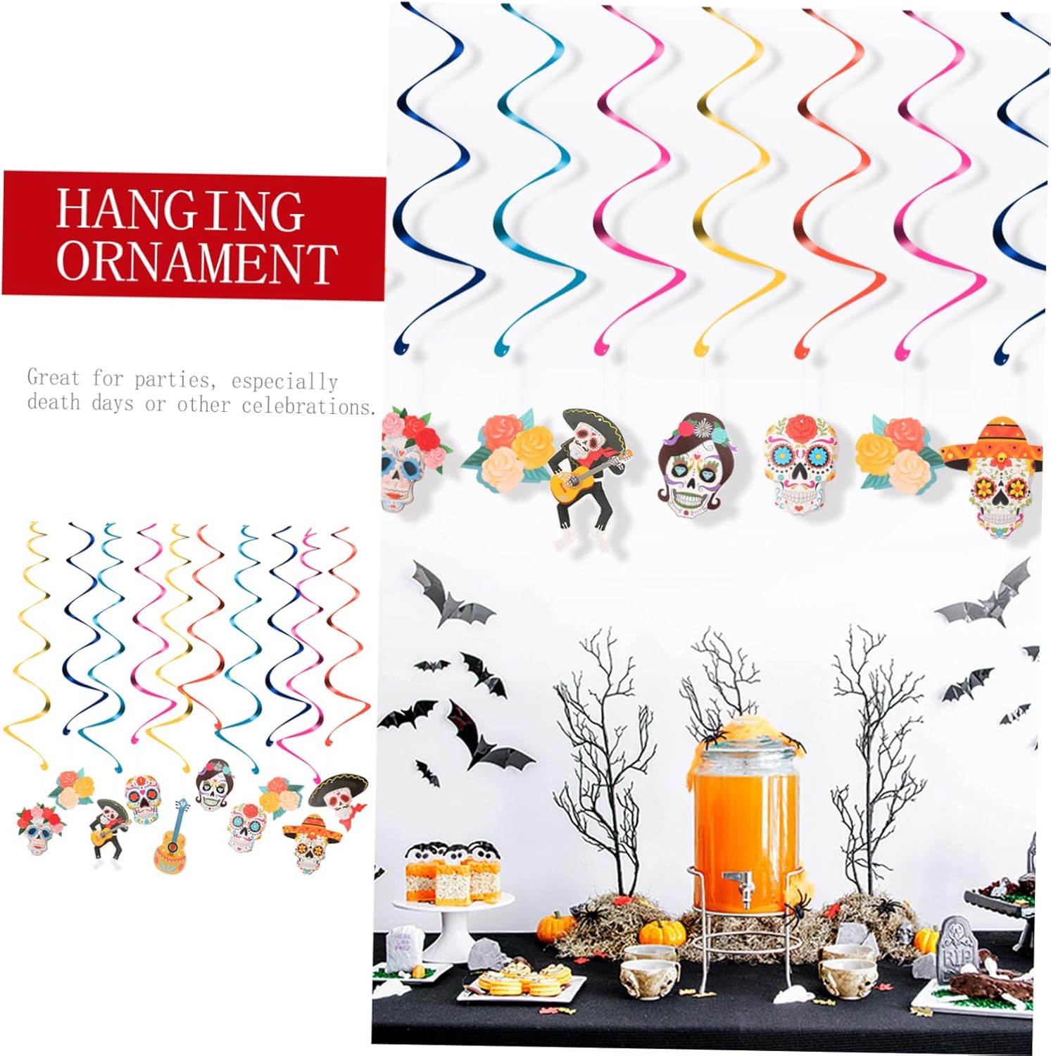 Ciondolo a spirale: ottima scelta decorativa per il dei morti e per la decorazione di case infestate, ciondolo del dei morti Ornamento a goccia: design a spirale di vari colori con taglio preciso e impeccabile, ornamento da appendere Forniture per feste: possono davvero aggiungere più atmosfera da festa alla tua festa, ciondolo per festa messicana Ornamento messicano da appendere per il dei morti: colori bellissimi e lavorazione raffinata, ciondolo per il dei morti Decorazione da appendere per feste a tema: realizzata con materiali di prima qualità e con raffinata lavorazione artigianale, ciondolo del dei morti