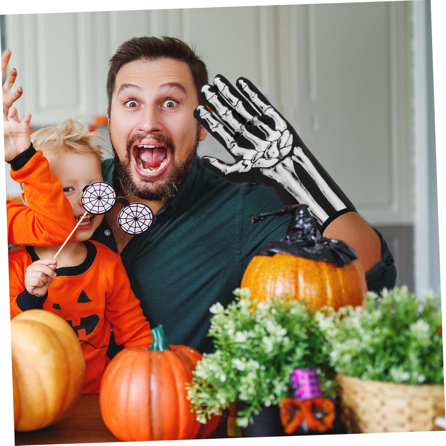 🎉 CARATTERISTICHE DEL PRODOTTO IN EVIDENZA: QUESTI GUANTI UNICI A DITA INTERE NON SONO SOLO UN ACCESSORIO; SEI UNA DICHIARAZIONE. REALIZZATO CON ATTENZIONE DA MATERIALI IN TESSUTO, IL MIX DI STILE E FUNZIONALITÀ. IL MOTIVO DEL TESCHIO AGGIUNGE UN TOCCO SPAVENTOSO A QUALSIASI COMPLETO, RENDENDO QUESTI GUANTI UN PEZZO IN QUALSIASI GUARDAROBA DI HALLOWEEN. ✨ COMODI DA INDOSSARE: QUESTI GUANTI A DITA INTERE SONO DOTATI DI FODERA CALDA E TRASPIRANTE E PROGETTATI PER MANTENERE COMODAMENTE CALDE LE MANI MENTRE GARANTISCONO LA REGOLAZIONE DELL'UMIDITÀ. CHE STAI TRUCCHANDO O RICORDANDO IN UNA SERATA FRESCA O PARTECIPANDO A UNA GRANDE FESTA DI HALLOWEEN, questi guanti ti terranno comodo tutta la notte. 🎨 FASCINO VERSATILE: QUESTI GUANTI SCHELETRO SENZA DITA SONO ADATTI SIA PER UOMINI CHE PER DONNE, SONO MULTI-GENERE E FORNISCONO UNA VESTIBILITÀ UNISEX ADATTA SIA PER UOMINI CHE PER ADULTI. Sono un'aggiunta fantastica a qualsiasi costume, sia che tu ti vesta da fantasma spettrale o da minacciosa figura mortale, aggiungendo un tocco horror chic al tuo look. 📸 OGGETTI FOTOGENICI: OLTRE AL LORO RUOLO DI ACCESSORI INDOSSABILI, QUESTI GUANTI MORTALI SCHELETRO SERVONO ANCHE COME OGGETTI FOTOGENICI, ideali per catturare momenti memorabili durante le riunioni a tema Halloween. Che tu stia scattando foto per il tuo feed sui social media o allestendo una cabina fotografica a tema, questi guanti garantiranno che ogni scatto attiri davvero l'attenzione. 🎁 FESTIVO: QUESTI GUANTI SONO UN'OTTIMA FONTE PER LA TUA serata di HALLOWEEN. Gli ospiti saranno lieti di ricevere un'atmosfera così premurosa e spettrale. Inoltre, fungono da elemento decorativo e migliorano l'atmosfera della sala delle feste con la loro presenza inquietante ma elegante.