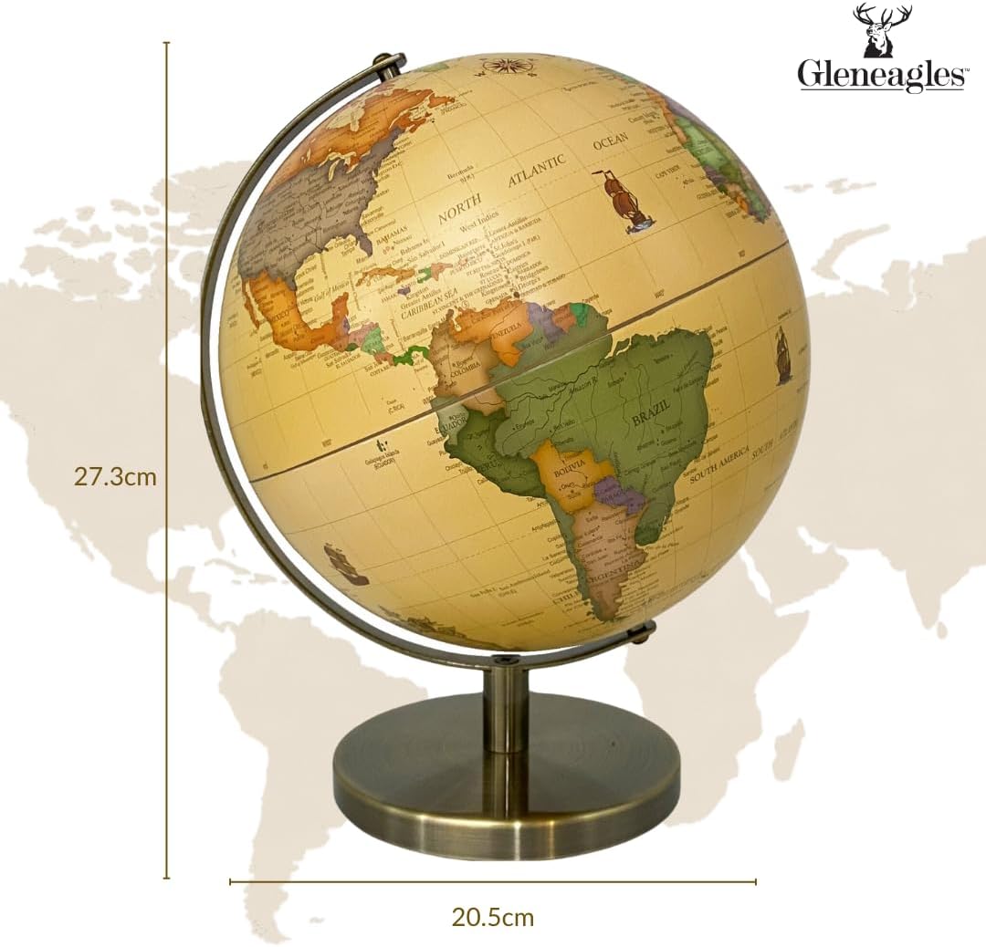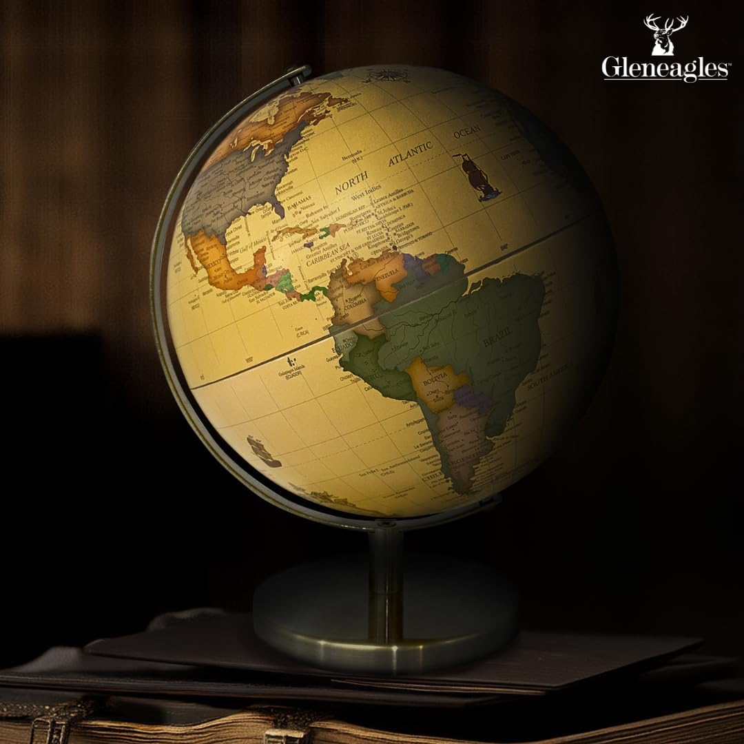 Esplora il mondo: segna i tuoi viaggi con questo splendido globo da viaggio Gleneagles da 20 cm, un elegante e moderno mappamondo Geo Globe lampada perfetta per avventurieri e gadget per gli uomini. Tieni traccia delle tue avventure: utilizza i 25 adesivi in argento e 25 gemme d'oro inclusi per contrassegnare i luoghi che hai viaggiato, rendendolo la mappa perfetta del mondo per tenere traccia dei tuoi viaggi globali. Divertimento per bambini e adulti: ottimo come globo per bambini o adulti, questo globo illuminato ti consente di illuminare i tuoi ricordi di viaggio, combinando apprendimento e divertimento, il globo perfetto per adulti o bambini. Idea regalo perfetta: ideale per viaggiatori, esploratori e coloro che amano le mappe, questo globo è il gadget definitivo per gli uomini e una grande mappa del mondo per qualsiasi casa o ufficio. Decorazione da scrivania per casa e ufficio: eleva il tuo spazio con questo elegante mappamondo in stile antico, una mappa del mondo sofisticata e moderna che funge anche da elegante decorazione da scrivania per qualsiasi ufficio.