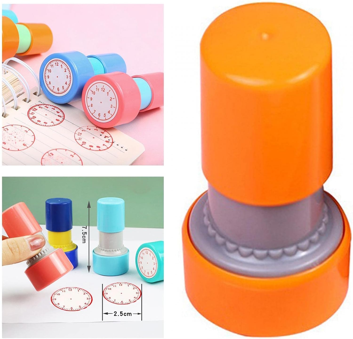 Regalo per bambini: dai 3 anni in su. Progetti di arti e mestieri fai-da-te: francobolli per attività artistiche e artigianali, ideali per feste di compleanno, scrapbooking, artigianato, arte, che incoraggiano l'espressione creativa e l'immaginazione. Timbro dell'orologio: questo timbro dell'orologio è adatto per l'apprendimento e l'istruzione. DIMENSIONE PERFETTA: ideale per le mani dei più piccoli e facile da usare per i bambini, ogni timbro misura ca. 2,5 cm. Insegna ai tuoi figli a leggere l'ora: i quadranti dell'orologio non hanno lancette, quindi i bambini possono disegnarne uno proprio, il che aiuta i bambini a leggere e capire l'ora!