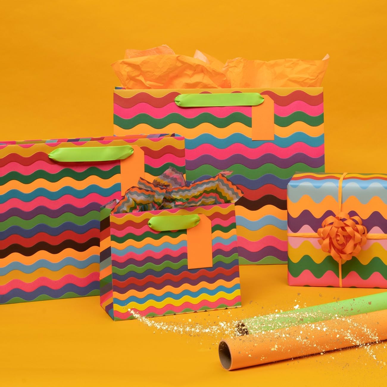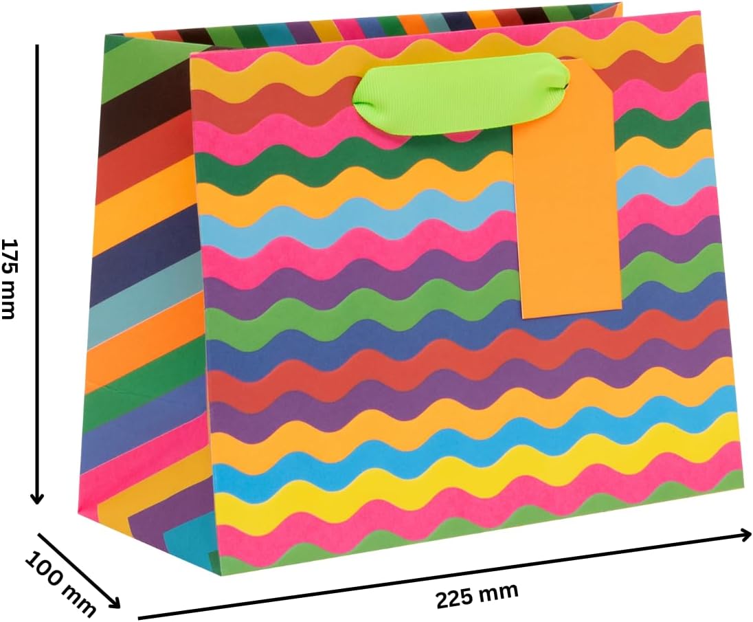 Stampato su carta di alta qualità da 210 g/m² per resistenza e stile, perfetta per compleanni e celebrazioni speciali. Dimensioni: 175 x 225 x 100 mm, ideale per più piccoli oggetti o regali di medie dimensioni, offre un'alternativa raffinata alla carta da regalo Completamente riciclabile una volta rimosso il manico a nastro, elegante, resistente e sostenibile. Parte della collezione premium di carta da regalo, etichette, sacchetti, nastri e carta velina di Glick per tutte le stagioni.