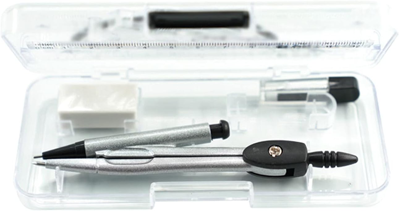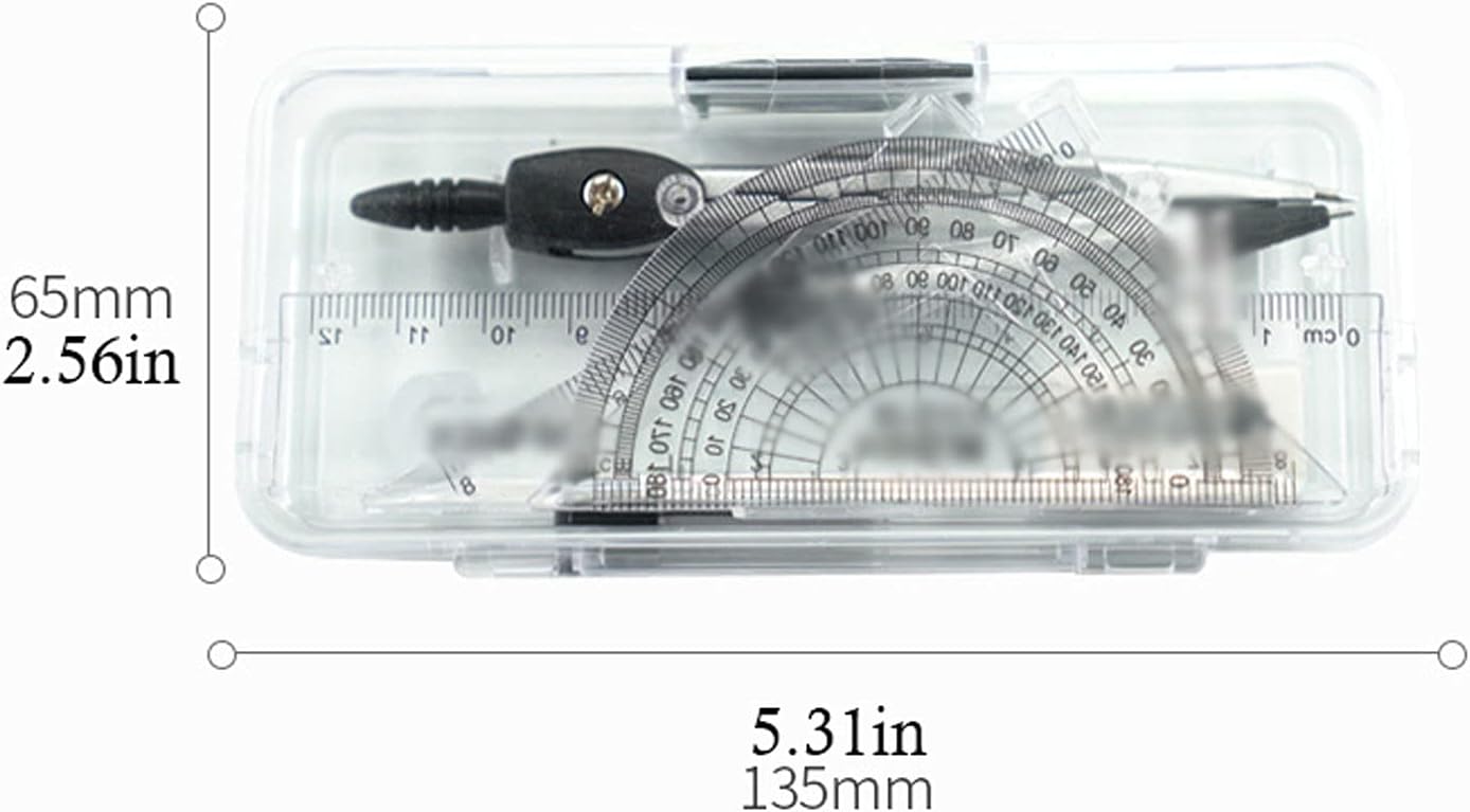 Dettagli del prodotto: Compasso, nucleo in piombo, gomma, righello, 2 triangoli (45° e 30°/60°), protettore. La dimensione della scatola di immagazzinaggio è 135*65 mm/5,31*2,56 pollici. La bussola matematica è realizzata in lega di zinco, che non si deforma facilmente, sbiadisce e è durevole. Design monopezzo, baricentro stabile, scorrimento regolare, formazione di un tratto, disegno semplice; Stretta di mano a forma di penna, sensazione di mano confortevole e comoda da tenere. Il kit geometrico ha una scatola trasparente per riporlo in modo facile, facile e conveniente. Adatto a insegnanti e studenti, il nostro set di compassi può disegnare qualsiasi forma geometrica.