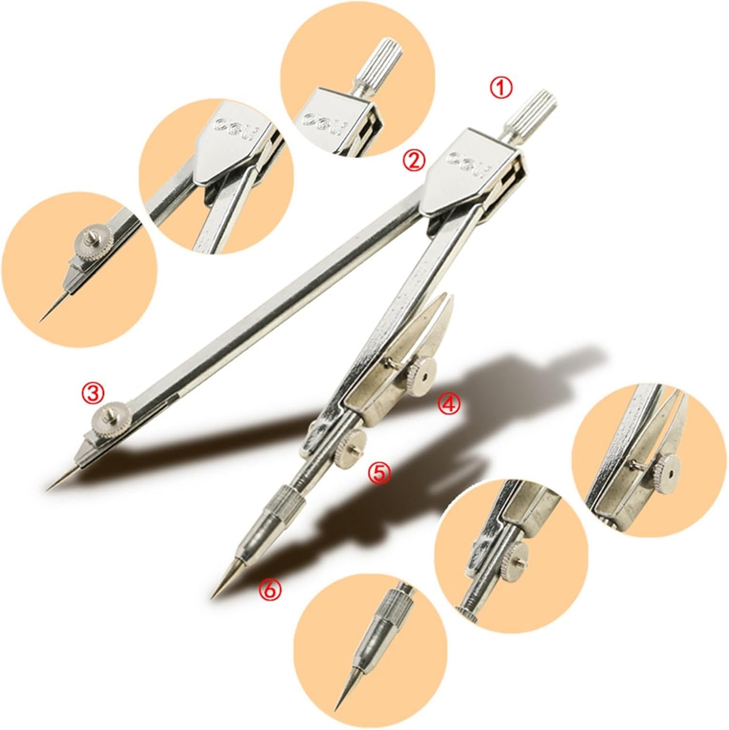 Di piccole dimensioni. Leggero. Facile da indossare. Alta precisione. Comodo da usare. Durevole nell'uso. Perfetto strumento professionale per il disegno o la cancelleria. Il kit di geometria matematica è molto adatto per l'uso a scuola o a casa. Ottimo per l'uso a scuola o a casa. Il miglior strumento per disegnare cerchi per studenti, artisti, matematici, falegnami. Adatto a insegnanti e studenti, il nostro set di compassi può disegnare qualsiasi forma geometrica.