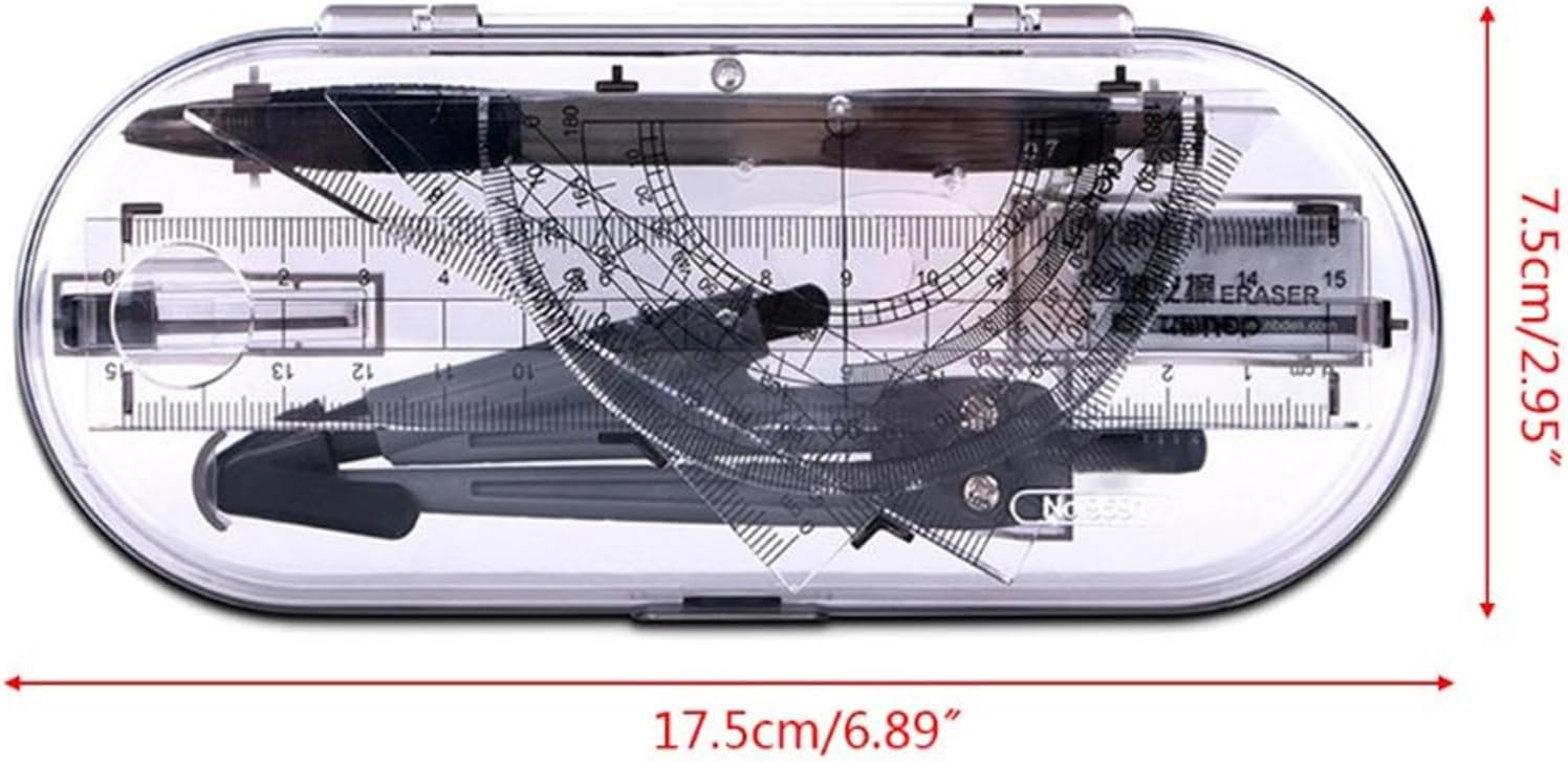 Dimensioni compatte e peso leggero, facile da trasportare. 8 pezzi di cancelleria in una custodia, facile da riporre. Perfetto strumento professionale per il disegno o la cancelleria. Ottimo regalo per gli studenti che tornano a scuola dalle vacanze. Esistono 4 diverse forme di righelli per soddisfare le diverse esigenze. Adatto a insegnanti e studenti, il nostro set di compassi può disegnare qualsiasi forma geometrica.