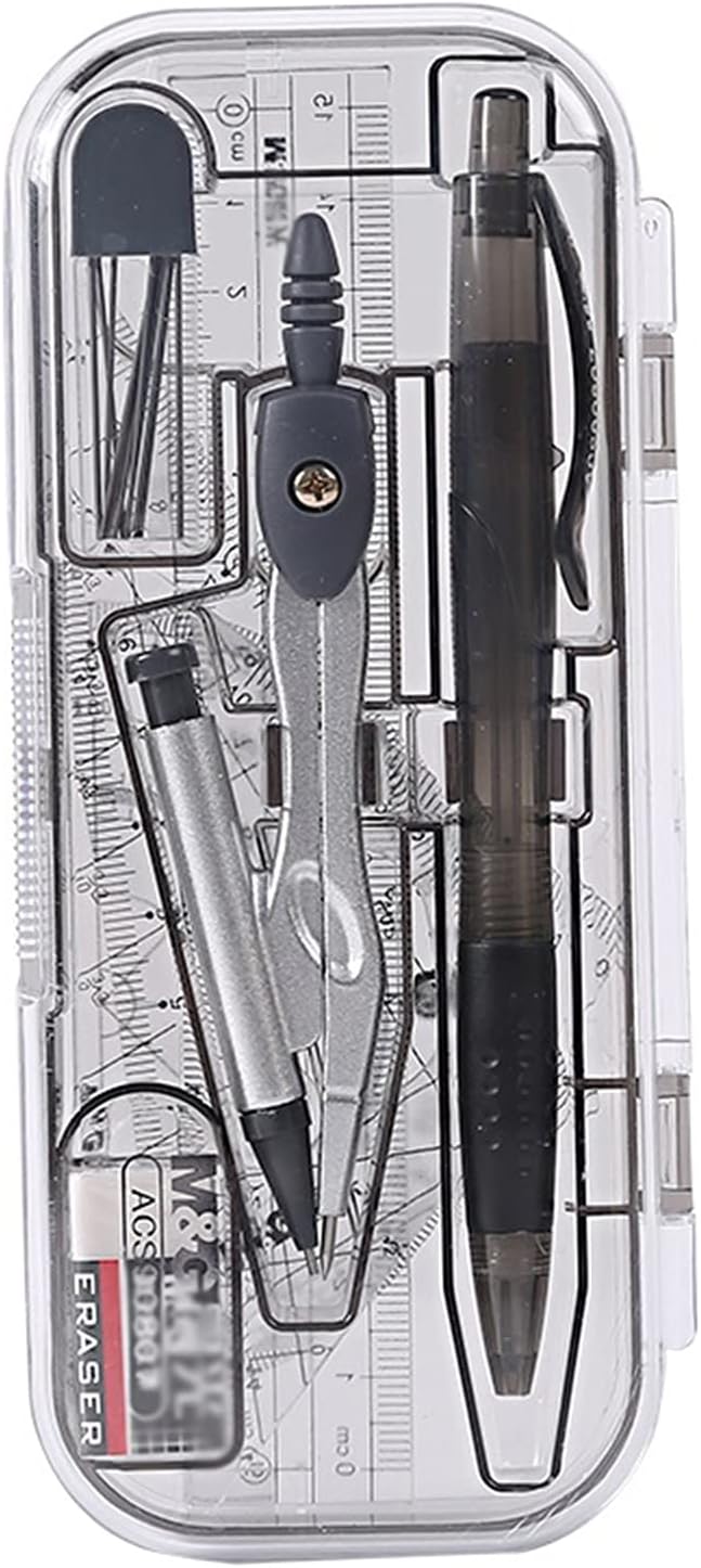 1. Piccole dimensioni, facile da riporre e trasportare 2. Contiene uno strumento di misurazione dell'angolo di 180, un righello da 15 cm, due piastre triangolari, una matita meccanica da 0,7 mm, una bussola da 0,7 mm, una gomma e 10 cuori di piombo 3. Materiale Plastica, scala trasparente, chiaramente visibile 4. Il righello ha diverse funzioni per soddisfare le diverse esigenze 5. Adatto per l'apprendimento, l'ufficio e molte altre aree Adatto a insegnanti e studenti, il nostro set di bussole può disegnare qualsiasi forma geometrica.