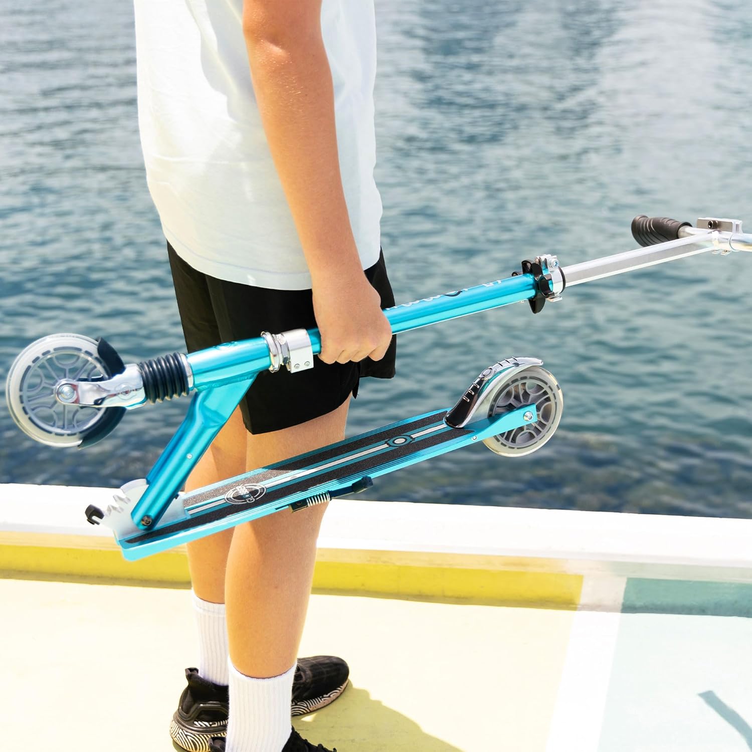 MONOPATTINO A 2 RUOTE REGOLABILE ED EVOLUTIVO | Pedana in alluminio rinforzato che supporta fino a 100 kg. Il suo manubrio si regola su 4 altezze (80 / 85 / 90 / 95 cm) per adattarsi a bambini, adolescenti e adulti. MONOPATTINO PIEGHEVOLE E LEGGERO | Il FLOW ELEMENT LIGHTS è dotato di un sistema di chiusura unico, sicuro, pratico, ultra rapido e che non pizzica le dita. È versatile, facilmente trasportabile ovunque ed è dotato di cavalletto. MONOPATTINO LEGGERO E RESISTENTE | Con un peso piuma di 3,25 kg, il monopattino a 2 ruote FLOW ELEMENT LIGHTS è realizzato in alluminio per una lunga durata. Leggero e robusto, pensato per essere tramandato di generazione in generazione. PRATICO, COMPATTO E CONFORTEVOLE | Dotato di una pedana in alluminio, un manubrio largo e curvo, manopole morbide e resistenti pieghevoli, e un cavalletto. Freno in alluminio che preserva la durata della ruota. MONOPATTINO DIVERTENTE E LUMINOSO | Ruote anteriori e posteriori da 125 mm luminose, con sistema dinamo (senza batterie), in PU ad alto rimbalzo che assorbe le vibrazioni. Parafango anteriore e freno posteriore che protegge dall’usura. Cuscinetti ABEC 9.