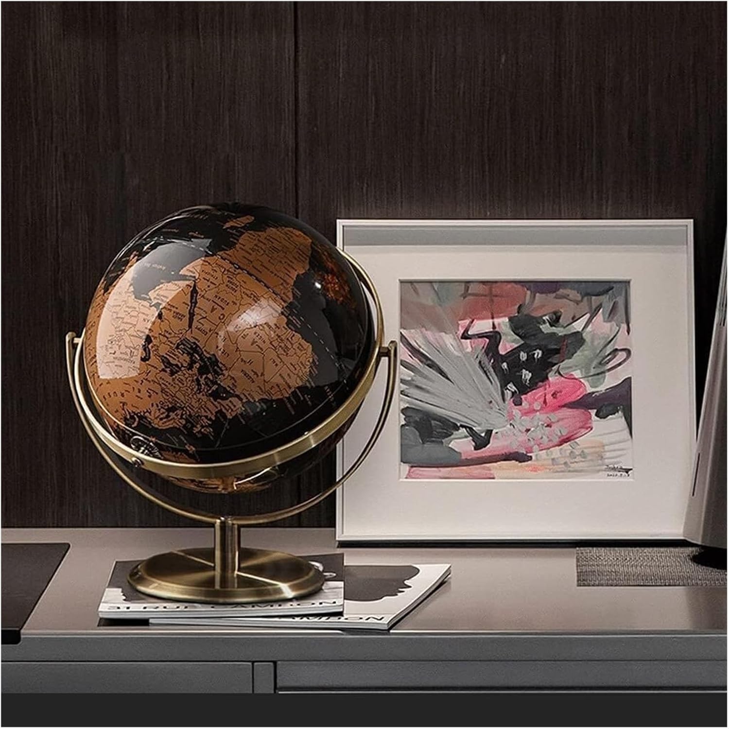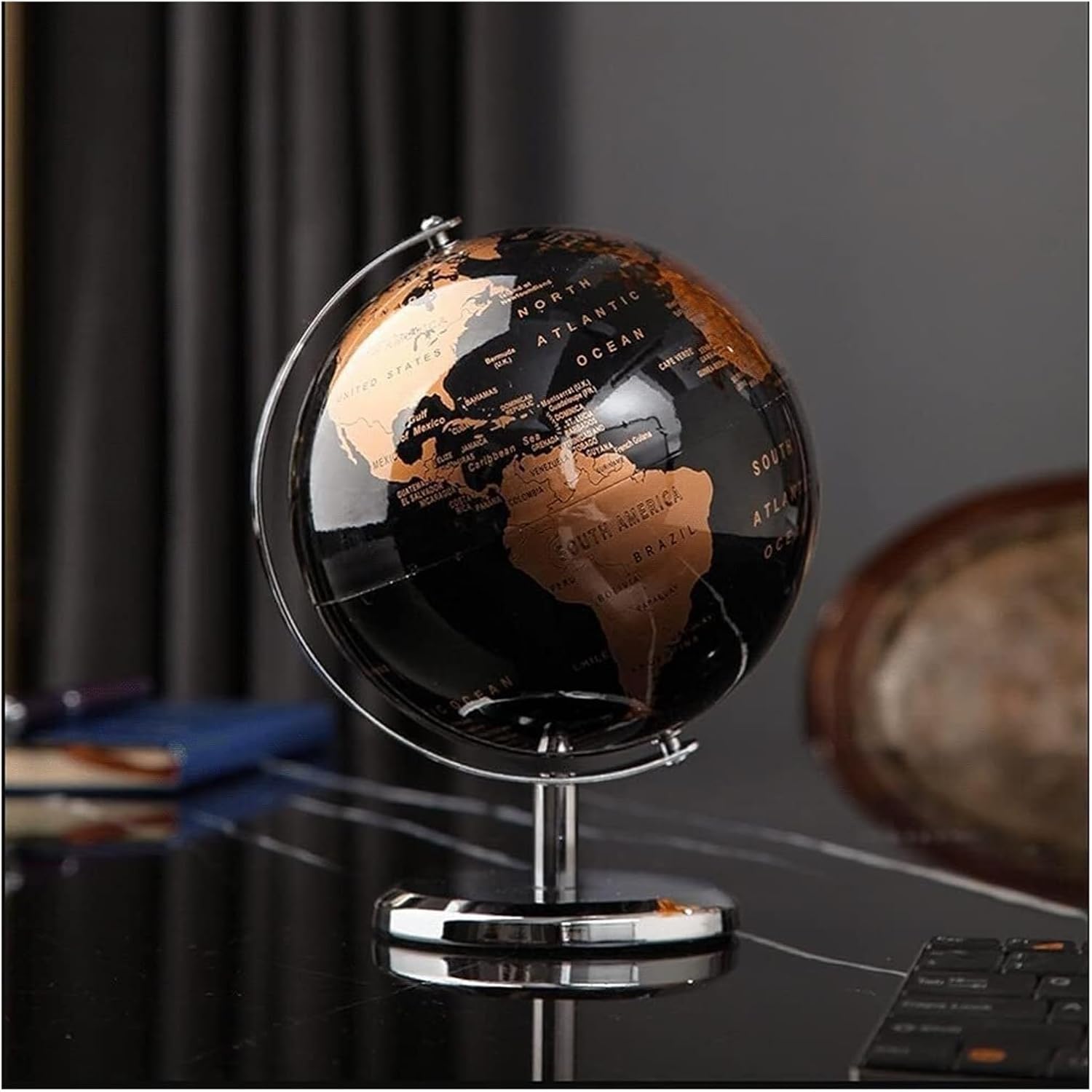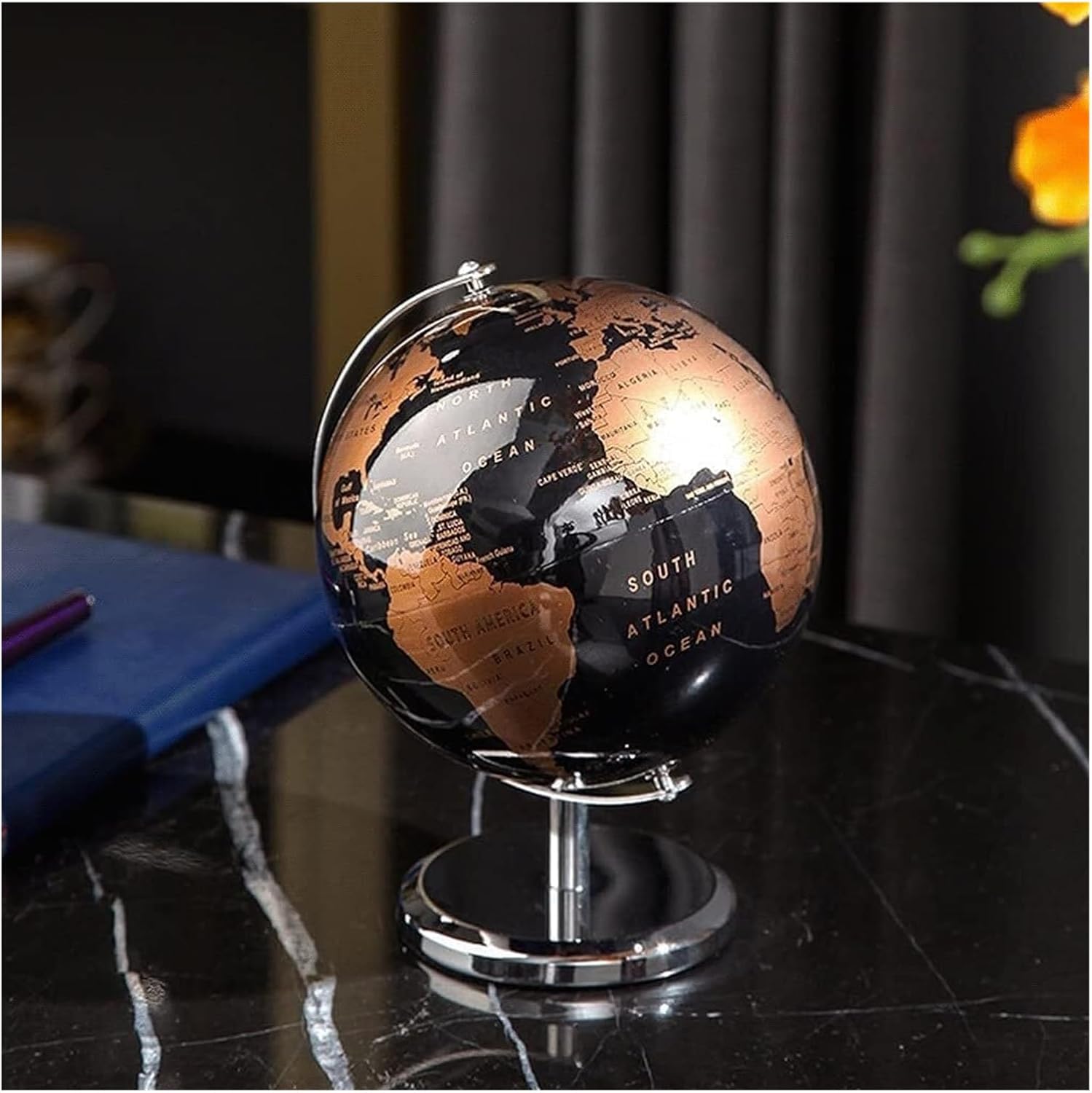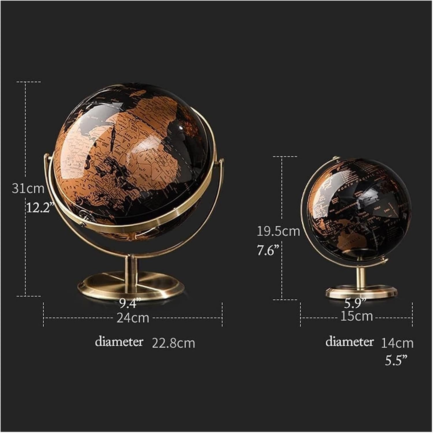 I mappamondi da tavolo aggiungono un tocco senza tempo di raffinatezza e curiosità intellettuale a qualsiasi arredamento domestico o d'ufficio. La superficie del nostro globo è appositamente trattata per consentire la scrittura, la marcatura, ecc., è impermeabile e può essere conservato a lungo, garantendo una maggiore durata. Materiali plastici tecnici di alta qualità, materiale del telaio sferico: metallo ramato. Globo grande, doppia latitudine girevole, girevole a 720°. Globo piccolo, girevole a 360° Stampa a colori ad alta definizione, stampa ad alta fedeltà con macchine tedesche, più nitida e il colore non sbiadisce a lungo.