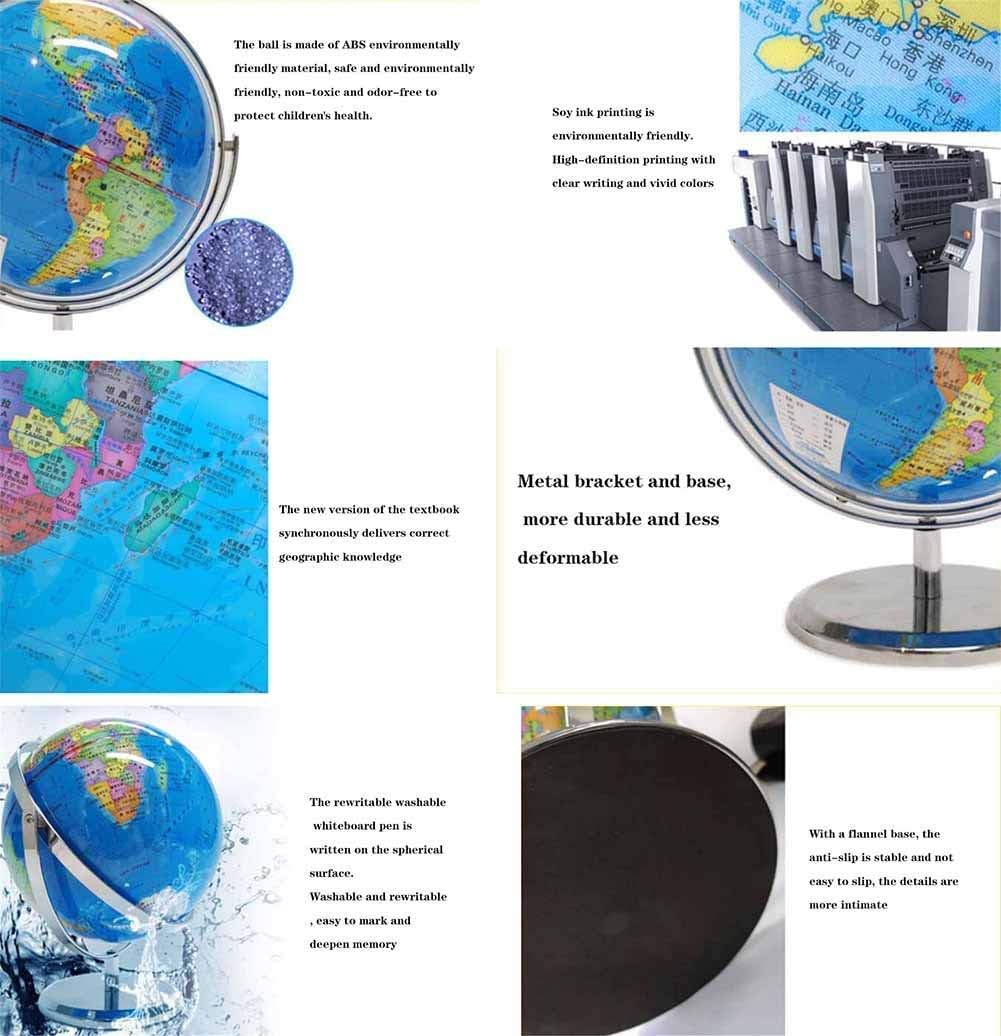 La dimensione di questo mappamondo per bambini è 28 x 14 cm (H x L) scala della mappa: 1:61.700.000. Questo mappamondo ti offre la mappa completa del mondo per vedere chiaramente tutti i contenuti, gli oceani e i paesi. Diversi paesi stampati con colori diversi su un grande globo sono facili da leggere e riconoscere tutti i piccoli paesi su questo globo del mondo. Questo mappamondo con supporto è realizzato in plastica resistente e liscia che può essere ruotato facilmente con le dita. La base di questa scrivania è rivestita in flanella per rimanere stabile durante la rotazione e non graffiare la superficie della scrivania durante lo spostamento Se hai domande, ti preghiamo di contattarci via e-mail e ti risponderemo entro 24 ore! Questo mappamondo per adulti è una mappamondo per imparare la geografia comodamente con dimensioni potabili. Il mappamondo blu dell'oceano mostra chiaramente i vivaci oceani blu, i confini regionali colorati, i paesi etichettati, le città, i corpi idrici e le linee di longitudine e latitudine