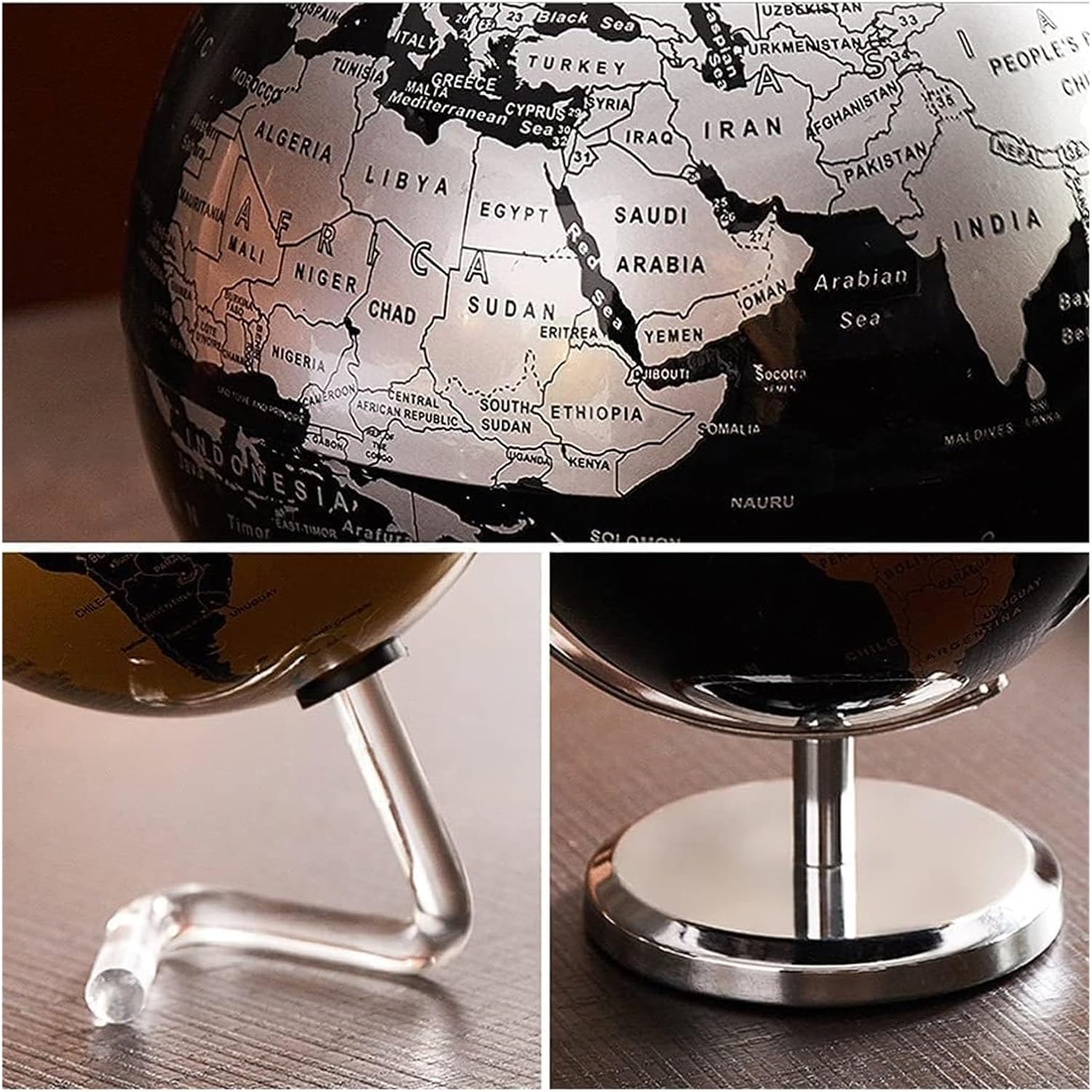 Bellissimo mappamondo accattivante, perfetto per la decorazione della casa e dell'ufficio, con un look elegante e moderno o per abbinarsi ai colori della posizione prescelta. Plastica di protezione ambientale ingegneristica di alta qualità, base in metallo. Non facile da deformare e non facile da indossare. Realizzato in polistirolo ad alto impatto con base in metallo per fornire supporto al peso per uso didattico o decorazione domestica. I paesi di tutto il mondo sono identificati con le lettere maiuscole per distinguerli dalle città minuscole. Il mappamondo dettagliato con oceani color argento, nero, grigio e arancione aggiunge un tocco di design ai design tradizionali