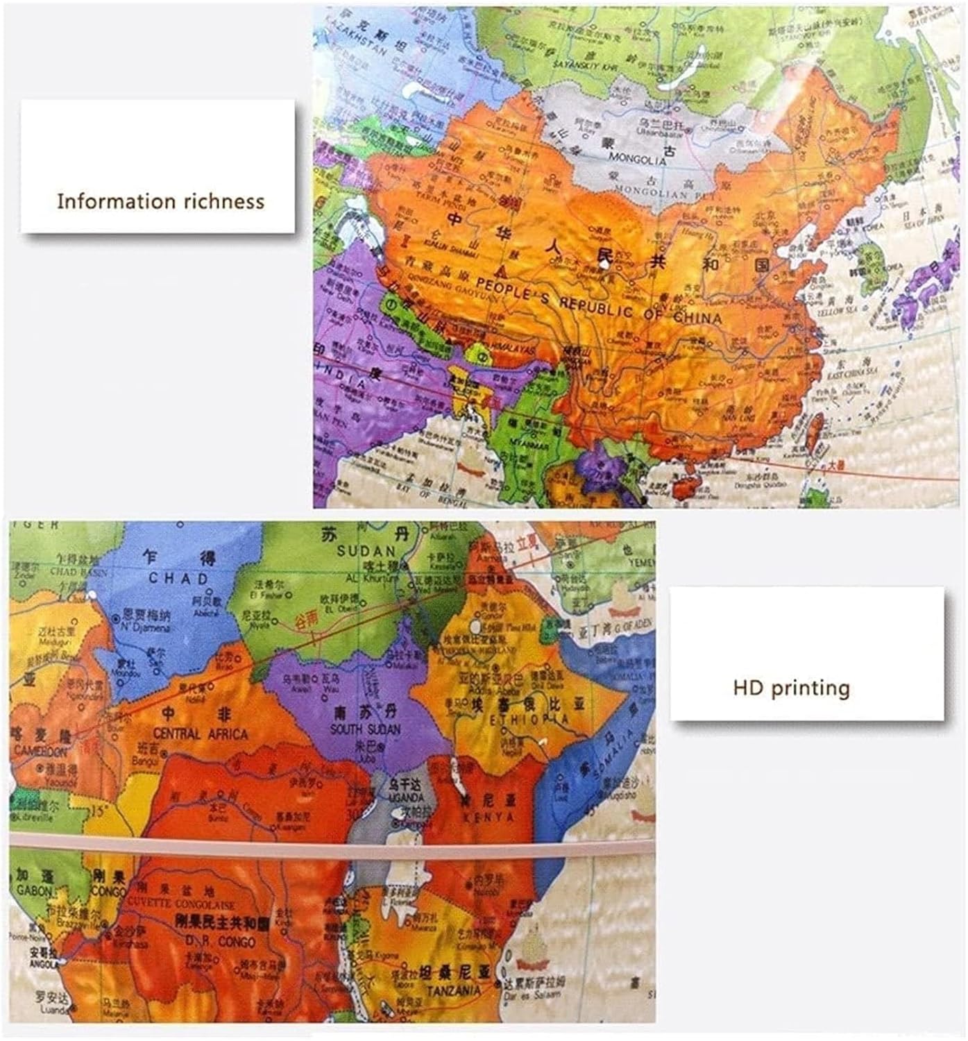Bellissimo mappamondo accattivante, perfetto per la decorazione della casa e dell'ufficio, con un look elegante e moderno o per abbinarsi ai colori della posizione prescelta. Una palla di plastica ABS sana ed ecologica che accompagna la tua salute. La staffa è realizzata in lega di zinco, che può essere ruotata in modo flessibile senza incepparsi o tagliarsi le mani. Diametro: 25 cm La superficie della palla adotta la tecnologia di stampa con picco a nove colori ad alta risoluzione con colori ricchi. Questo mappamondo politico è stampato con una mappa accurata che segna chiaramente continenti, oceani, confini nazionali e politici e capitali.