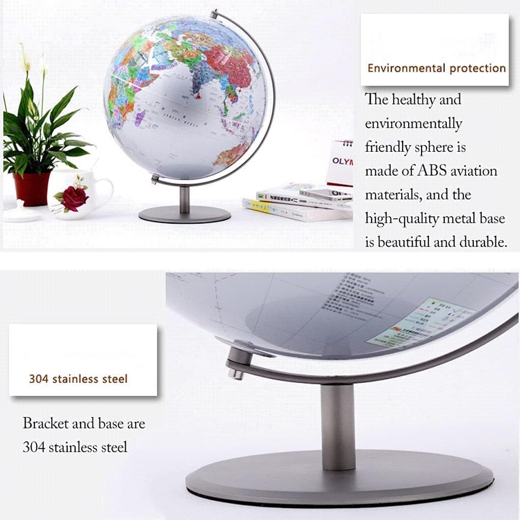 Globo colorato: questo bellissimo e colorato globo aggiungerà un colore meraviglioso alla tua casa, classe e sala giochi. Aiuta tuo figlio a immaginare il mondo, i continenti, i paesi e le città con globi interattivi accuratamente progettati. L'ultima versione: quasi 10.000 unità amministrative e informazioni geografiche, contrassegnate in cinese e inglese, arricchiscono la tua vita. Progettato per gli studenti: affidabile e durevole: mappe geografiche attuali, mezzi meridiani e linee di fondo solidi, rotazione terrestre senza soluzione di continuità. Stampa ad alta definizione: la superficie della sfera utilizza la tecnologia di stampa a pizzo a nove colori ad alta definizione con colori intensi. Staffa e base in acciaio inossidabile 304: staffa in acciaio inossidabile opaco, delicata e stabile, senza scolorimento. Montato su meridiana completa e base, finitura argento. Questo è un globo assemblato.