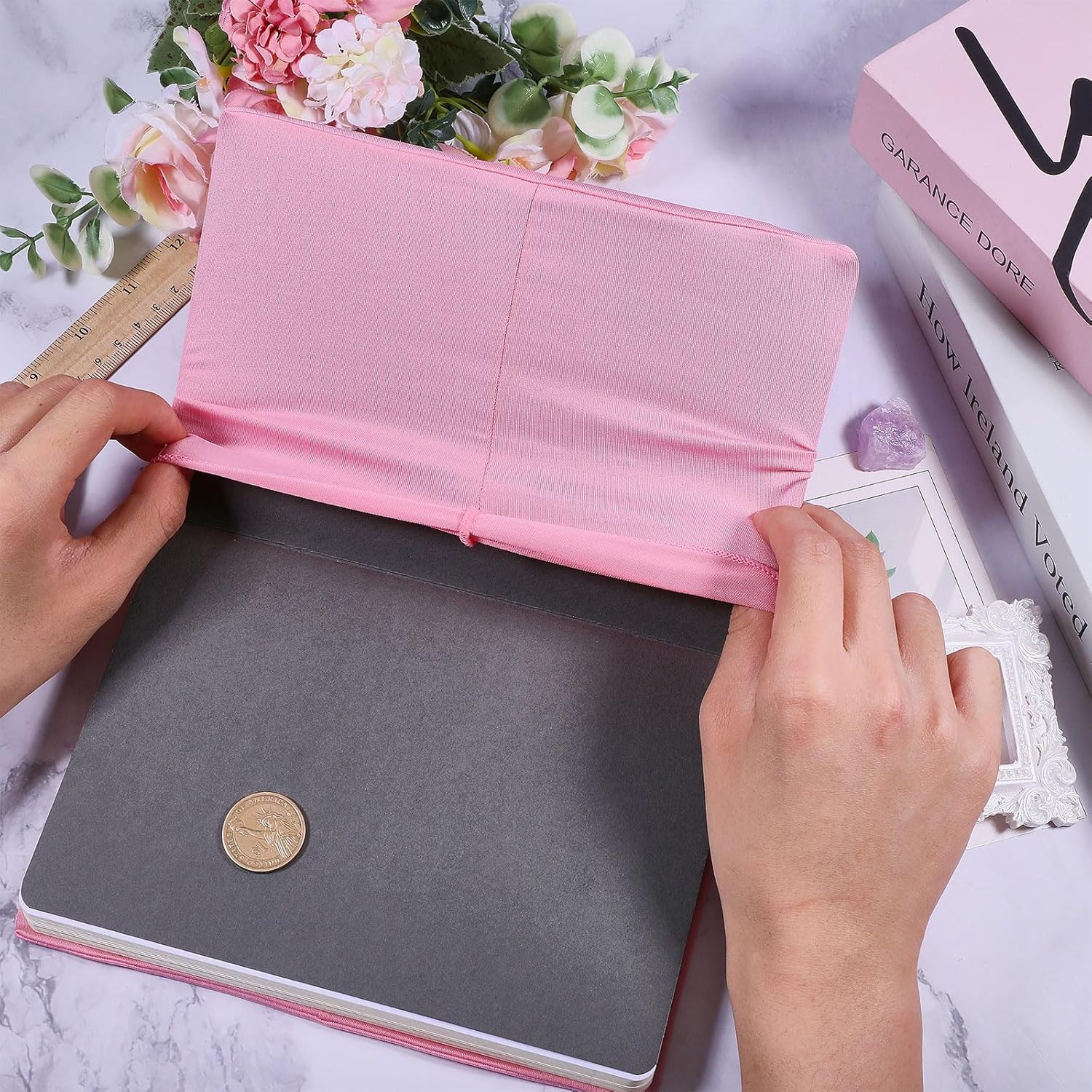 La confezione include:la confezione include 2 copertina per libro e 2 nastri. La quantità sufficiente può soddisfare le tue varie esigenze di decorazione e protezione dei tuoi libri. Dimensioni:ogni copertina in tessuto è lunga 325~330mm /12.8~13 pollici, 172~180mm / 6.8x7.1 pollici di larghezza, Spessore 1.4mm / 0.06 pollici, il nastro è lungo 260mm /10.2 pollici. Le sue dimensioni lo rendono adatto alla maggior parte dei libri di formato 6. Materiale di alta qualità:le copertine dei libri sono realizzate in tessuto di qualità premium, robusto e forte, resistente scivolamento, nessuna scoloritura o sbiadimento, facile da lavare, difficile da restringere o sgualcire, può essere conservato e applicato a lungo, e il tuo libro potrebbe ottenere la massima protezione. Facile da contrassegnare:ogni copertina del libro è dotata di un segnalibro a nastro per aiutarti a contrassegnare i tuoi progressi di lettura, rendendo più facile individuare una pagina specifica. Ampia applicazione:le copertine dei libri di testo con copertina rigida si adattano alla maggior parte dei libri, compresi i libri di testo, bibbie, tascabili, e altro. Sono accessori ideali per la casa, scuola, classi, uffici, e altri posti, che può mantenere i tuoi libri puliti e prolungarne la durata.