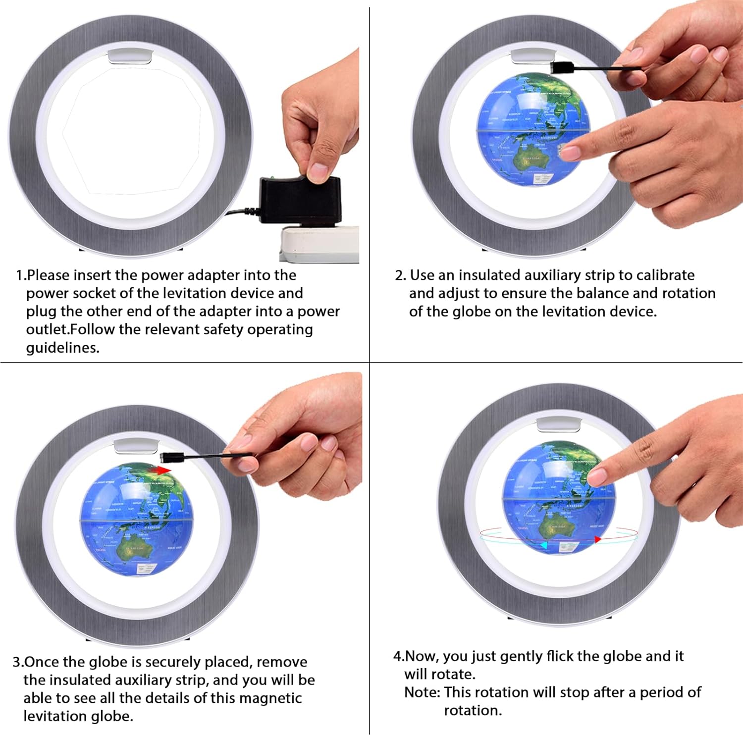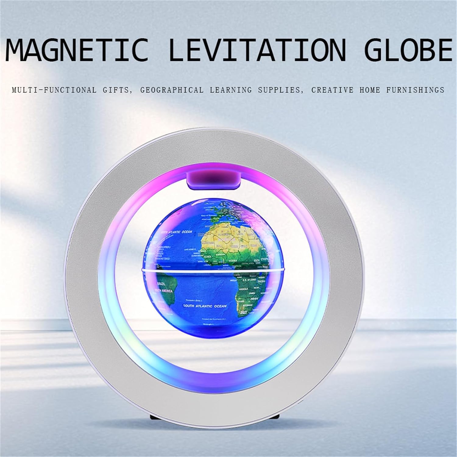 Testo personalizzato: il globo a levitazione magnetica offre personalizzazione, consentendo agli utenti di aggiungere il proprio contenuto di testo come benedizioni, nomi, compleanni e altro ancora. Questa caratteristica lo rende un regalo premuroso e unico per ogni occasione. Durevole: realizzato in materiale ABS, questo prodotto presenta una struttura robusta e resistente, che garantisce longevità e durata. Il suo design robusto garantisce una durata prolungata, rendendolo affidabile per un uso a lungo termine in vari ambienti. Design del telaio O-Type: utilizzando un telaio di tipo O, questo design, sia minimalista che elegante, trasuda stabilità. Offre ampio supporto senza interferire con la levitazione lunare, enhancMultiple opzioni di colore: Il globo è disponibile in tre colori: blu, oro e argento, fornendo diverse scelte. Sia per l'arredamento della casa che come regalo, gli utenti possono selezionare il loro stile preferito in base al gusto personale, garantendo versatilità nel suo utilizzo. L'arredamento generale con un tocco di eleganza aggiuntivo. Tecnologia ed estetica tradizionale: questo globo non solo mostra l'eccezionale applicazione della tecnologia moderna, ma fonde anche la tecnologia con l'estetica decorativa tradizionale. Unisce tecnologia avanzata con arte aggraziata, presentando un'estetica distintiva del design. Design multifunzionale: oltre a fungere da elemento decorativo, le luci a LED integrate all'interno del telaio forniscono illuminazione, funzionando come una luce notturna che crea un ambiente caldo e accogliente. Questo design multifunzionale offre agli utenti più possibilità, non solo migliorando l'estetica, ma anche aggiungendo un tocco di calore alla vita.