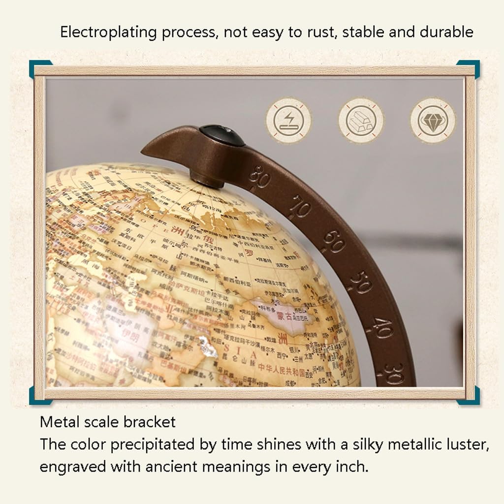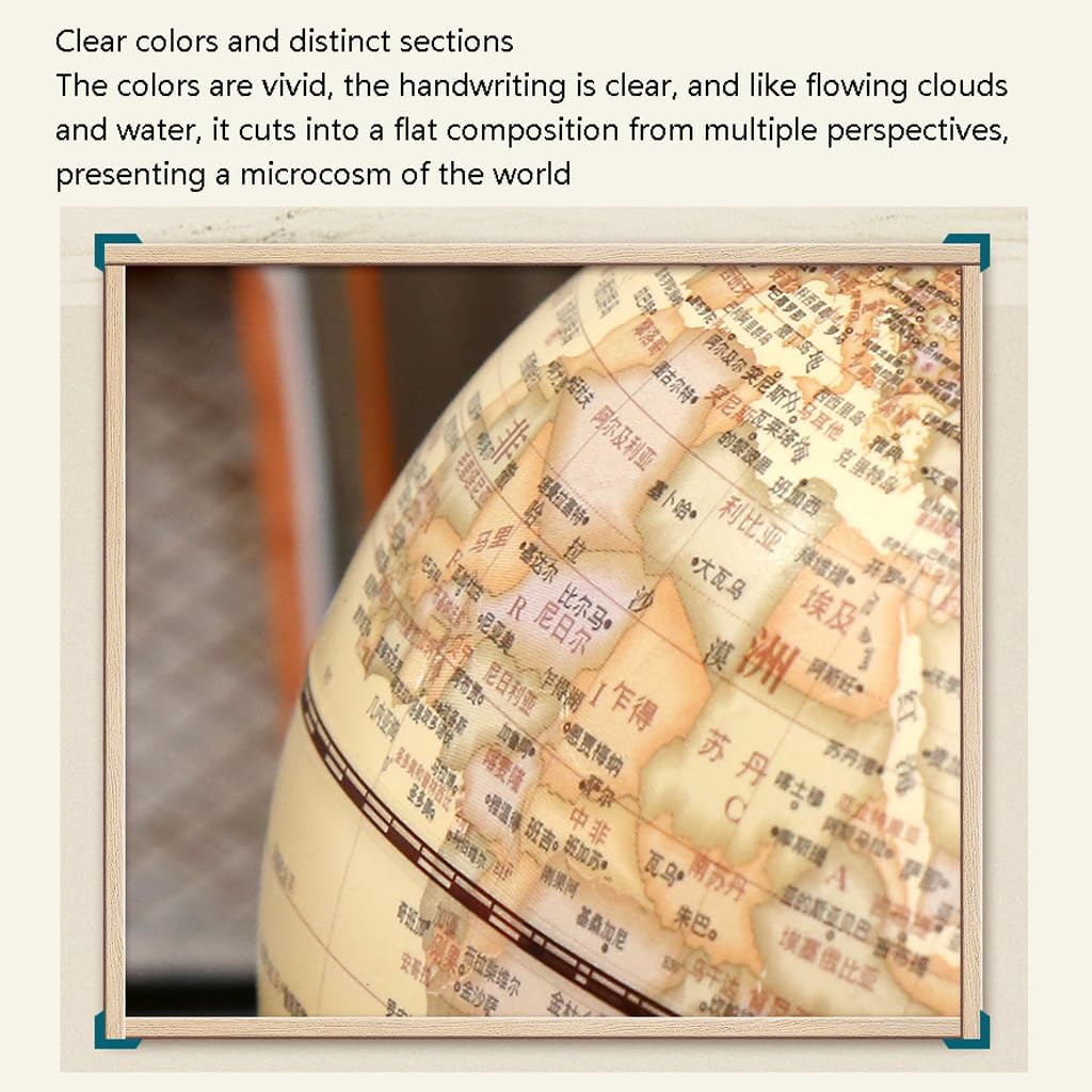 *Un globo vibrante e visivamente accattivante catturerà l'attenzione dei tuoi figli e studenti, rendendo l'apprendimento più piacevole e aggiungendo elementi divertenti e coinvolgenti all'ambiente di apprendimento. *La sfera è realizzata con materiali di alta qualità, con dettagli della mappa altamente realistici. La base in legno combina i colori del rame antico e del legno invecchiato per creare una delicata texture opaca, come se fosse stata accuratamente lucidata dal tempo. * Staffa in scala metallica, processo di galvanica, non facile da arrugginire, stabile e durevole. La base in legno di sandalo e la staffa in rame antico, combinate con la struttura del legno e la struttura del metallo opaco, riproducono l'antico fascino del passato. *Sezioni chiare e distinte con colori vivaci e una calligrafia chiara, come nuvole fluenti e acqua che scorre, integrano più prospettive in una composizione piatta, presentando un microcosmo del mondo. Il colore precipitato dal tempo brilla con una lucentezza metallica setosa. *Un mappamondo è la decorazione perfetta per qualsiasi casa o ufficio. Il mappamondo è realizzato con un'estetica avanzata, alla moda e raffinata, aggiungendo un tocco di eleganza a qualsiasi stanza. Lascerà una profonda impressione sulle persone.