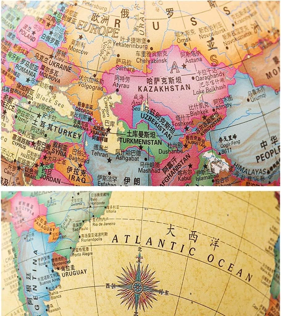 ROBUSTO E: la superficie del nostro globo è appositamente trattata per scrivere, marcare, ecc., è impermeabile e può essere conservato a lungo con una maggiore durata. Rispettoso dell'ambiente e materiale: il globo terrestre è realizzato in materiale PVC ecologico, completamente sicuro per i bambini. Con telaio interamente in acciaio, la struttura è robusta e. Classico e pratico: base in ABS, lavorazione squisita, alta qualità, stabile e anti-oscillazione. Esplora il mondo da tutte le angolazioni: cerca le ultime posizioni o caratteristiche geografiche più facilmente da qualsiasi angolazione sulla Terra. Rotazione a doppio asse di 360 gradi, basta ruotare la Terra per esplorare il mondo geografico Testo chiaro e accurato: puoi usarlo per insegnare, leggere chiaramente i nomi dei paesi e delle città. Le targhe di ogni paese sono colorate e hanno le loro caratteristiche.