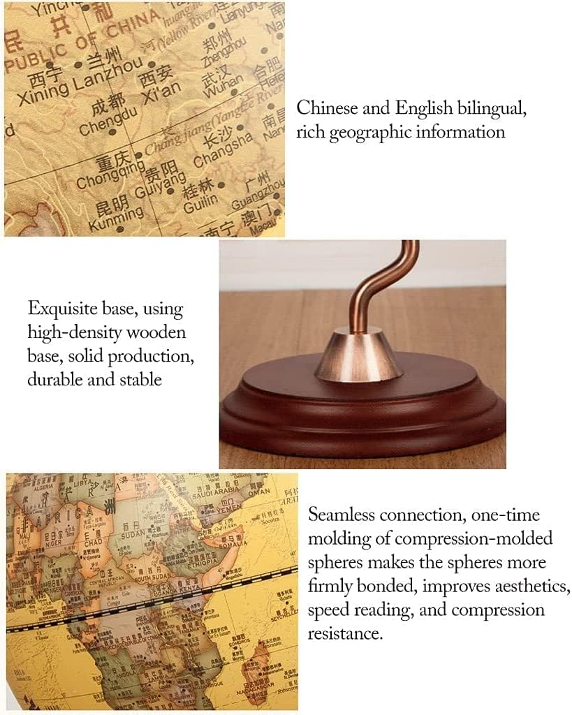 Il design sagomato è più comodo da osservare, rastrelliera per sfere in metallo, rotazione flessibile, rotazione a 360 gradi, nessun cambiamento di colore. Questo bellissimo e colorato mappamondo costituisce una meravigliosa aggiunta all'arredamento della tua casa, classe e sala giochi. Base squisita, utilizzando base in legno ad alta densità, produzione solida, durevole e stabile. Il globo può essere lavato con acqua, senza paura di sporcarsi, senza sbiadire, ed è più comodo pulirlo leggermente quando c'è polvere. Il globo educativo aiuta i tuoi bambini a esplorare i confini del mondo, i continenti oceanici e le città. Rende divertente l'apprendimento delle scienze geografiche!