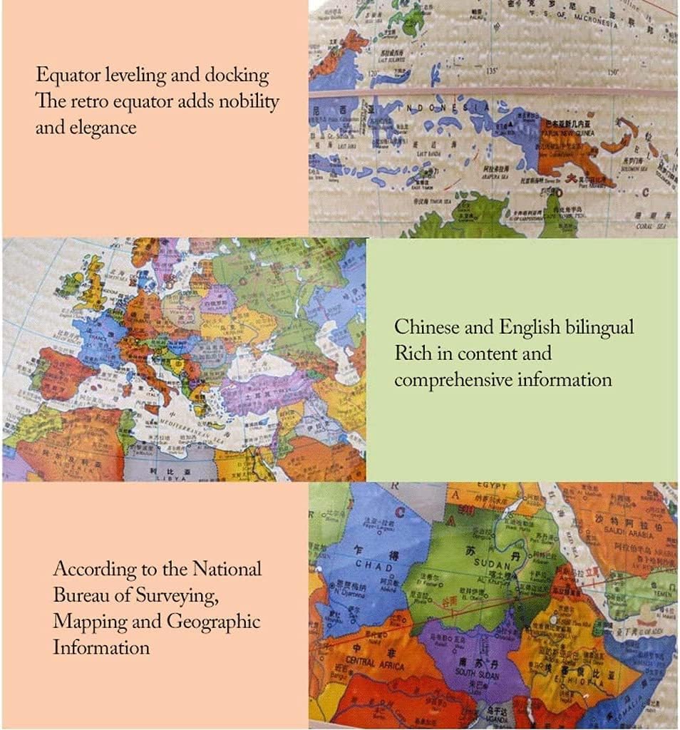 Sicurezza e protezione ambientale: la sfera sana realizzata in materiale aeronautico ABS protegge la tua salute. Base in metallo di alta qualità, bella e durevole. Staffa in lega: la staffa è realizzata in lega di zinco, che è durevole, flessibile e non blocca o taglia le mani. Diametro: 25 cm / 9,8 pollici Qualità squisita: la lavorazione squisita conferisce al prodotto un aspetto di alta qualità e rispecchia il gusto del proprietario. Stampa ad alta definizione: la superficie della sfera adotta la tecnologia di stampa a nove colori ad alta definizione, con colori intensi. DECORAZIONE PERFETTA E PRATICA: Questo pratico globo può essere utilizzato come una bella decorazione quando esposto su un tavolo, una cassettiera, un tavolo o uno scaffale. Puoi ruotare il globo sul suo asse per trovare una posizione geografica o accendere le luci per creare l'atmosfera perfetta in qualsiasi stanza.