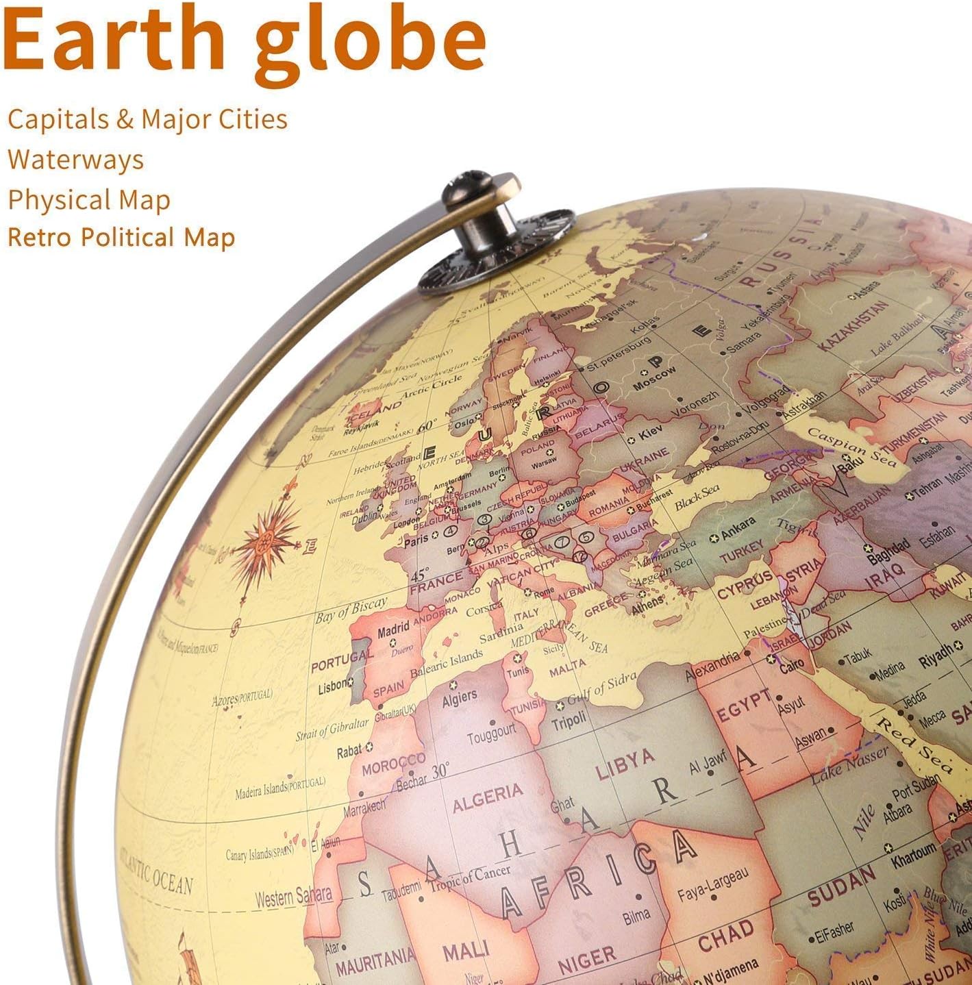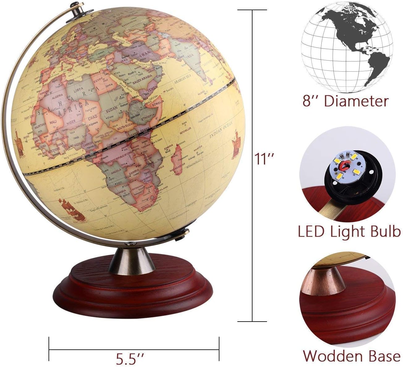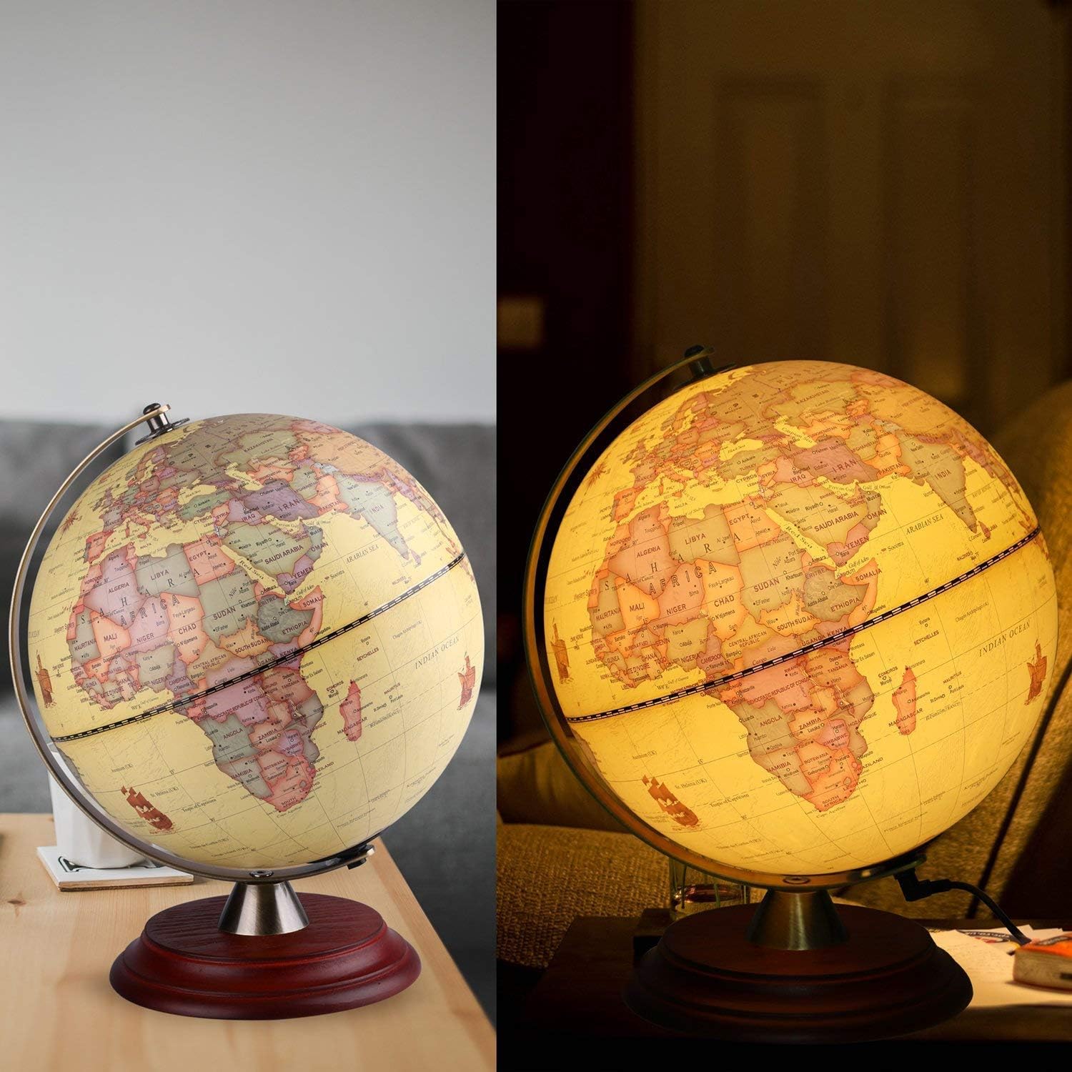 Globi, i bambini li adorano. Il regalo educativo perfetto per il bambino, ottieni il regalo che brilla e cresce con il tuo bambino! Divertente ed educativo: incoraggia i bambini curiosi a esplorare il mondo della scienza Progettato per sembrare antico con nomi facili da leggere che includono oceani, mari, stati e capitali degli Stati Uniti, principali città, paesi e capitali, isole e continenti. Mappamondo dall'aspetto antico con base in legno e rastrelliera in metallo, perfetto per la decorazione della casa e dell'ufficio, costituisce una fantastica aggiunta educativa ed estetica alla camera da letto di qualsiasi bambino, alla sala giochi per famiglie o al dormitorio di giovani adulti Il mappamondo illuminato è dotato di luci LED controllate da interruttore che lo trasformano in un bellissimo globo illuminato per l'apprendimento notturno
