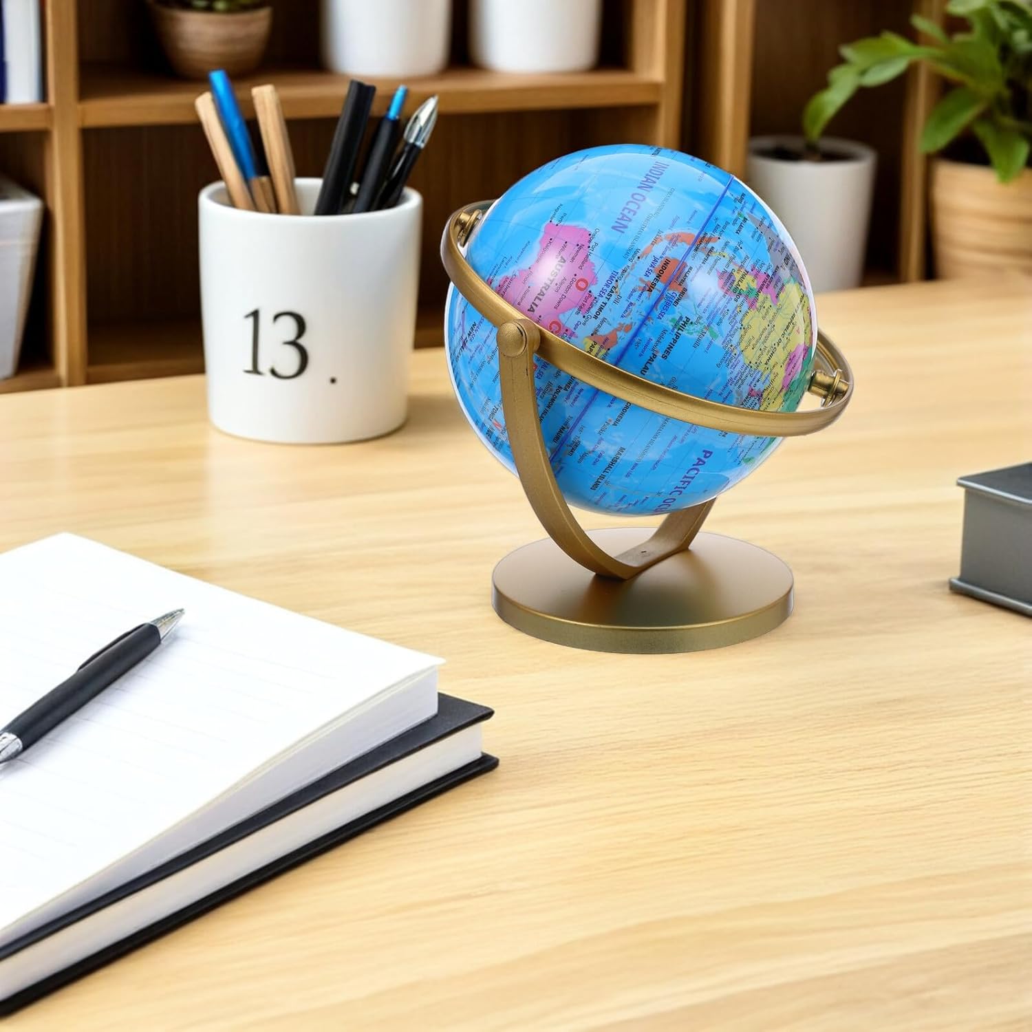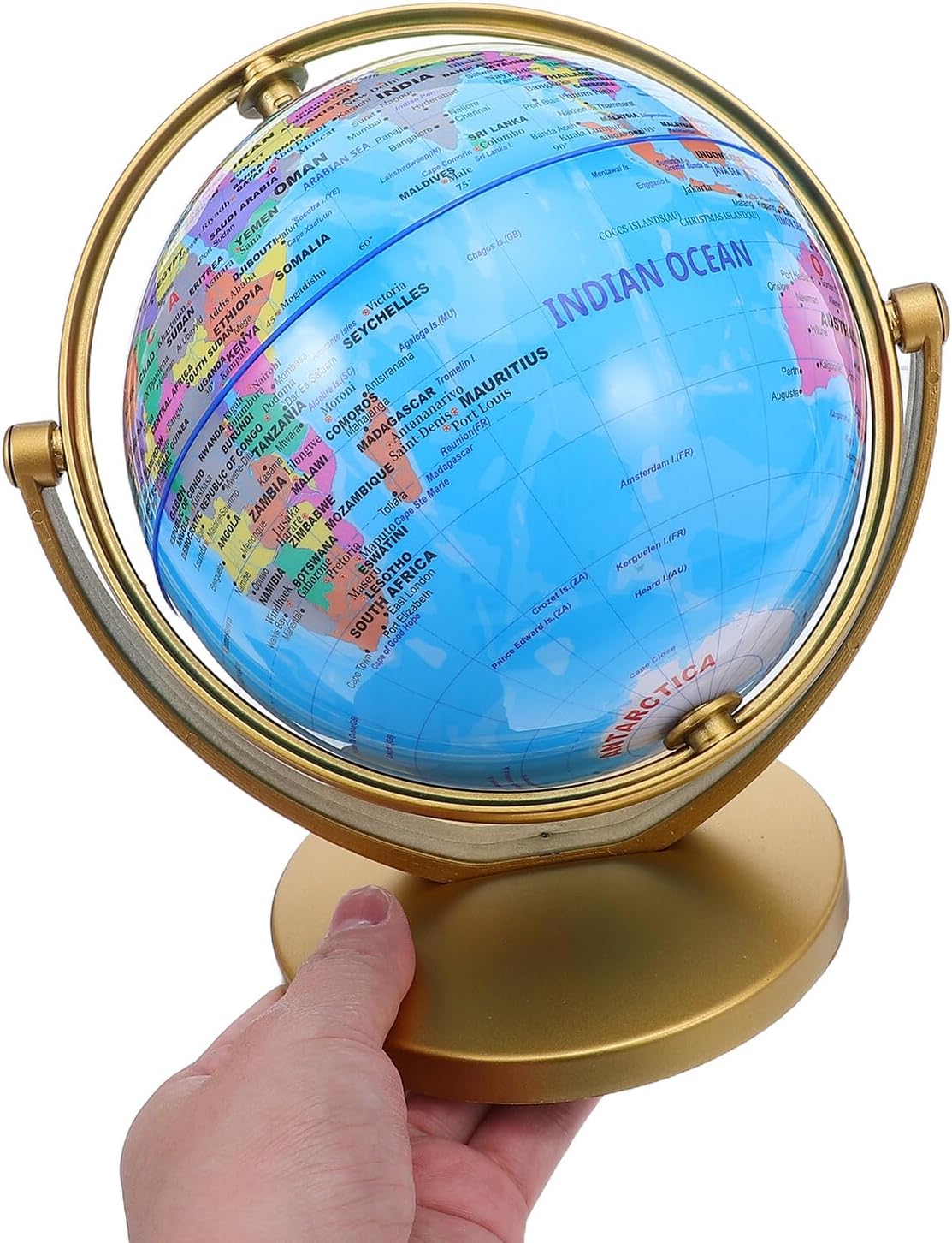 Bella idea: un regalo pratico ed elegante che trasmette raffinatezza e premura, ideale per compleanni, feste o occasioni speciali, tavolo a forma di globo, globo per l'aula prescolare Strumento educativo: presenta etichette in inglese chiare, rendendo il globo da tavolo un modo coinvolgente per imparare la geografia, mappa del mondo, globo da tavolo Decorazione pratica a forma di globo: un regalo eccezionale che riflette eleganza e premura, adatto a qualsiasi celebrazione o traguardo, piccolo globo per scrivania dorato, globo da scrivania vintage Design adattabile: il globo da tavolo è perfetto per vari ambienti, tra cui uffici, studi e soggiorni, adattandosi a qualsiasi stile, globo terrestre per aule, decorazione con scultura a globo Artigianato artistico: un globo meticolosamente progettato che funge sia da pezzo funzionale che decorativo per il tuo spazio, , decorazione del globo