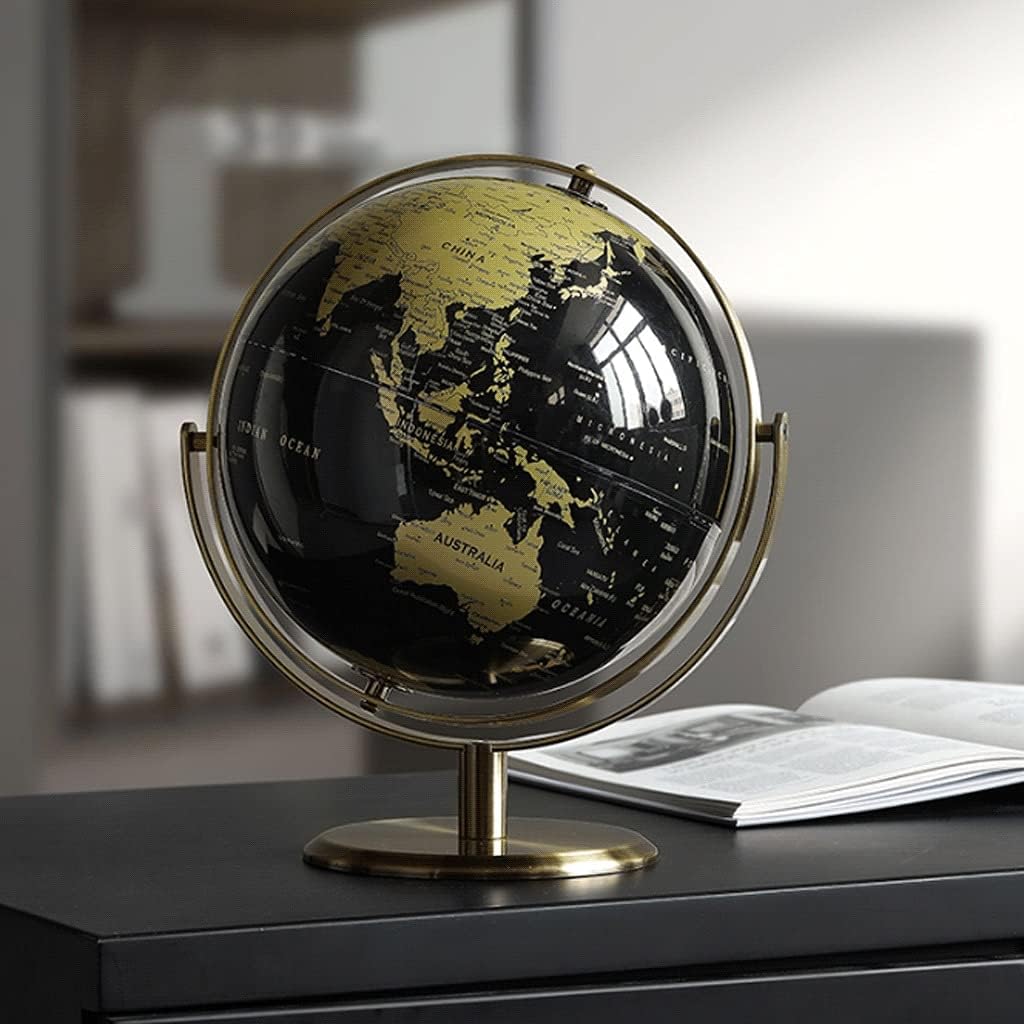 Usa questo globo terrestre per ampliare la tua prospettiva e migliorare la tua conoscenza della geografia della Terra! Offre un modo divertente e conveniente per imparare l'educazione geografica a casa, in classe o in ufficio. Usalo come un sorprendente pezzo da esposizione su una libreria o una scrivania da ufficio. Con questo elegante supporto Globe nero e oro potrai viaggiare senza uscire di casa. Specifiche: Materiale: ABS, lega; Dimensioni del globo: 6 pollici; Colore del globo: oro e nero. Il globo può mostrare chiaramente la geografia del mondo. Un globo politico da 9,4 pollici (piccolo), 27 cm/10,6 pollici (grande) con un oceano nero è perfetto per case o aule Con un bell'aspetto, può essere utilizzato come decorazione per la casa e l'ufficio. E aiuta a incoraggiare le persone ad apprendere la parola geografia