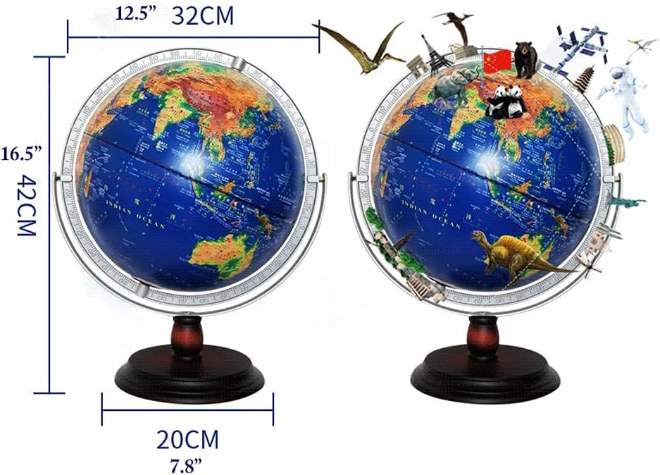 Usa questo mappamondo per ampliare la tua prospettiva e aumentare la tua conoscenza della geografia terrestre! Offre un modo divertente e conveniente per imparare la geografia a casa, in classe o in ufficio. Usalo come un pezzo da esposizione accattivante su una libreria o una scrivania. Confronto cinese e inglese: i nomi dei luoghi sferici vengono confrontati in cinese e inglese, rendendo l'apprendimento più semplice e completo e aprendo la porta alla conoscenza e all'immaginazione per i bambini. Superficie della sfera in rilievo tridimensionale: l'area montuosa è sollevata di circa 2 mm, la catena montuosa può essere toccata e il vero tocco mostra le altezze di tutte le parti del mondo. Staffa rotante universale a 720°: rotazione verticale di 360°, rotazione orizzontale di 360°, flessibile e liscia senza inceppamenti, consente di osservare chiaramente da qualsiasi angolazione senza punti ciechi. Telaio a sfera in scala: viene adottato il telaio a sfera in scala di larghezza e lunghezza. La staffa in lega di zinco ha struttura, non cambia colore ed è più resistente e durevole.