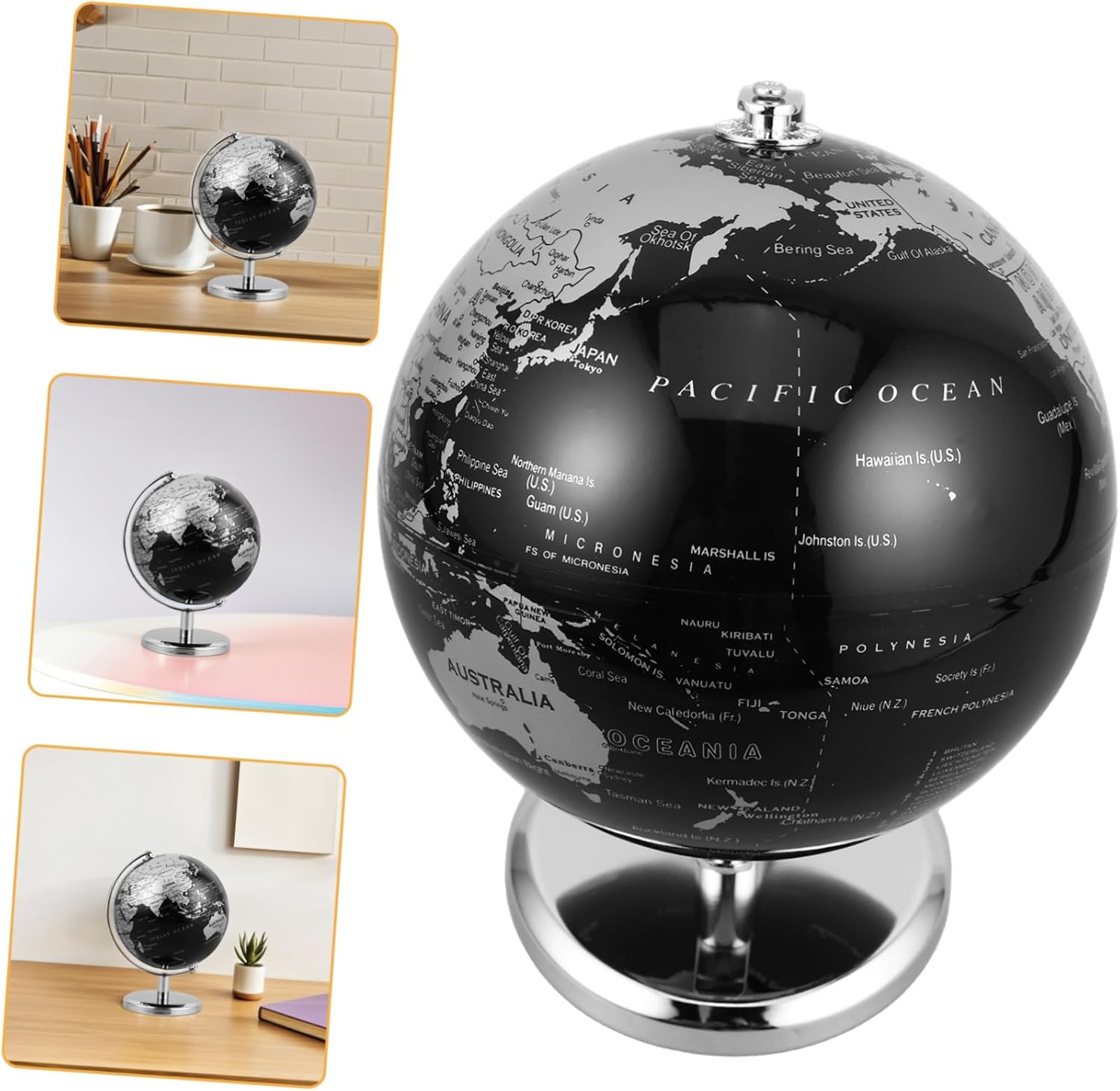 Educativo e decorativo: la funzione del globo girevole consente un comodo apprendimento ed esplorazione della geografia, rendendolo educativo che decorativo, mini globo, ornamento da scrivania Multifunzionale: adatto per l'uso domestico che per quello in ufficio, questo globo è una decorazione versatile che si adatta perfettamente a vari design d'interni, globo terrestre da scrivania, decorazione da scrivania per la casa Apprendimento interattivo: la funzione del globo girevole consente un facile accesso alle informazioni geografiche, rendendolo uno strumento coinvolgente ed educativo per tutte le età, globo da scrivania vintage, globo da scrivania antico Pezzo d'arredo unico: il design intricato e la lavorazione artigianale di questo globo lo rendono un pezzo eccezionale che mette in mostra il tuo gusto e stile raffinati, ornamento a forma di globo, ornamento a forma di globo terrestre Decorazione squisita: questo ornamento a forma di globo è in linea con il tuo gusto raffinato e la tua individualità, fungendo da pezzo decorativo elegante e unico, globo decorativo a forma di globo, globo terrestre da ufficio