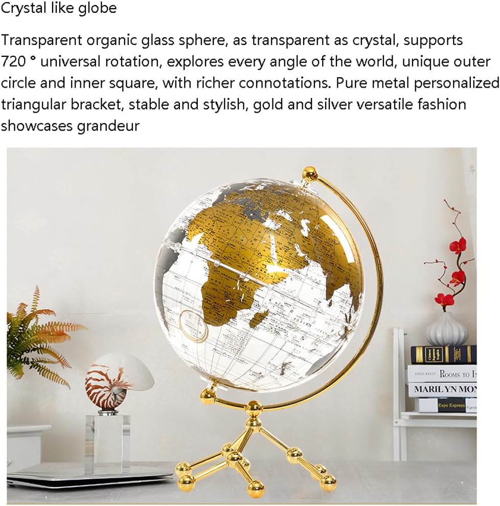 *Un globo vibrante e visivamente accattivante catturerà l'attenzione dei tuoi figli e studenti, rendendo l'apprendimento più piacevole e aggiungendo elementi divertenti e coinvolgenti all'ambiente di apprendimento. *La sfera è realizzata in materiale acrilico, che ha una buona trasparenza e stabilità chimica. La sfera cristallina è resistente all'usura e impermeabile. La tecnologia di stampa di alta qualità garantisce una scrittura chiara e non si graffia facilmente. *La base in metallo è di fascia alta e suggestiva, con una base a staffa triangolare robusta nella struttura e finemente realizzata, che aggiunge un tocco di stile all'ufficio. I colori oro e argento sono versatili e alla moda e mostrano grandezza. *Il globo ha eccellenti prestazioni educative e decorative. Si può facilmente osservare una sfera di grandi dimensioni. Molto adatto per l'insegnamento in classe, la decorazione dell'ufficio e l'illuminazione della camera da letto. *La mappa ad alta definizione è ricca di contenuti, con aggiornamenti completi e informazioni più complete. L'apprendimento è accurato e il globo simile a un cristallo con una staffa è molto adatto come regalo per l'apprendimento della geografia o dell'illuminazione per le persone