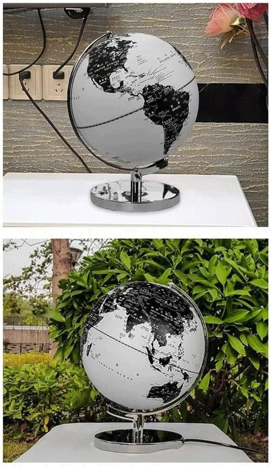 I globi sono eccellenti strumenti didattici e il modo perfetto per incoraggiare l'apprendimento e l'esplorazione della geografia mondiale. I globi offrono un modo divertente per insegnare la geografia. Sono ideali come materiale di riferimento in classe. La superficie del nostro mappamondo è trattata appositamente per scrivere, marcare, ecc., è impermeabile e può essere conservata a lungo con una maggiore durata. Base in legno massello e metallo. Inchiostro di alta qualità, ecc. Progettato per garantire che questo pianeta sia il vero lusso, senza delusioni. Bellissimo globo metallizzato nero bianco e argento con arco e base in acciaio inossidabile arrugginito lucido. La stampa di alta qualità, bella e chiara, offre un'esperienza molto rilassante e piacevole durante la lettura del campo geografico.