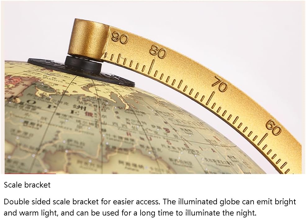 *Un globo vibrante e visivamente accattivante catturerà l'attenzione dei tuoi figli e studenti, rendendo l'apprendimento più piacevole e aggiungendo elementi divertenti e coinvolgenti all'ambiente di apprendimento. *La sfera è realizzata con materiali di alta qualità, con dettagli della mappa ad alta fedeltà e stampa multicolore ad alta definizione di alta qualità, con conseguente colori vivaci. Il carattere è chiaro, non ha paura dell'ingrandimento e i confini sono chiari. * Base in legno di alta qualità, bella e suggestiva, stabile e durevole. Il fondo in legno di alta qualità è stabile, non si muove e non si deforma dopo un uso prolungato. Interfaccia USB, cavo di alimentazione staccabile per una gestione più semplice. *Staffa a doppia scala per un accesso più semplice. Il globo illuminato può emettere una luce brillante e calda e può essere utilizzato a lungo per illuminare la notte. Chip LED ad alta luminosità, protegge la vista e ha una lunga durata. *Il design pulito del globo si fonde perfettamente con vari stili di decorazione della casa o dell'ufficio, con segni chiari e facile lettura, consentendo una migliore comprensione della geografia mondiale.