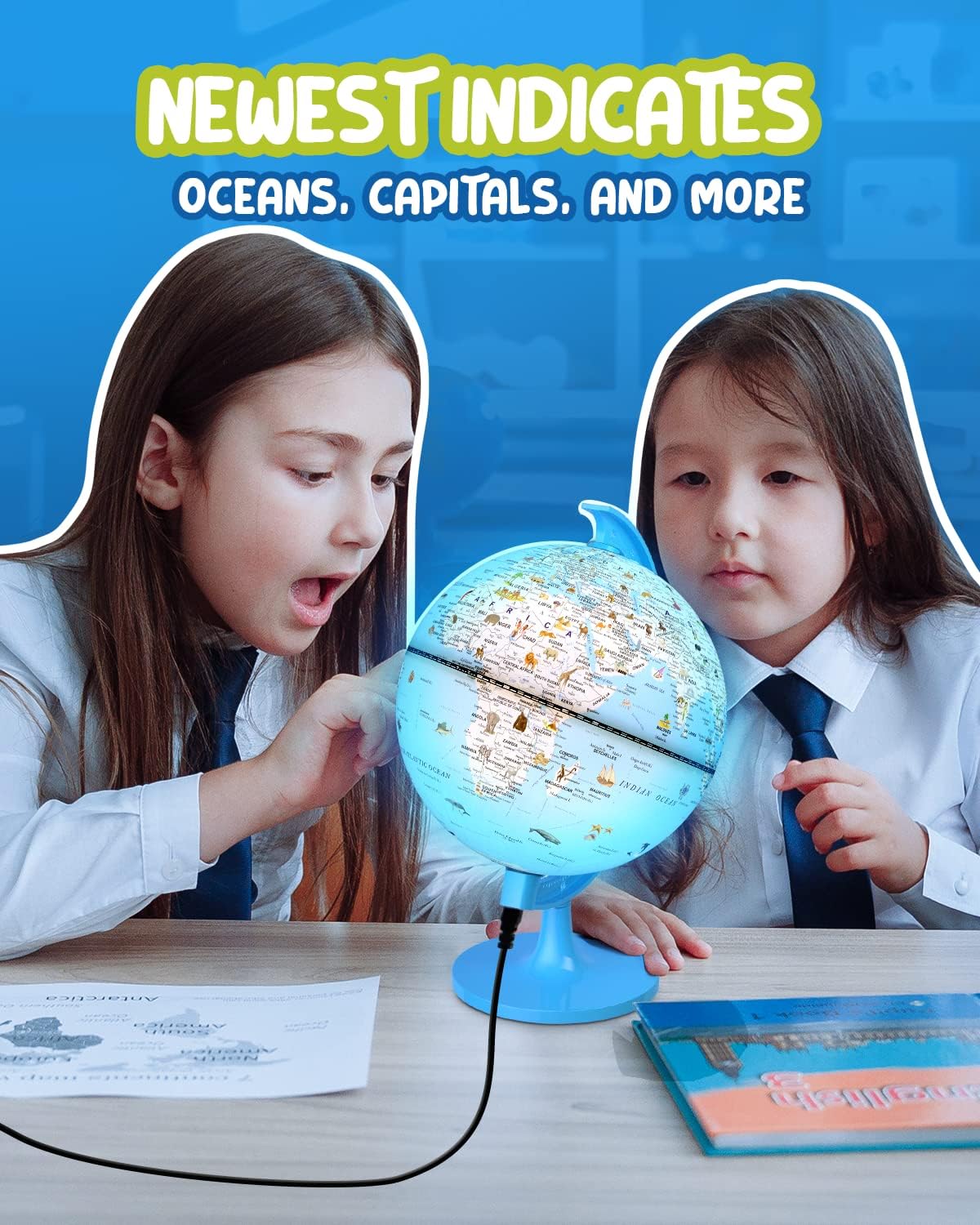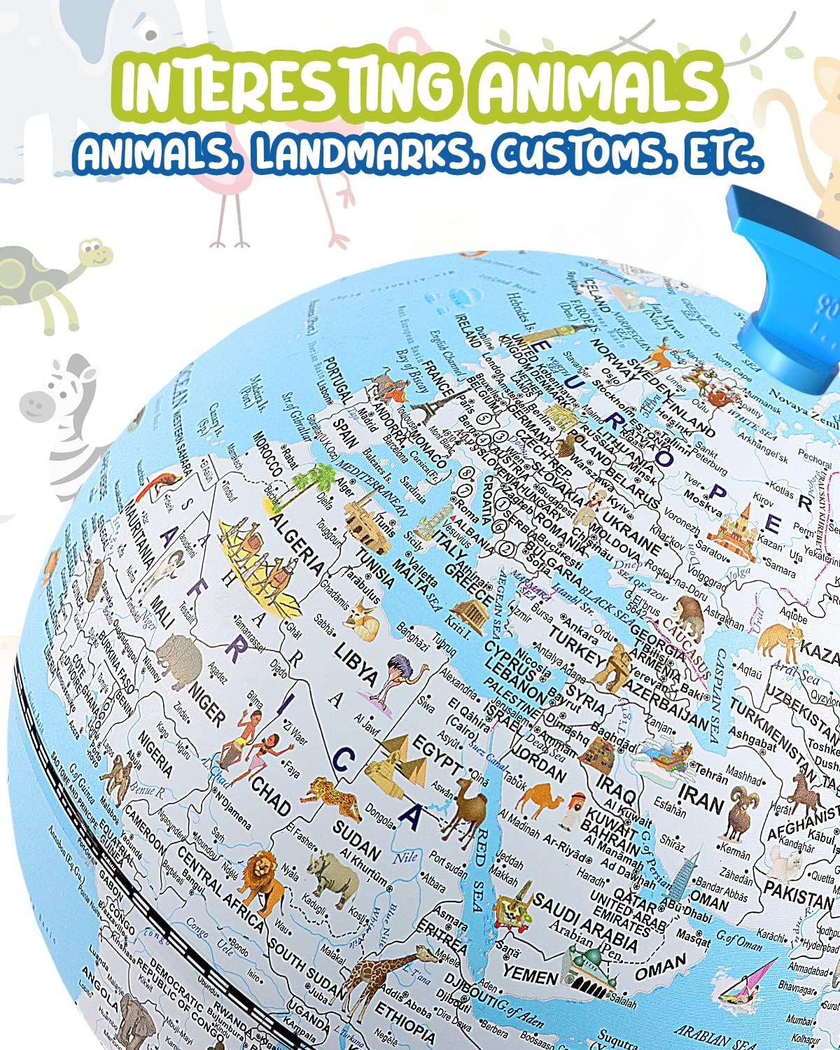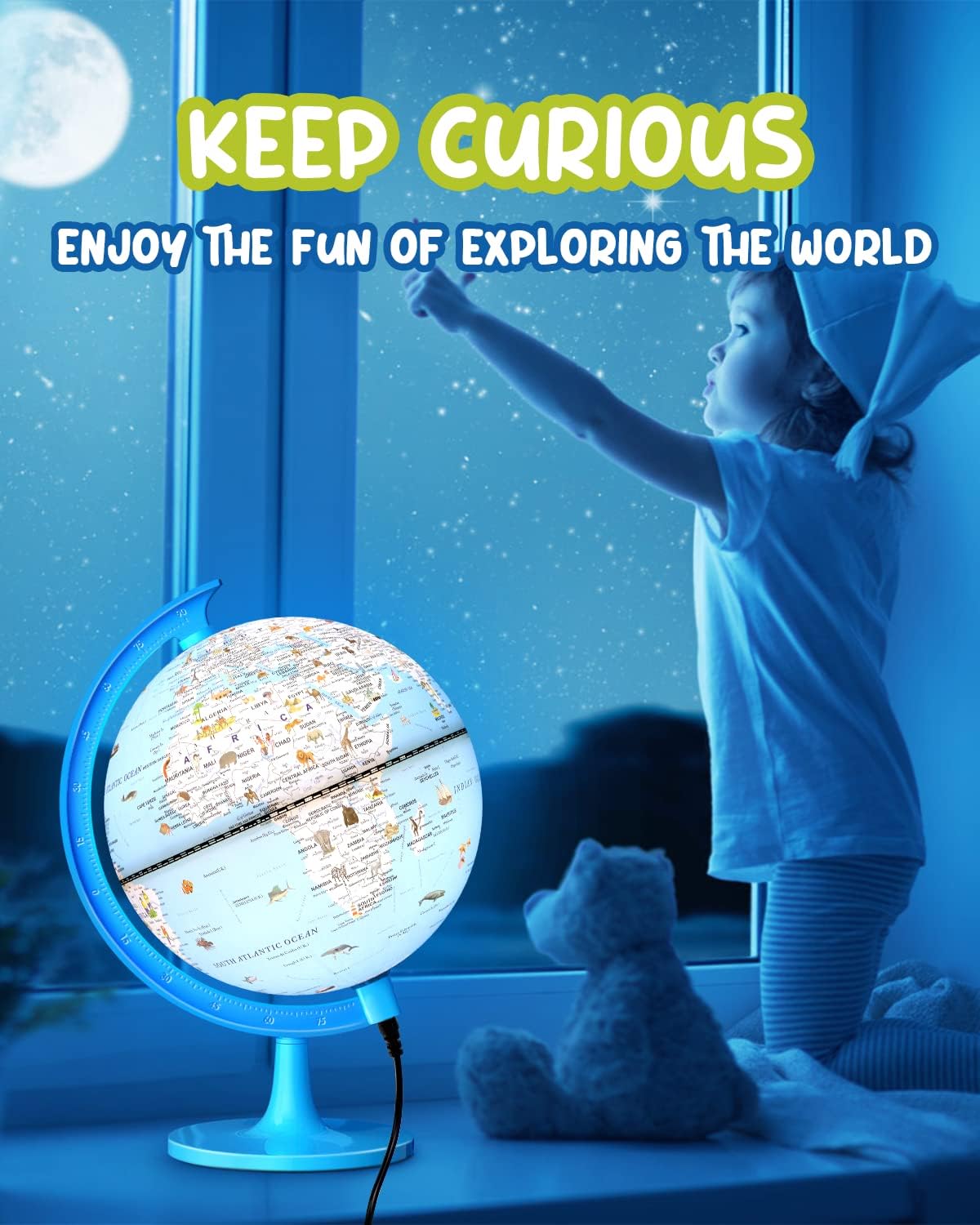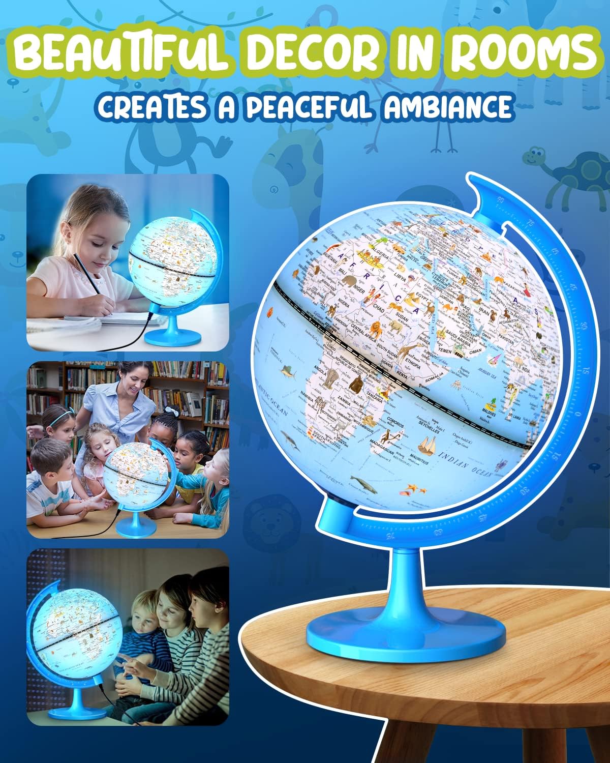 【GLOBO INTERATTIVO ILLUSTRATO】 Il fantastico globo illuminato illustrato da 8 pollici mostra 7 continenti, 5 oceani, vivaci animali selvatici, culture e nazioni in primo piano. Uno dei migliori giocattoli educativi, questo piccolo mappamondo è un regalo ideale per i bambini e la dimensione perfetta è perfetta per le dimensioni delle mani dei bambini. 【GLOBO DEL MONDO ILLUMINATO】 Il mappamondo da scrivania si illumina a LED integrato ed è dotato di lampadine a LED a luce calda di alta qualità per la protezione degli occhi. La luce LED è morbida in ambienti bui o di notte. Sarà una bellissima luce per l'apprendimento notturno o una decorazione per la stanza dei bambini. 【FACILE DA LEGGERE】 Può essere ruotato liberamente di 360°. Oltre 100 illustrazioni aumentano l'interesse, la conoscenza grafica della geografia migliora la memoria e sviluppa l'intelligenza cerebrale dei bambini. La tecnologia di stampa ad alta definizione e la rotazione a 360° rendono la mappa del mondo facile da leggere. 【GIOCATTOLI EDUCATIVI】 Il mappamondo per bambini è adatto a bambini di età inferiore a 12 anni. Può servire come superbo strumento di apprendimento o come bellissima decorazione per mobili. Soddisferà con gioia il processo di apprendimento dei tuoi figli mostrando loro un mondo vivido. 【REGALI SIGNIFICATIVI PER BAMBINI】 Attraverso illustrazioni interessanti e un bellissimo globo luminoso, il sogno di esplorare il mondo si costruisce nel cuore dei bambini. Quando crescono, possono volare nel luogo in cui si trovano le illustrazioni. Il mappamondo illustrato è l'inizio della semina di un sogno.