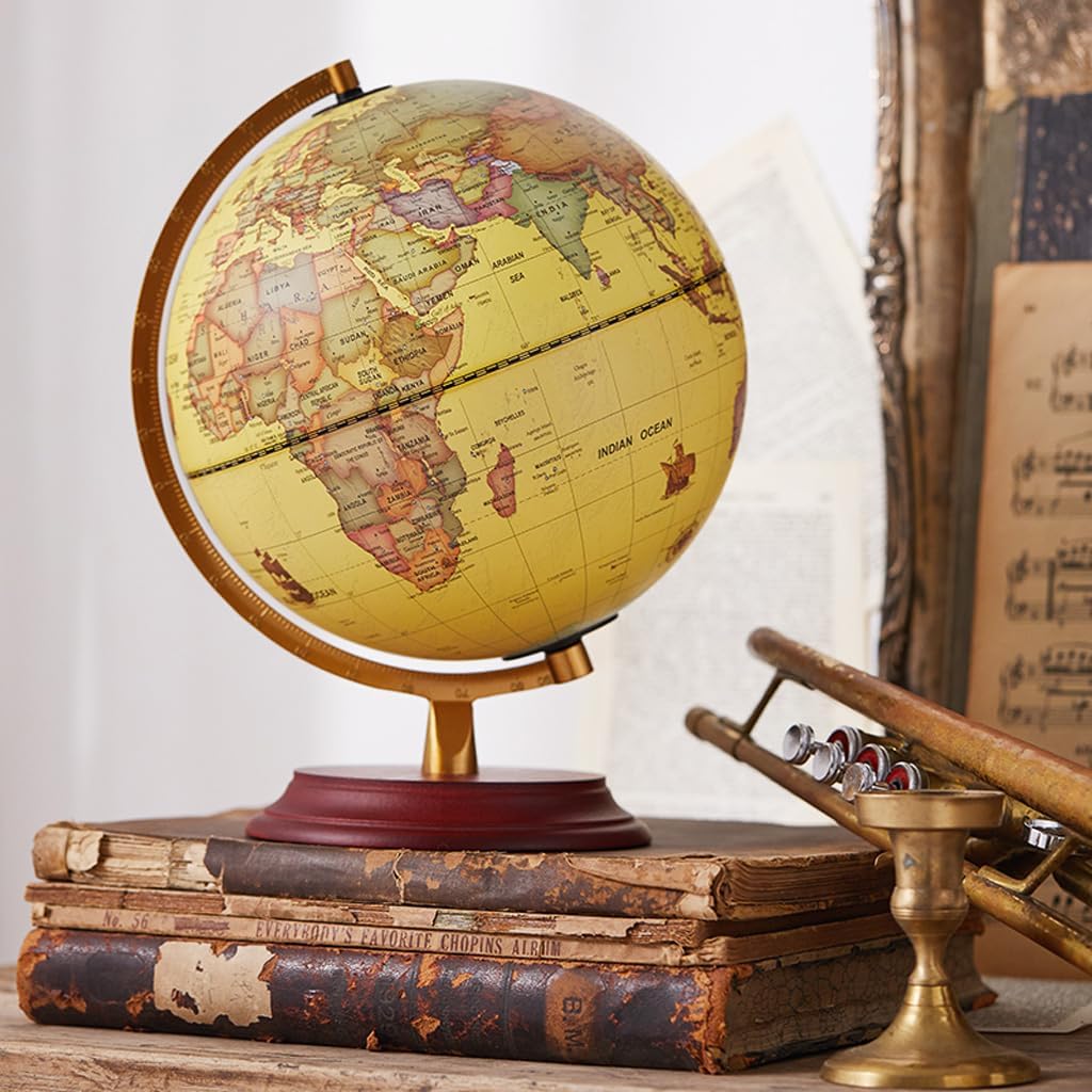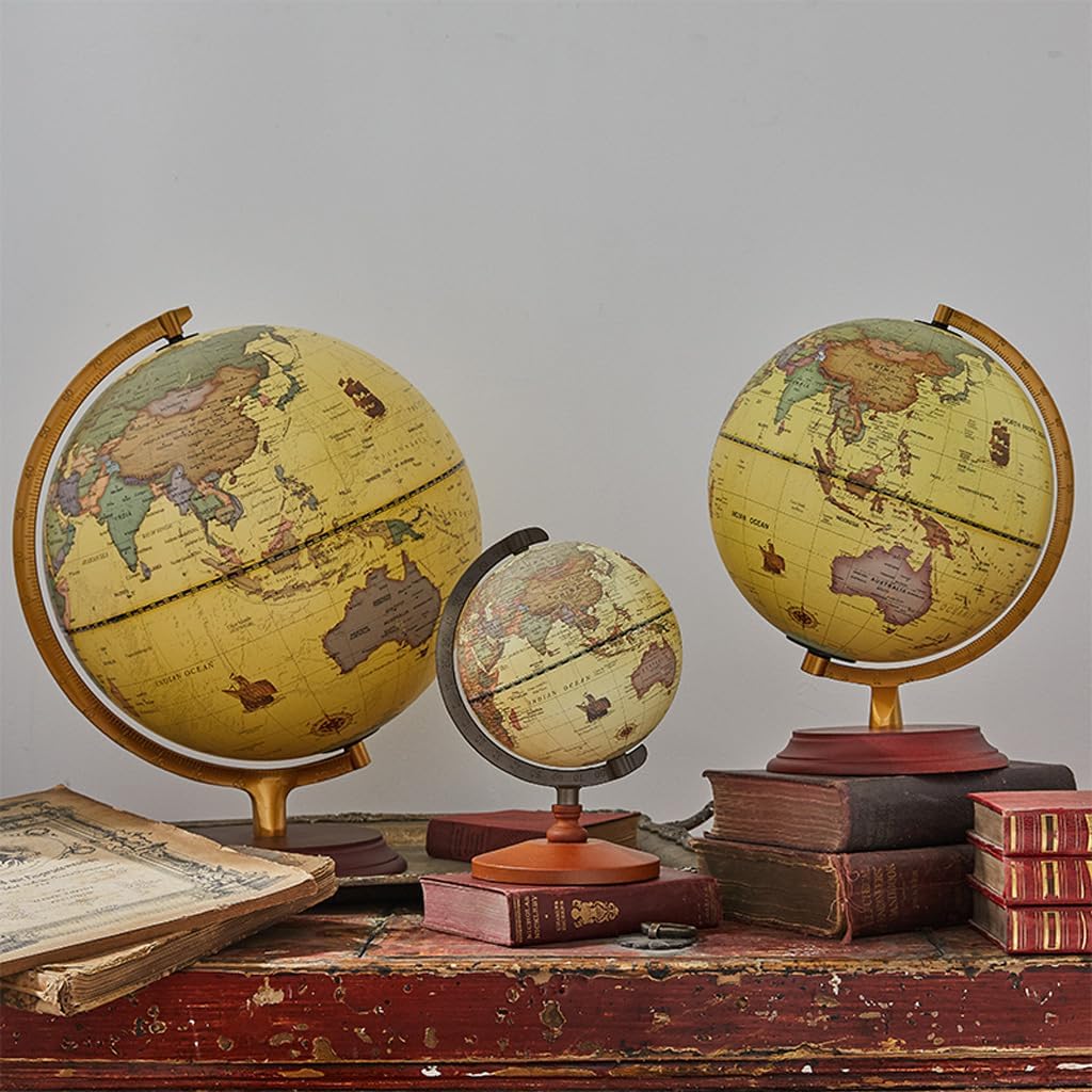 *Un globo vibrante e visivamente accattivante catturerà l'attenzione dei tuoi figli e studenti, rendendo l'apprendimento più piacevole e aggiungendo elementi divertenti e coinvolgenti all'ambiente di apprendimento. Realizzata con materiali di alta qualità, la palla è resistente agli urti e sicura, con una staffa metallica robusta, durevole, alla moda e suggestiva. Il processo di galvanica non è facile da arrugginire, stabile e durevole. *Il globo può ruotare a sinistra e a destra, rendendolo comodo per leggere e sfogliare il testo. È flessibile e non ritarda, rendendo la lettura più comoda. La staffa rotante in metallo ha una struttura metallica retrò ed elegante, che riproduce il fascino antico dei vecchi tempi. *La stampa della mappa è squisita, il testo è chiaro, la lavorazione è squisita, la calligrafia è chiara e i colori sono vividi, il che può distinguere meglio le varie regioni del mondo. *Il globo retrò, il colore delle precipitazioni del tempo, è molto adatto per la decorazione della casa e dell'ufficio, come aspetto retrò alla moda o semplicemente per abbinarsi al colore della posizione scelta.