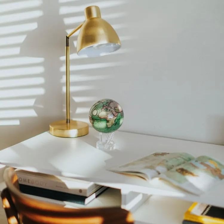 Il nostro Globo MOVA è un globo alimentato a energia solare che ruota silenziosamente utilizzando la luce interna o la luce solare indiretta, eliminando la necessità di batterie o fili. È realizzato con cura artigianale, utilizzando gusci di acrilico e fluidi non tossici, rendendolo sia elegante che ecologico. È un vero pezzo decorativo unico e innovativo per il tuo spazio. Il globo rotante include un supporto in acrilico a tre punte facile da montare. Visita il nostro sito web ufficiale per visualizzare più scelte di basi. Una scelta di regalo unica e perfetta per diverse persone, tra cui decoratori d'interni, appassionati di tecnologia, viaggiatori, amanti dell'astronomia, educatori e amanti dell'arte. Un regalo speciale che si muove silenziosamente con la continua rotazione della Terra, suscitando conversazioni e rappresentando il tuo buon gusto. Un diametro compatto di 6 pollici (15 cm). Una volta assemblata la base, si erge a circa 10 pollici (25,4 cm) in altezza e pesa approssimativamente 6 libbre (2,72 kg).