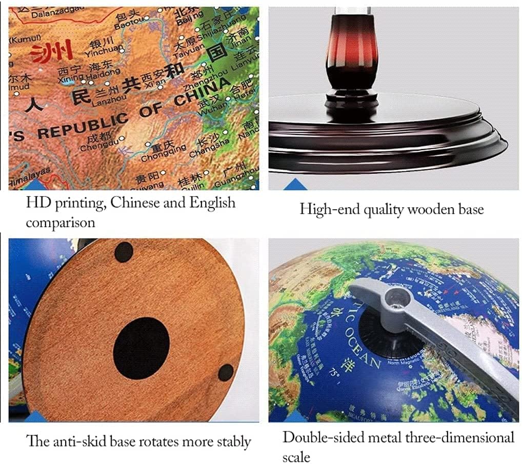 DESIGN DUREVOLE E FANTASTICO: il nostro mappamondo è sicuramente un successo tra genitori e amici; Questo mappamondo è un ottimo regalo perché è ottimo per l'arredamento della casa; Bambini e studenti curiosi di tutte le età. Rotazione di 720 gradi e rotazione di 360 gradi: visione multidirezionale, terra in miniatura; progettazione dell'orario internazionale, fuso orario facile da controllare, design molto interessante. Design tridimensionale in rilievo, il terreno è rialzato di circa 2 mm e il tocco del terreno ti fa sentire l'altezza del mondo. Mappamondo illuminato: l'interfaccia USB rimovibile può essere smontata e scollegata quando la luce non è accesa. facile da usare DIVERTENTE ED EDUCATIVO: i nostri globi presentano dettagli aggiornati che incoraggiano i curiosi a esplorare il mondo della scienza con le proprie mani e i propri occhi.
