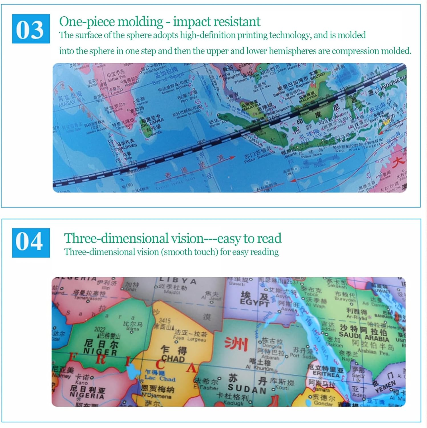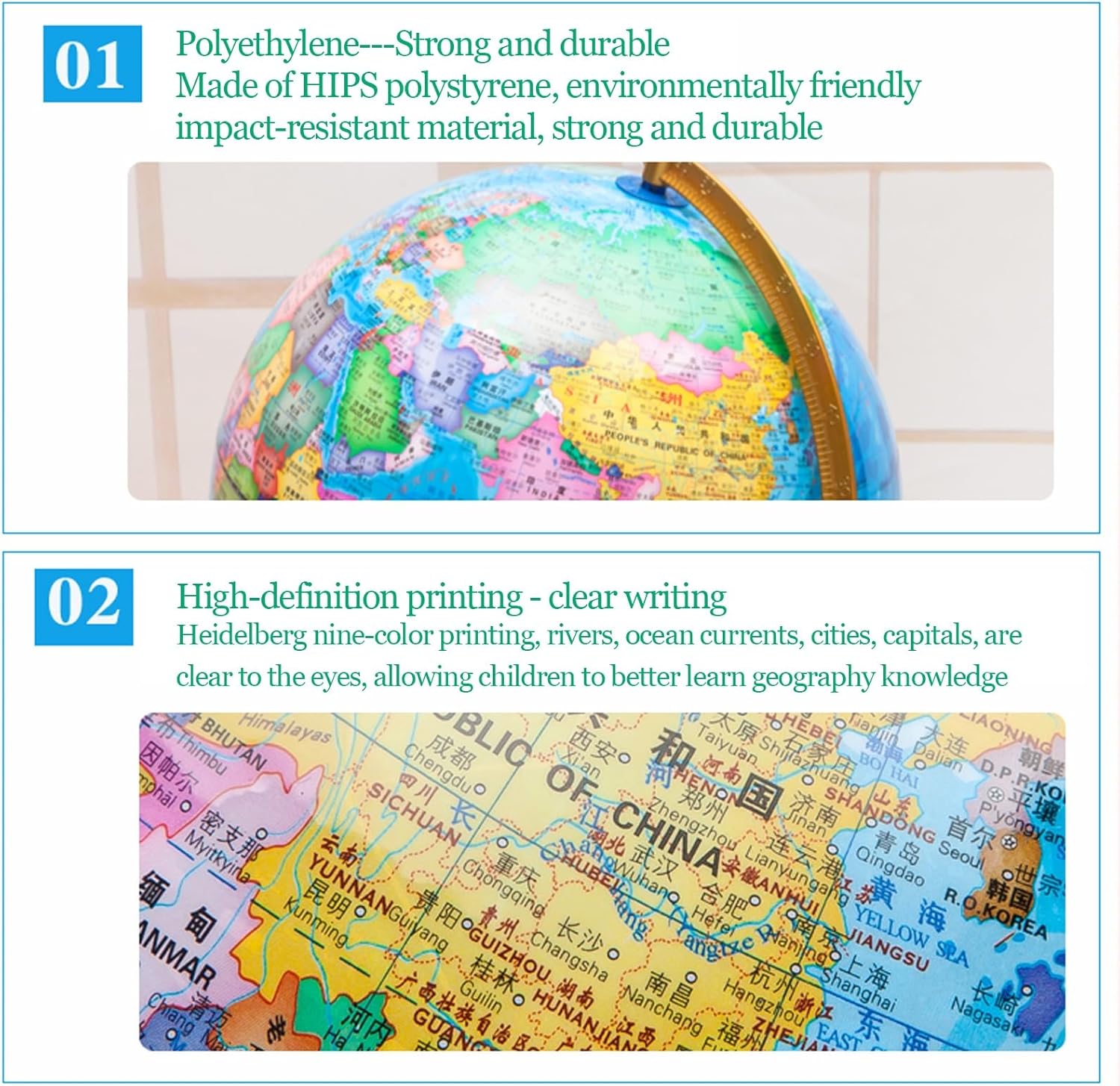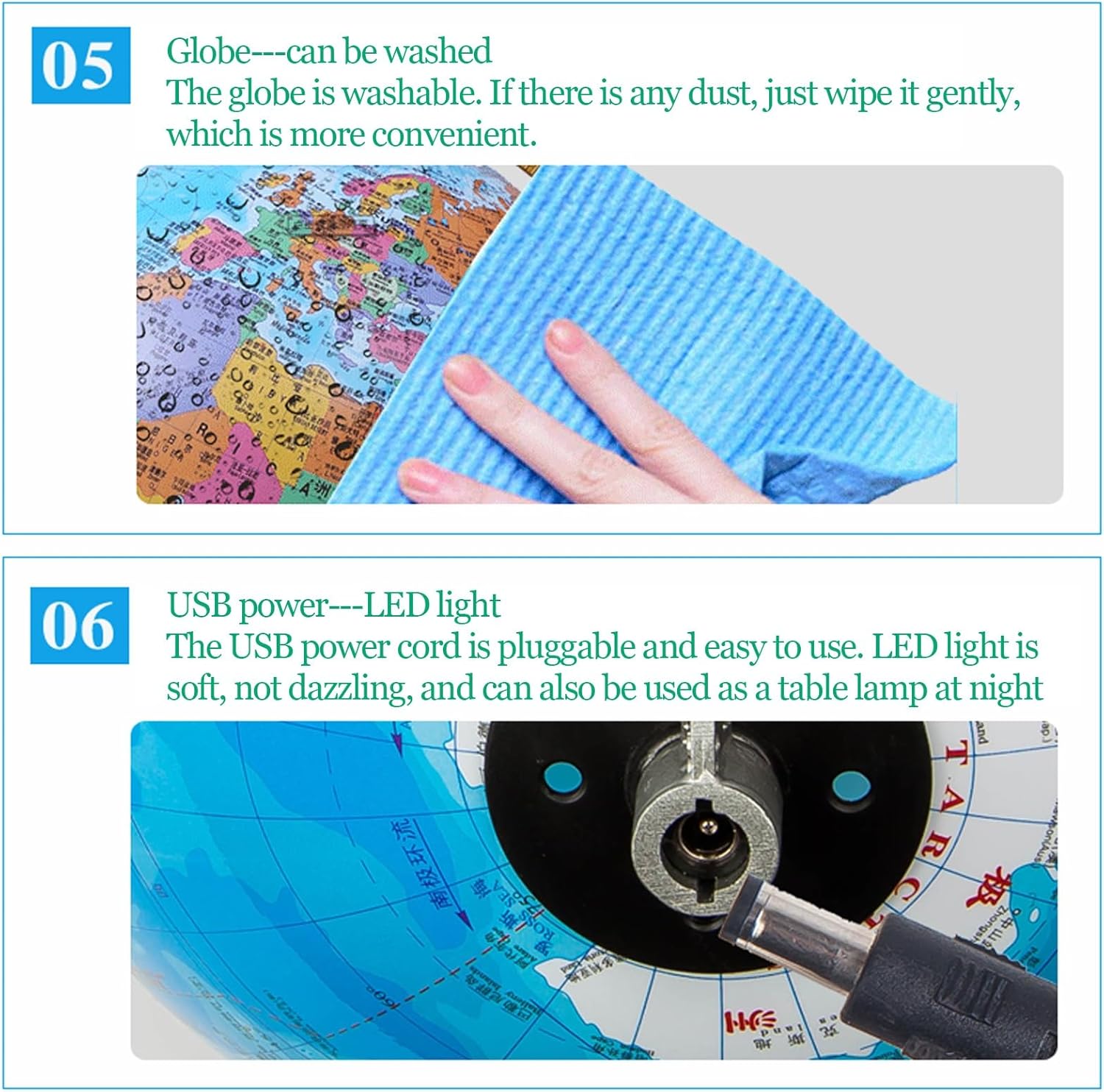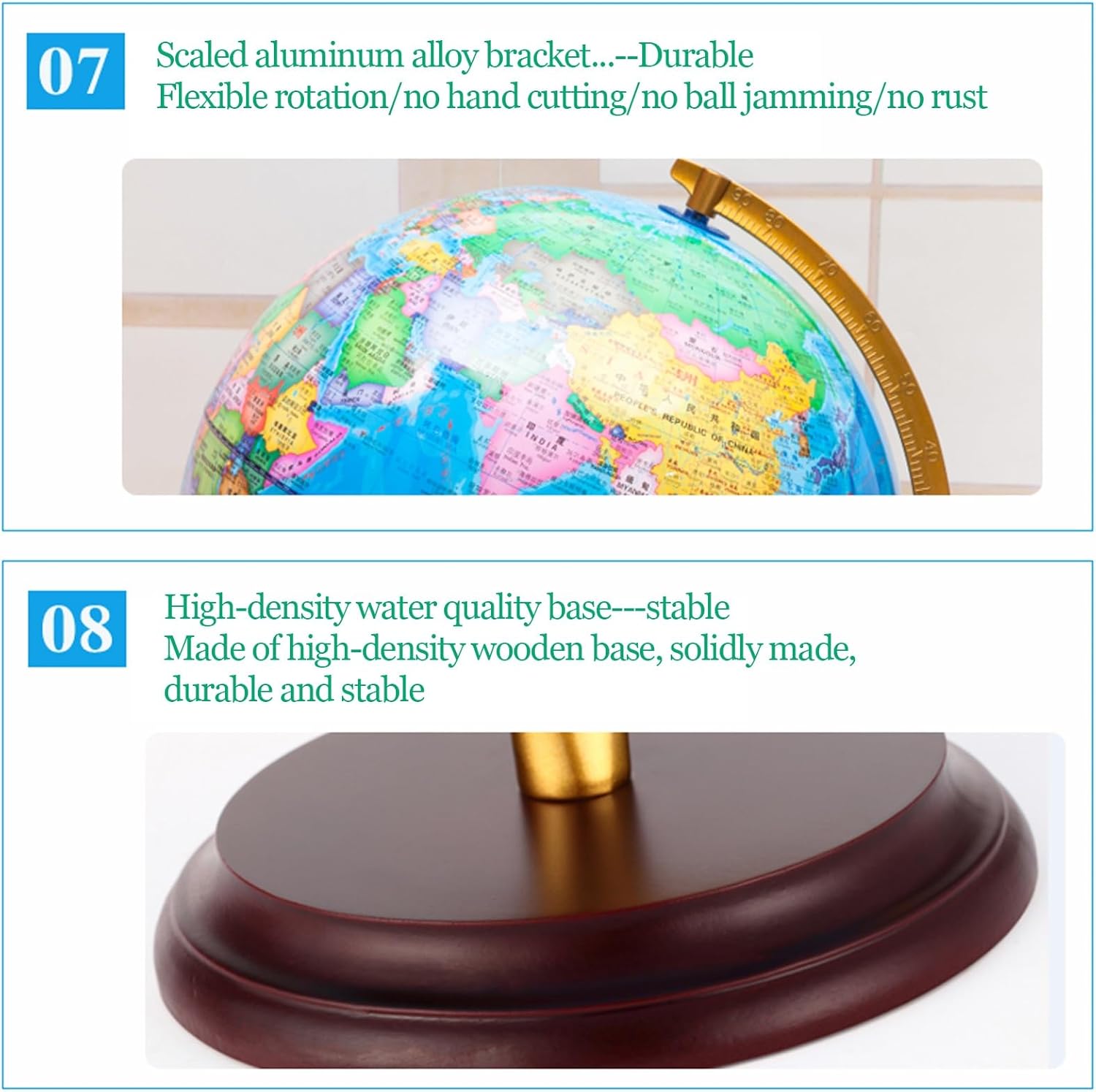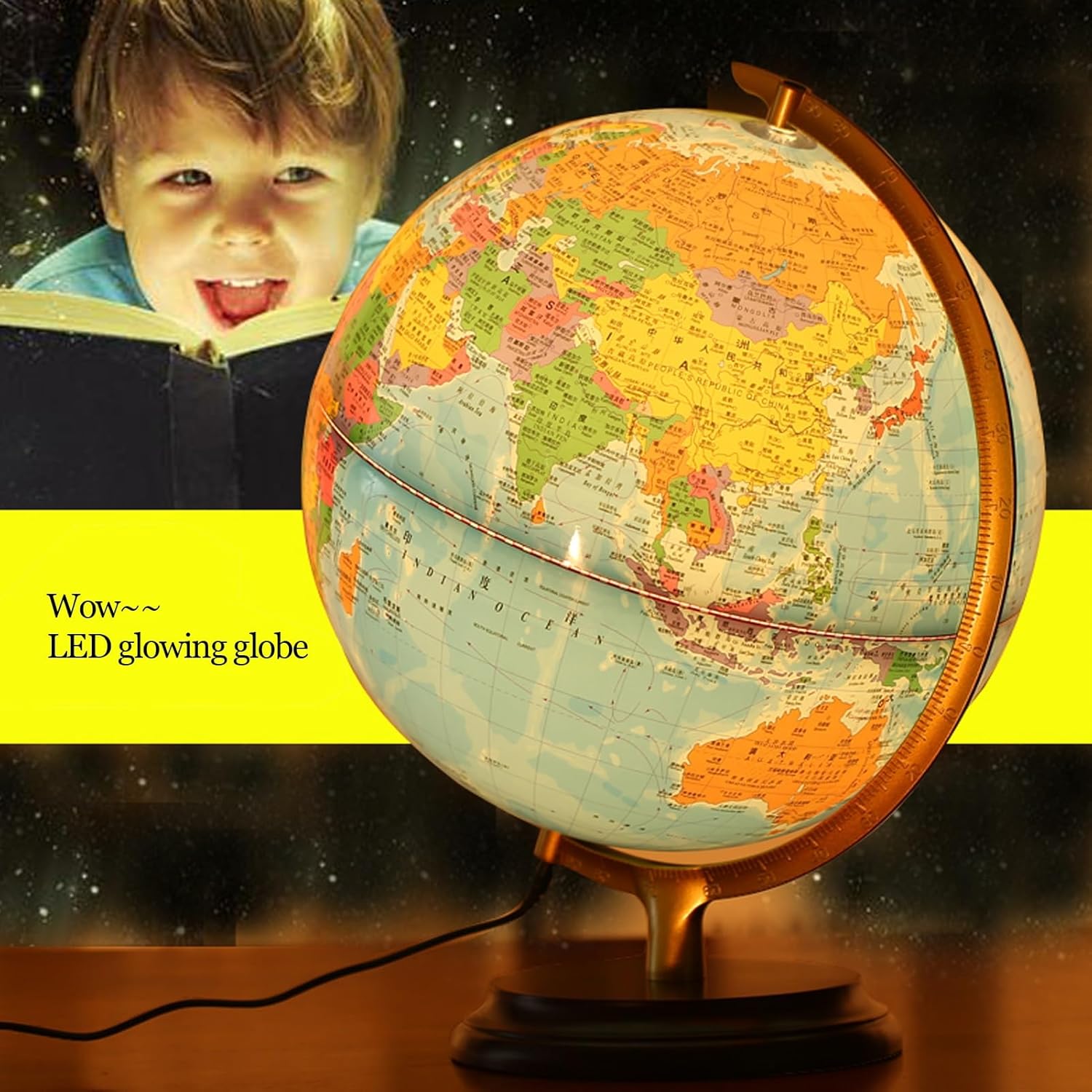 - GLOBO DI ALTA QUALITÀ - Realizzato in materiale ABS di alta qualità e caratterizzato da dettagli stampati ad alta definizione su una base in legno, questo globo è progettato per trasmettere lusso e superare le aspettative. - STRUMENTO EDUCATIVO - Questo mappamondo è dotato di illuminazione a LED che aggiunge un tocco di originalità quando è illuminato al buio, mostrando paesi, confini politici, capitali, città principali e altro ancora per un riferimento quotidiano. PEZZO D'ARREDAMENTO DI PREGIO - La meticolosa lavorazione artigianale e i materiali di qualità utilizzati per creare questo globo lo rendono una splendida aggiunta a qualsiasi casa o ufficio, nonché un regalo ideale per chi apprezza l'arredamento elegante. - ORNAMENTO DA SCRIVANIA - Un gadget all'avanguardia che piace a persone di tutte le età e rappresenta un regalo eccellente per varie occasioni come compleanni, Natale, anniversari o come gesto premuroso per amici o colleghi. - OPZIONE REGALO PERFETTA - Questo mappamondo da tavolo, che funge sia da elemento decorativo che da strumento di apprendimento, aiuta a promuovere la conoscenza, le competenze linguistiche e lo sviluppo cognitivo, diventando così un regalo di Natale essenziale sia per i genitori che per gli amici.