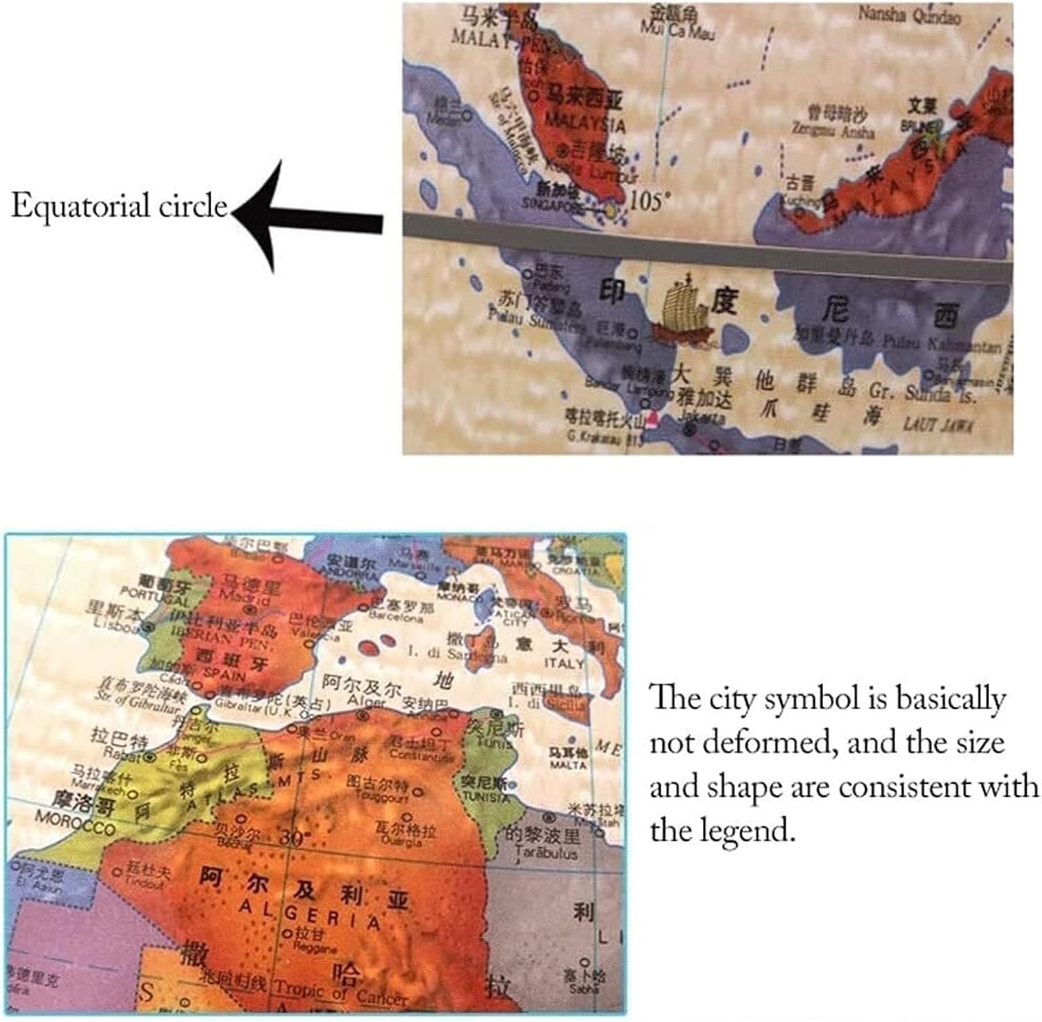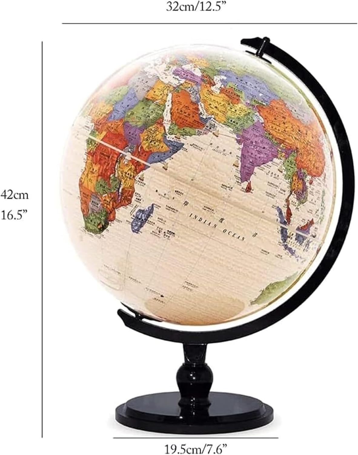 globi sono eccellenti strumenti educativi e il modo perfetto per ispirare l'apprendimento e l'esplorazione della geografia mondiale. I globi offrono un modo divertente per introdurre la geografia. Sono eccellenti strumenti di riferimento in classe. Sfera in ABS, sfera in PVC, base in metallo, staffa in lega di zinco. Con una base in metallo, la costruzione è robusta e durevole. Il globo gira senza problemi e non è facile da ribaltare. La parte inferiore nera e la base arrotondata impediscono ai piani dei tavoli di graffiarsi. La superficie della sfera adotta la tecnologia di stampa ad alta definizione, la tecnologia di stampaggio monouso e gli emisferi settentrionale e meridionale sono armoniosamente unificati. Lavorazione squisita, grafica squisita, ogni lastra è stampata in cinque colori e il quinto gruppo di colori può essere rivestito con uno strato di vernice per aumentare la lucentezza della superficie, gli strati più ricchi e gli effetti realistici.