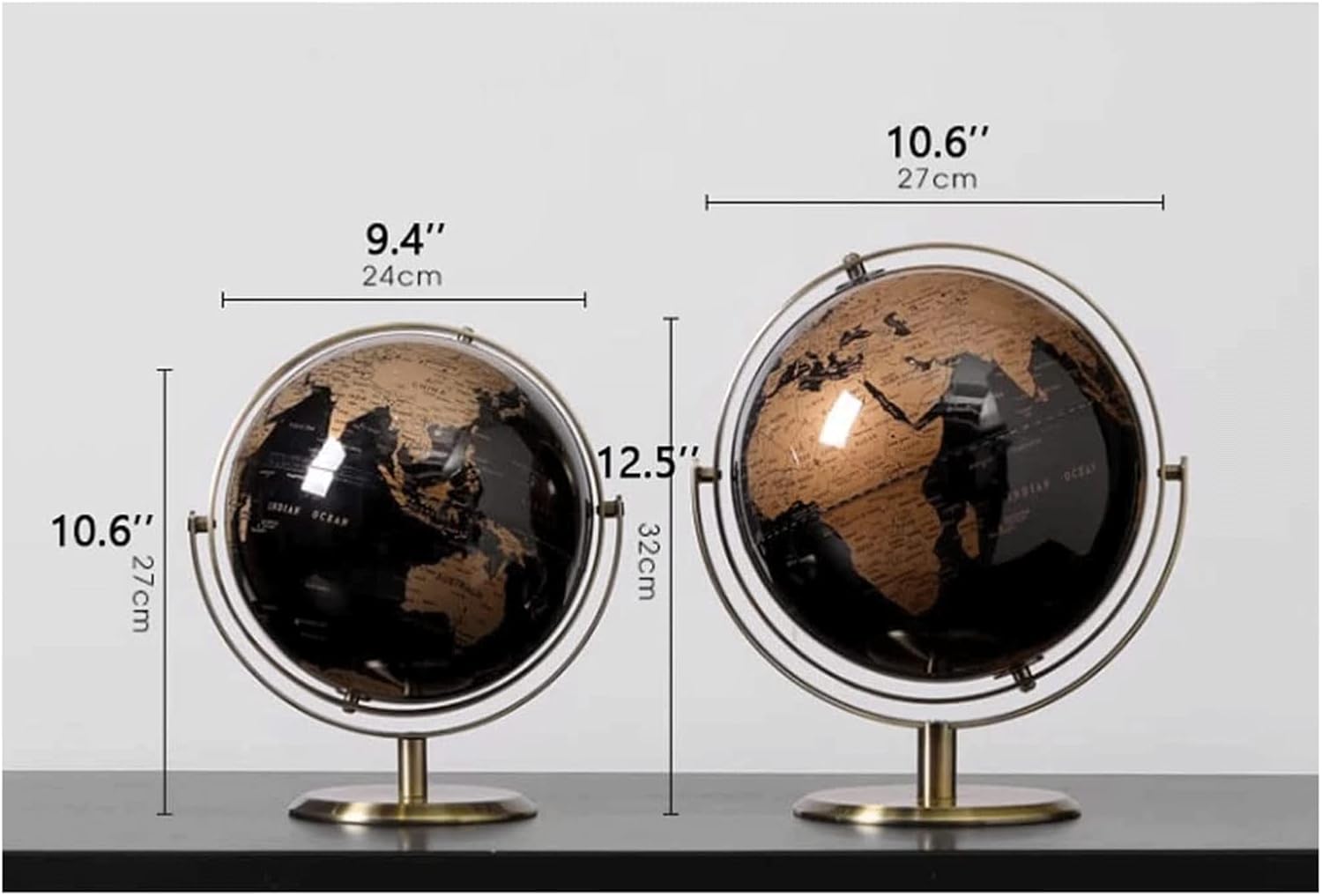 Globo terrestre Globo con supporto in metallo Globi neri Globo terrestre rotante Globo geografico Decorazione da scrivania per ufficio Scuola Interessante