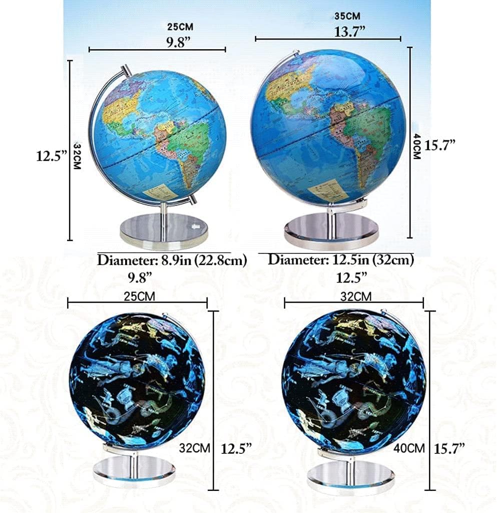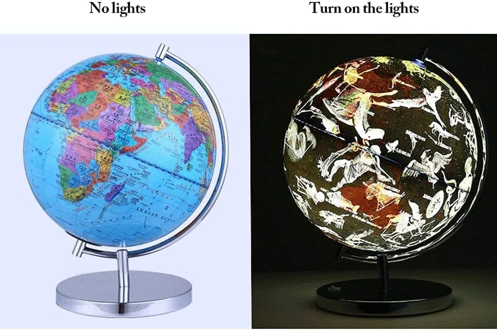 Globo standard avanzato: globo attuale, dettagliato e accurato. Stampa ad alta definizione, il testo è chiaro e di facile lettura. Considera sia l'aspetto che la funzione. Usa il nostro mappamondo per segnare dove sei stato o dove vuoi andare. DESIGN INTELLIGENTE: questo globo intelligente combina una mappa del mondo colorata, una mappa delle costellazioni, una luce notturna a LED e la tecnologia AR in un globo da 12,5 pollici. Dettagli Caratteristiche: Mappa delle costellazioni luminose Accendi questo globo elettronico illuminato a LED in una stanza buia e goditi uno spettacolo magico del nostro luminoso paese delle meraviglie celeste, comprese tutte le 88 delle nostre costellazioni. Creativo e pratico: il globo si inclina e ruota naturalmente sulla sua base, proprio come il globo completo che trovi nella tua biblioteca o ufficio e il globo luminoso intelligente per qualsiasi stanza della tua casa o ufficio. OTTIMA IDEA REGALO: questa è l'idea regalo perfetta per quasi ogni occasione. Che sia un compleanno, Natale, un evento tra amici, l'apertura di un nuovo ufficio, la tua creatività è più che benvenuta. Ad esempio come regalo per qualcuno a cui piace decorare uno studio o un bar, come pezzo da esposizione, ecc.