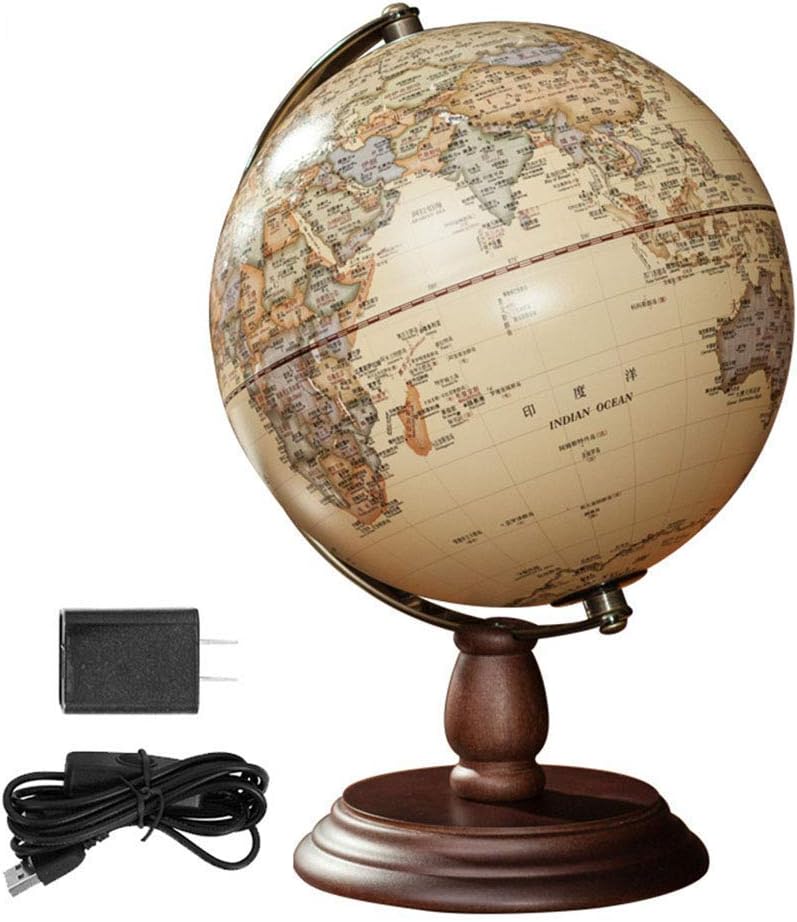 Mappamondo dall'aspetto con base in legno massello e rastrelliera in metallo, perfetto per la decorazione della casa e dell'ufficio, costituisce una fantastica aggiunta educativa ed estetica alla camera da letto di qualsiasi bambino, alla sala giochi per famiglie o al dormitorio di giovani adulti Il mappamondo illuminato è dotato di luci LED controllate da interruttore che lo trasformano in un bellissimo globo illuminato per l'apprendimento notturno Progettato per sentirsi con nomi di facile lettura che includono oceani, mari, stati e capitali, principali città, paesi e capitali, isole e continenti. Globi, i bambini li adorano. Il regalo educativo perfetto per il bambino, ottieni il regalo che brilla e cresce con il tuo bambino! incoraggiare i bambini curiosi a esplorare il mondo della scienza