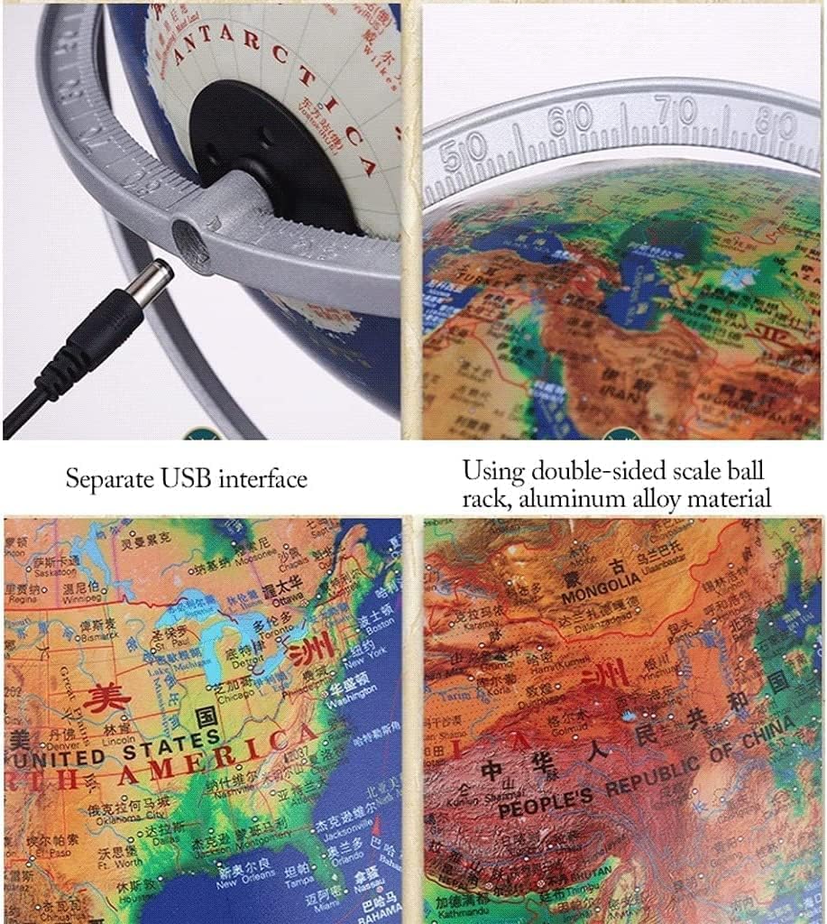 - Il nostro mappamondo è realizzato con materiali sicuri e affidabili, garantendo dettagli chiari e vividi e un design robusto e stabile per un maggiore supporto. Il supporto per bilancia è caratterizzato da un design in lega di alluminio bifacciale resistente, strutturato e durevole, abbinato a una base in legno importato per praticità ed eleganza. - Scopri il design sferico tridimensionale in rilievo che solleva il terreno di circa 2 mm, offrendo un'esperienza tattile che dà vita al mondo. - Goditi la praticità di un globo illuminato con luce controllata da un interruttore, che consente un'accattivante funzione fosforescente che accende la curiosità e incoraggia l'esplorazione. - L'interfaccia USB rimovibile aggiunge praticità al design, rendendolo facile da smontare e scollegare quando non in uso, fungendo da elegante decorazione per qualsiasi ambiente domestico o d'ufficio.