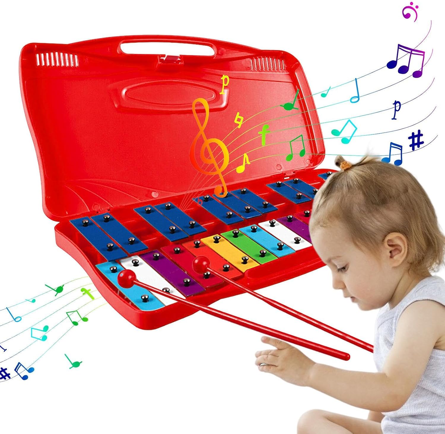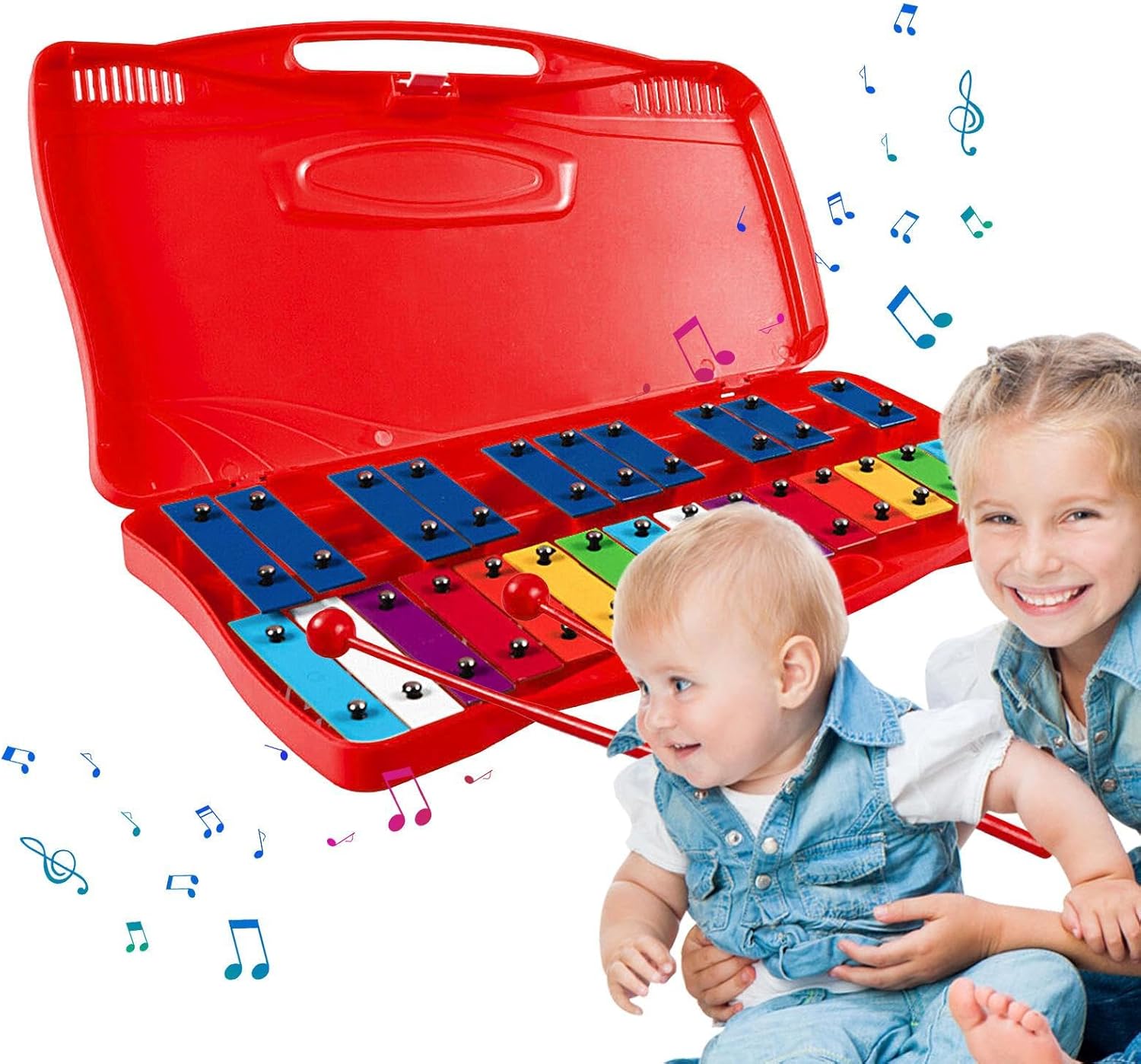 Coltiva il talento: accendi la passione dei bambini per la musica con Glockenspiel for Kids Metal. Dai il via al loro viaggio nel suonare e coltiva il loro interesse e talento musicale, illuminandoli con la conoscenza della musica. Prestazioni superbe: un glockenspiel a 25 note finemente accordato per bambini in metallo che offre una qualità del suono eccezionale. Ogni chiave è accuratamente sintonizzata per garantire una riproduzione confortevole e viene fornita con due bacchette. per i musicisti in . Accattivante creazione del suono: con il suo colore brillante e il design facile da trasportare, questo glockenspiel attirerà l'attenzione dei tuoi bambini e ispirerà la loro creatività musicale; inoltre viene fornito con una delicata custodia per un comodo trasporto e protezione. Prestazioni affidabili: grazie al suo materiale in alluminio di alta qualità resistente all'usura, questo carillon per bambini in metallo produce note chiare e precise. La sua struttura resistente alla ruggine e robusta garantisce una lunga durata per il divertimento dei giovani musicisti. Ottimo per le vacanze: regala loro questo Glockenspiel per bambini in metallo, un regalo eccellente per Pasqua, Capodanno, Ringraziamento e compleanni. Stimolare la creatività mentre imparano è un modo per ispirare i giovani musicisti.