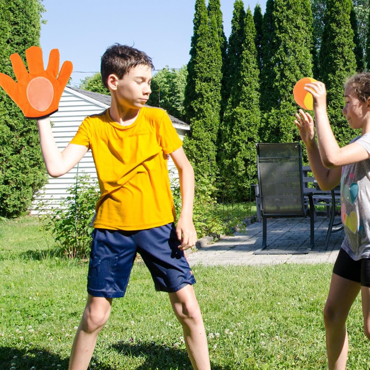 Materiale eccellente per il gioco lungo: il nostro giocattolo con guanti a sfera appiccicosi è costituito da tessuto per la pelle ed è morbido e comodo da indossare. I tuoi figli si divertiranno per ore senza ferirti le mani. Aumenta il divertimento e le abilità: questo giocattolo con guanti da palla appiccicosi non è solo un modo divertente e semplice per giocare e un gioco con i tuoi bambini, ma anche strumento per migliorare le abilità. Migliora la tua attenzione, le tue capacità sportive e il tuo coordinamento per gli occhi della mano mentre gioca. Adatto a ogni ambiente: questo giocattolo con guanti da palla appiccicosi è un modo divertente e semplice per giocare con i loro bambini in giardino, in piscina, sul prato, sulla spiaggia o sulla terrazza. Ogni occasione può dare divertimento e ridere. Facile da indossare: questo giocattolo con guanti a sfera appiccicosi per i bambini è e portatile e pesa solo 80 g, in modo da poter giocare dentro e fuori con tuo figlio e migliorare la tua intimità in qualsiasi momento e ovunque. Regalo squisito: questi guanti da palla appiccicosi sono fantastici perché possono facilmente catturare e lanciare palle. È un regalo per ragazzi e ragazze a cui piacciono i giocattoli freschi e durevoli, specialmente per il nuovo anno, il compleanno o il Natale.