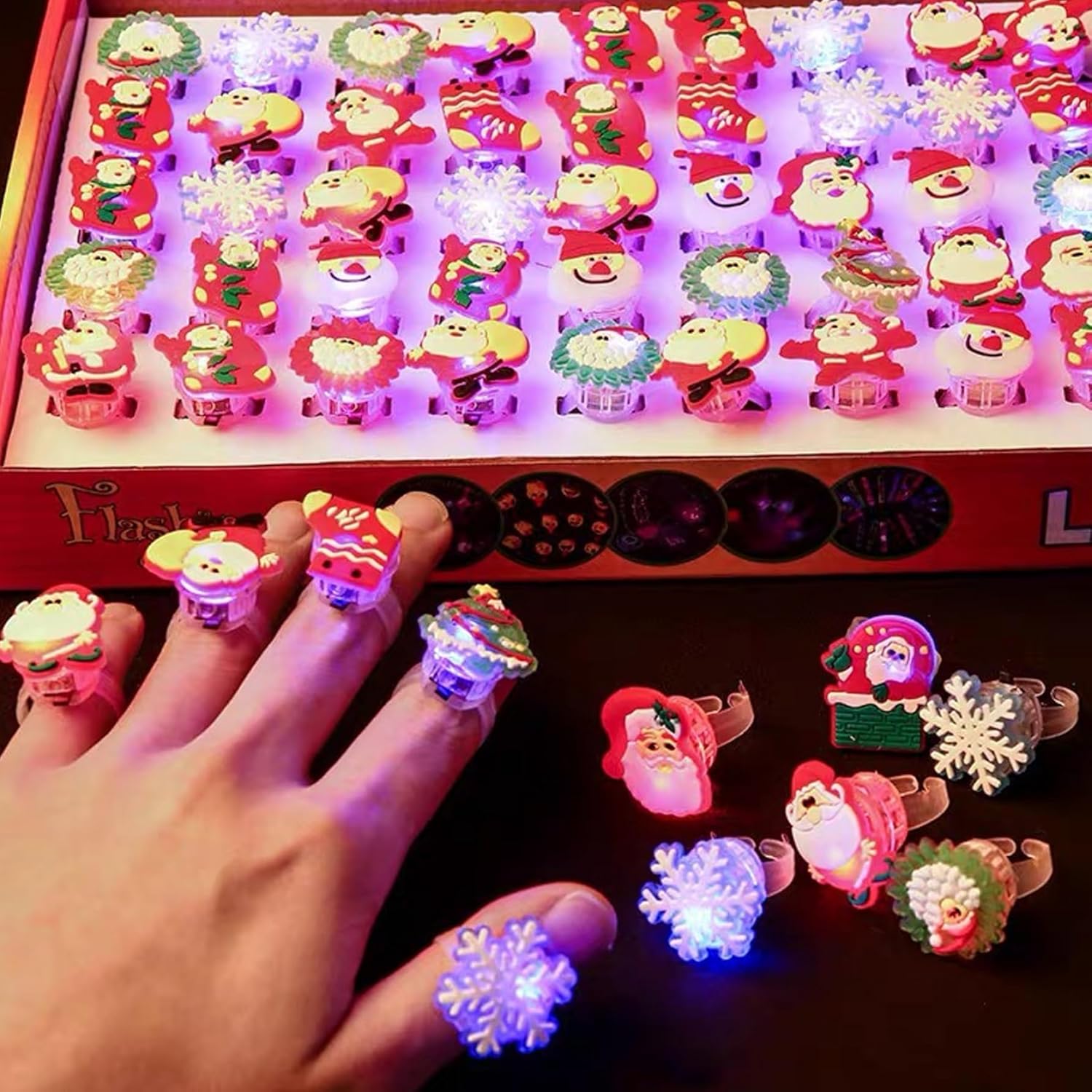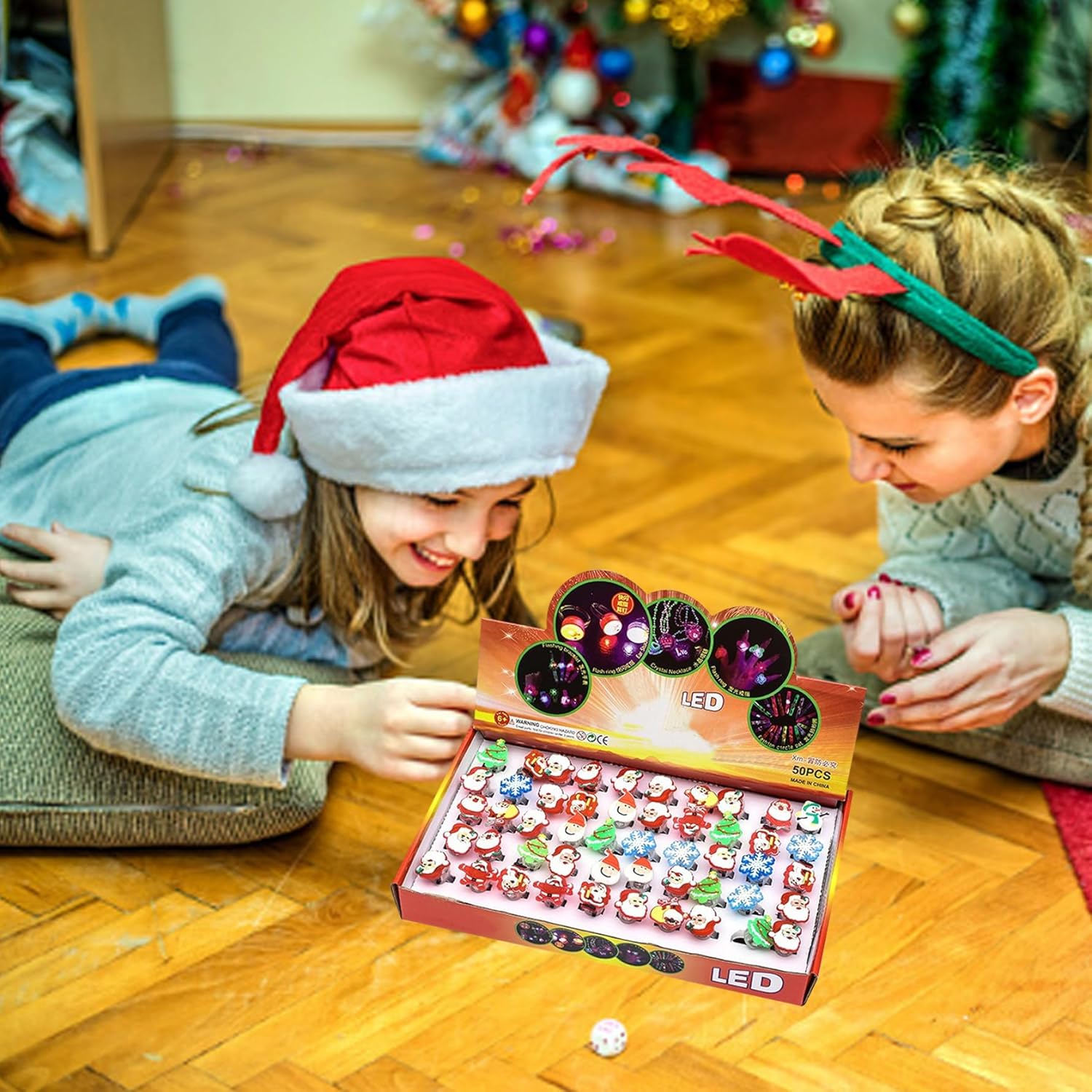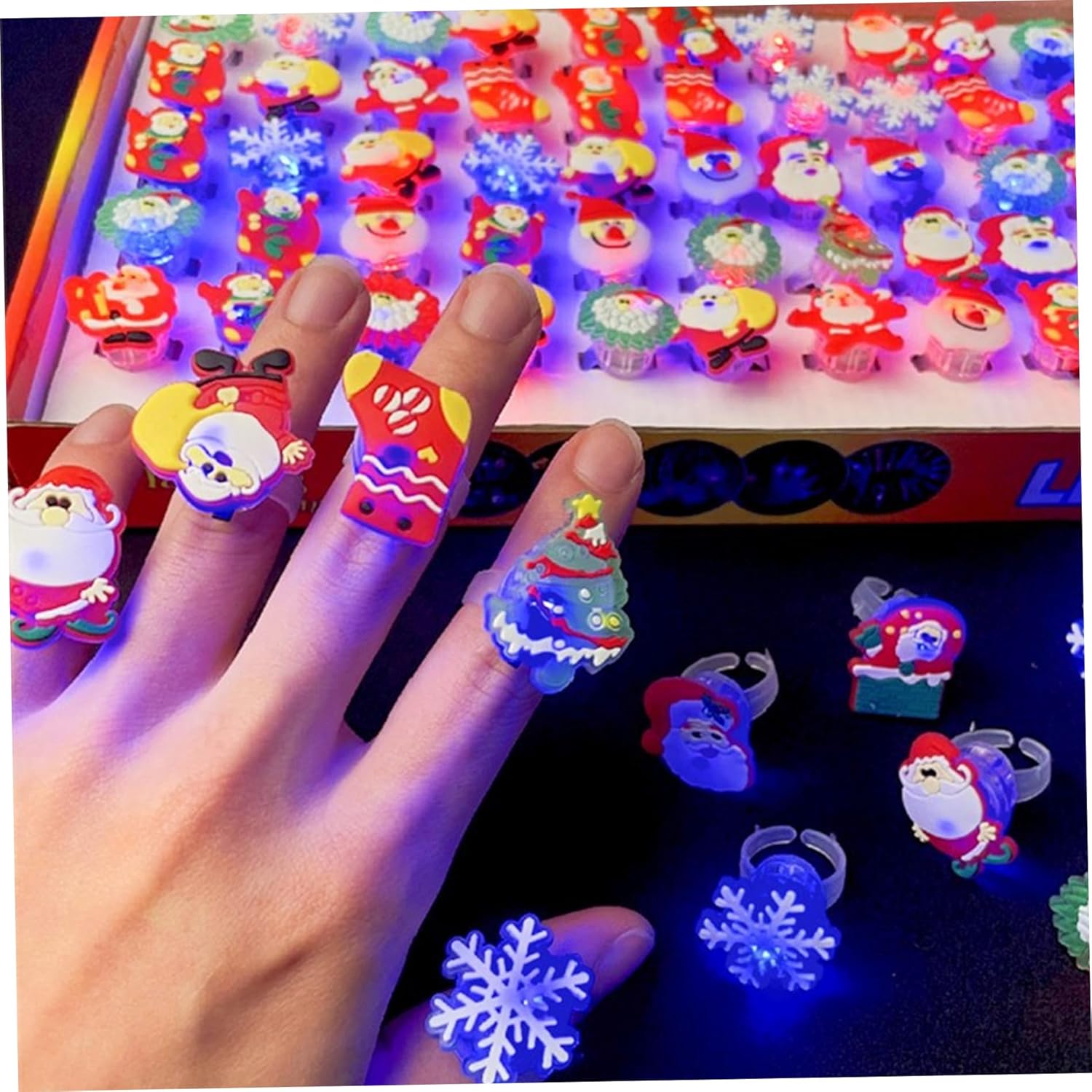 Regali per feste di Natale e di compleanno: che tu festeggi il Natale o il tuo compleanno durante le vacanze, gli anelli lampeggianti sono regali divertenti per feste che saranno amati e ricordati..Aggiungi un ulteriore livello di intrattenimento al tuo incontro di vacanze con questi anelli carini e luminosi..Sono molto adatti per creare ricordi e risate di lunga durata. Un set di 50 anelli: questo set include 50 anelli luminosi a tema intorno a Natale, con forme non ripetitive come Babbo Natale, pupazzo di neve, fiocchi di neve, albero di Natale, scatola, calzini di Natale, ecc., Permettendoti di sentire l'atmosfera festosa di Natale. Design natalizio 3D: gli anelli illuminati di Natale adotta disegni natalizi 3D carini, vividi e realistici che renderanno sicuramente felici bambini e adulti..Dai pupazzi di neve a Babbo Natale, questi anelli danno vita allo spirito natalizio. Anelli lampeggianti a LED: gli anelli di bagliore sono dotati di una luce a LED luminosa lampeggiante, alimentata da una batteria incorporata che può essere facilmente sostituita, aggiungendo vitalità e divertimento alla tua festa o evento..Guardare questi anelli prendere vita nell'oscurità, creando un brivido affascinante e aggiungendo un tocco di magia alla tua celebrazione. Plastica: i bomboniere di feste di Natale sono realizzati in plastica e possono resistere all'eccitazione delle celebrazioni..Sono al sicuro e molto adatti a bambini di tutte le età.