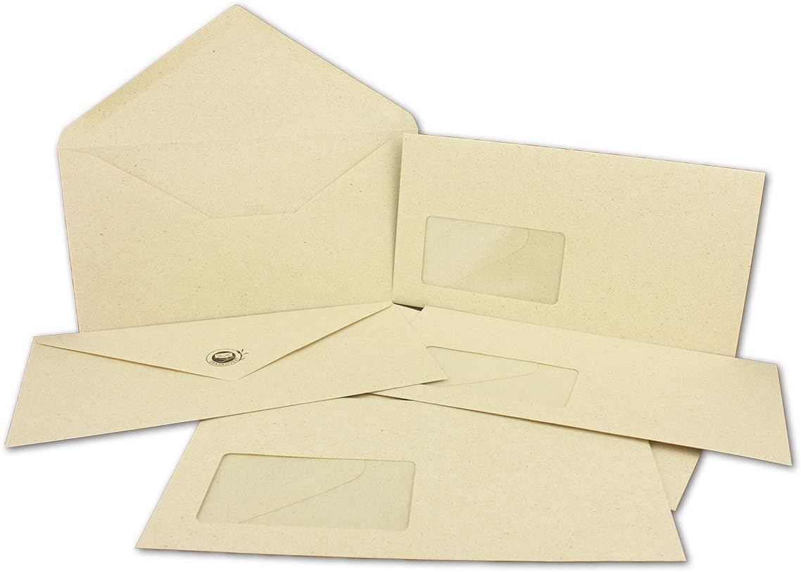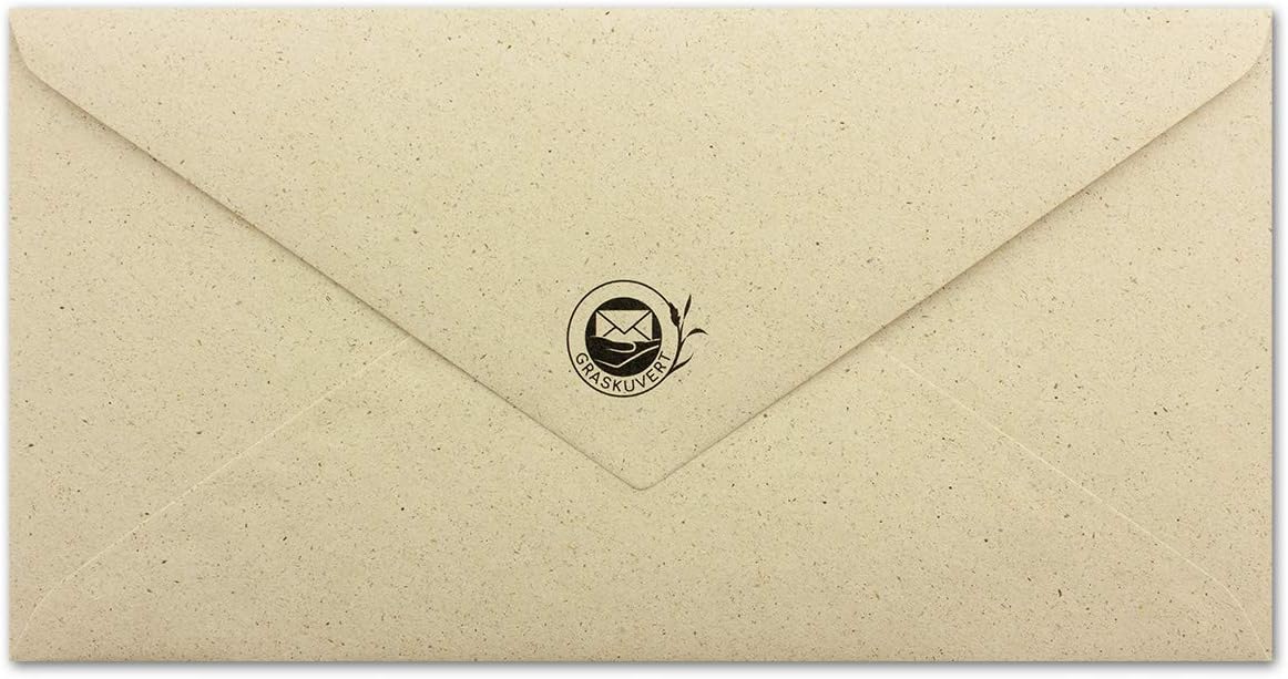 Glüxx-Agent - 250 buste per lettere, formato DIN lungo, carta ecologica, in carta erba, 11 x 22 cm, 85 g/m², incollaggio a umido con finestra