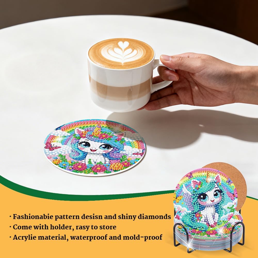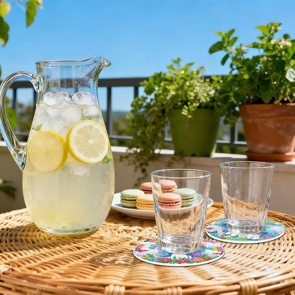 Creativo fai da te per alleviare lo stress: il processo di incollaggio di una resina scintillante "diamante" su una tela a mano è molto antistress e pieno di divertimento. Non è solo la produzione di beni pratici, ma anche un periodo di concentrazione e relax del tempo fatto a mano, e porta un grande senso di prestazioni dopo il completamento, che è molto adatto per gli appassionati fatti a mano. Set completo di facile accesso: il set contiene tutto il necessario per la produzione di 4 sottobicchieri: tele autoadesive, diamanti in resina colorati, penna diamantata, cera e ciotola. Con gli accessori completi e le istruzioni chiare, anche i principianti possono facilmente iniziare e godersi la gioia del lavoro finito. Decorazione decorativa con effetto brillante: la superficie dei sottobicchieri è decorata con centinaia di diamanti in resina di alta qualità, che riflettono in modo brillante e luminoso sotto la luce e hanno un effetto estremamente decorativo. Con una varietà di motivi alla moda tra cui scegliere, aggiungete un tocco artistico unico e un fascino elegante al vostro tavolo da pranzo, ufficio o sala da tè. Regalo ideale per attività familiari: questo è un regalo unico con un tocco personale, per amici, familiari o colleghi. È anche perfetto come attività interattiva per genitori e figli per promuovere la pazienza, la concentrazione e le abilità pratiche e trascorrere insieme il tempo di qualità. Pratici e durevoli con funzione di protezione: i sottobicchieri finiti non sono solo belli da vedere, ma anche estremamente funzionali. La base ispessita fornisce un eccellente isolamento termico e protegge efficacemente le superfici del tavolo dalle tazze calde. La superficie liscia è facile da pulire: basta pulirla con un panno umido per renderla come nuova: durevole e igienica.