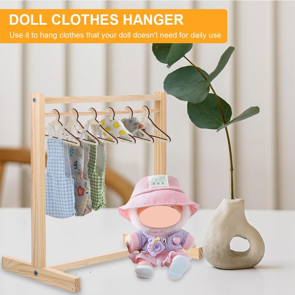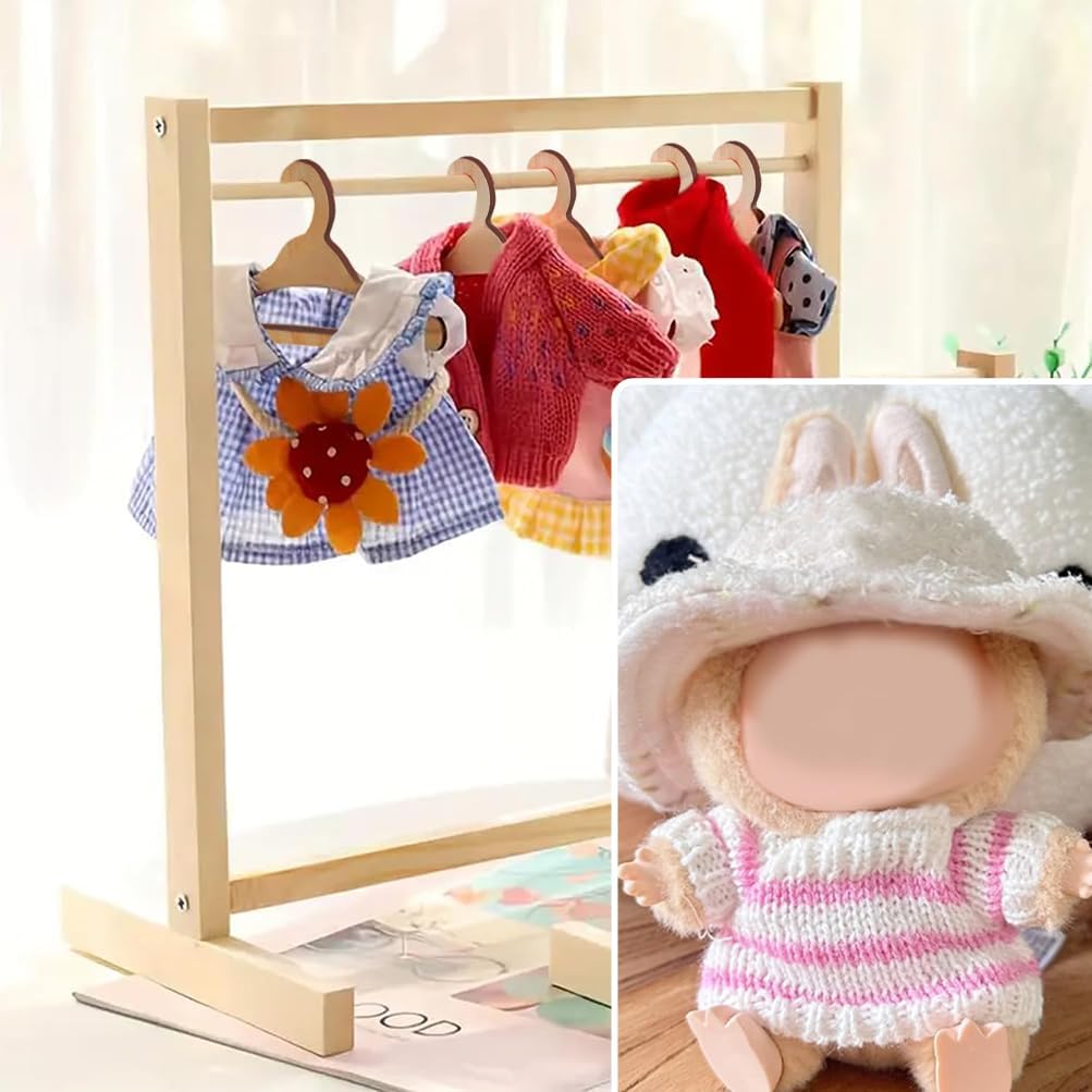 Gruccia in legno per bambole: questa gruccia è adatta alle bambole Labubu e può essere utilizzata per riporre vestiti, zaini, maglioni, cappelli, borracce e altri accessori, rendendo la conservazione e l'esposizione dei vestiti più pratica ed elegante. Include: questa confezione include 6 grucce e un supporto da pavimento per riporre e appendere comodamente una varietà di adorabili e alla moda vestiti per bambole. I vestiti dei peluche da 17 cm sono troppo piccoli e si danneggiano o si perdono facilmente. Appendili per mantenerli in ordine e belli! Dimensioni e materiale: le grucce misurano circa 20 x 10 x 17 cm. Questi mini accessori per grucce sono realizzati in legno robusto ed ecologico, con una finitura lucida per una sensazione di morbidezza. Sono molto pratici e resistenti e dureranno per anni. Facili da indossare: le nostre grucce sono progettate specificamente per i peluche da 17 cm e sono pratiche e facili da usare. Puoi persino appendere i vestiti lavati delle bambole ad asciugare, rendendo facile scegliere o cambiare i vestiti senza dover cercare gli adorabili piccoli. Ideale per i collezionisti: i vestiti per bambole, graziosi e alla moda, sono disposti ordinatamente sulle grucce, rendendole perfette per l'esposizione o la collezione. Aggiungono uno stile ordinato e raffinato a qualsiasi collezione di bambole e accrescono il senso di realizzazione del collezionista. Che tu collezioni bambole di peluche in vinile o semplicemente ami le graziose decorazioni, questa gruccia per bambole in legno è un regalo o un oggetto da esposizione imperdibile!