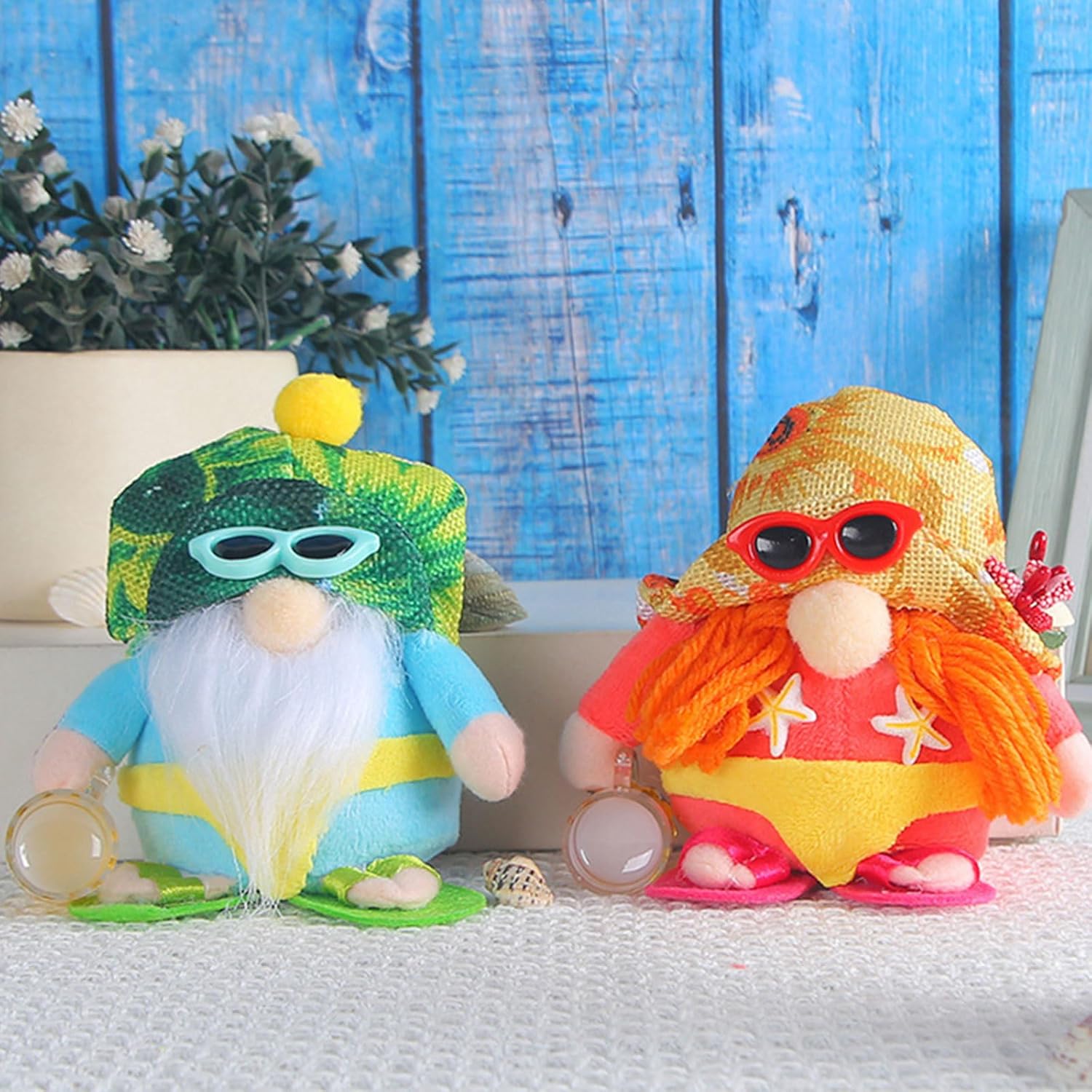 Questi gnomi da spiaggia sono realizzati in tessuto di alta qualità. Le fibre all'interno del corpo del nano sono morbide, confortevoli e resistenti. Lo gnomo da spiaggia è un regalo per compleanni, inaugurazioni di case, anniversari, spiagge, matrimoni, regali di amicizia, regali di laurea e altre decorazioni festive per l'ufficio. E gli gnomi ci portano felicità, felicità, calore e felicità nella tua casa. I nostri gnomi bikini da spiaggia sono perfetti per decorare la tua casa o la tua fattoria. L'esclusivo motivo da spiaggia dello gnomo è semplice e si adatta alle decorazioni a tema spiaggia.