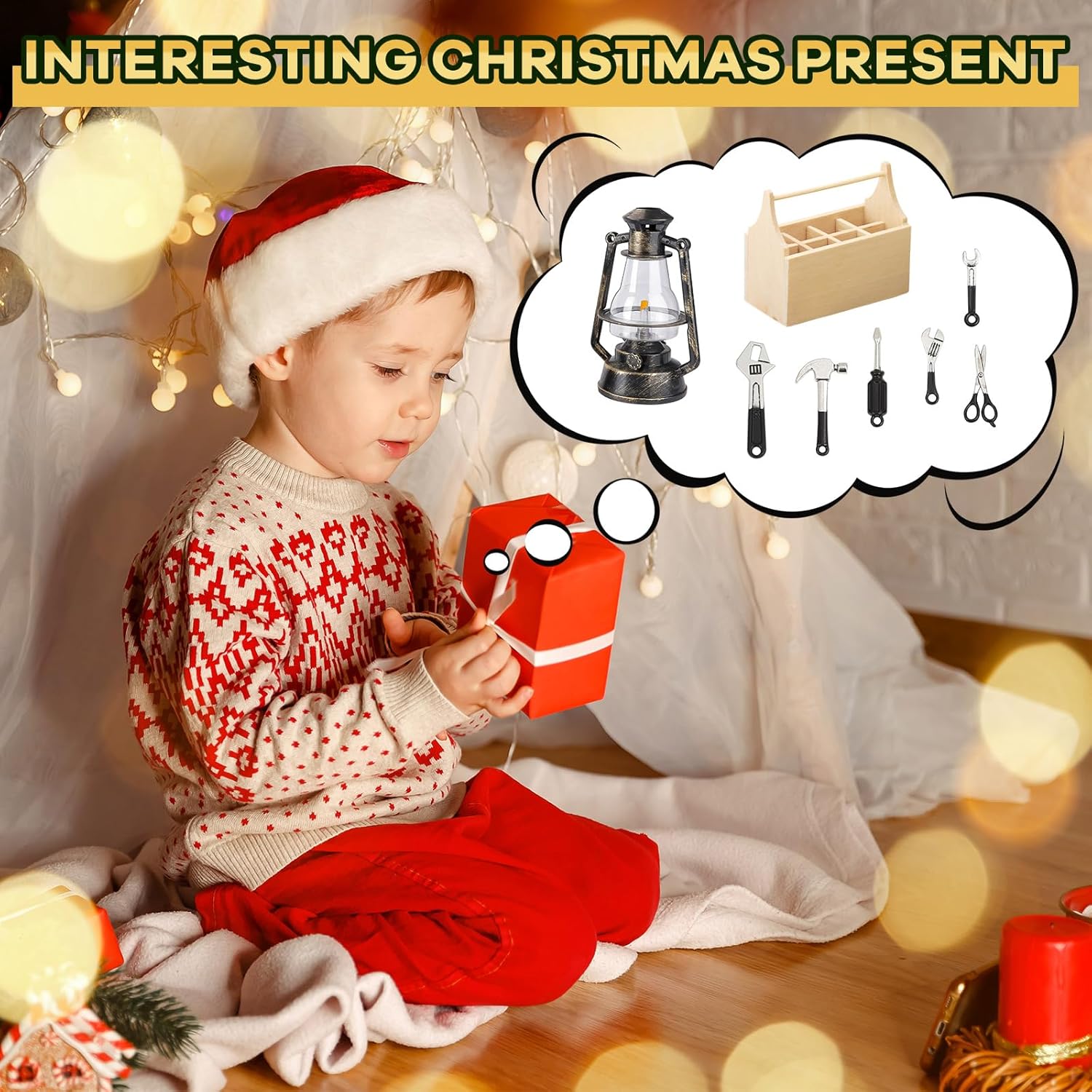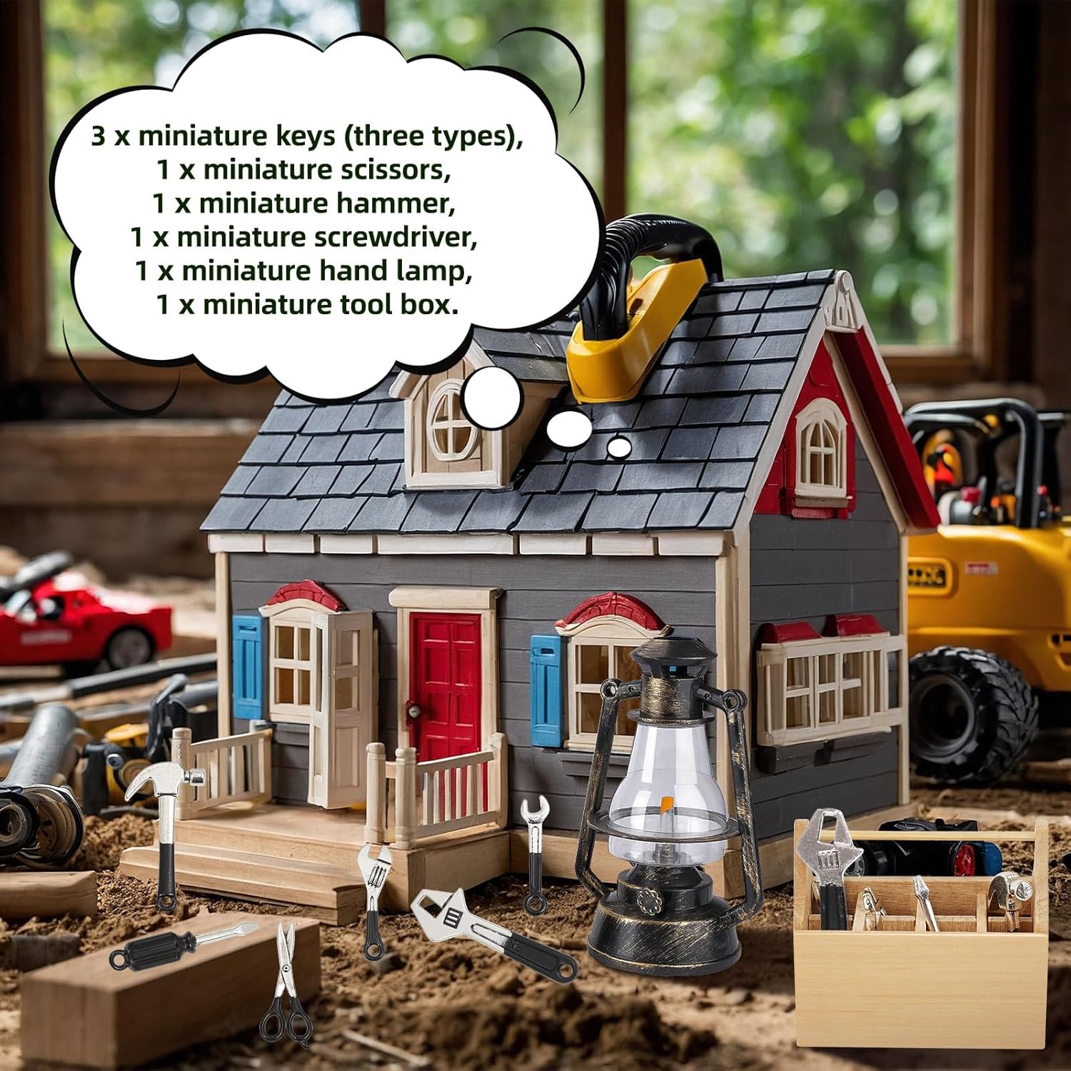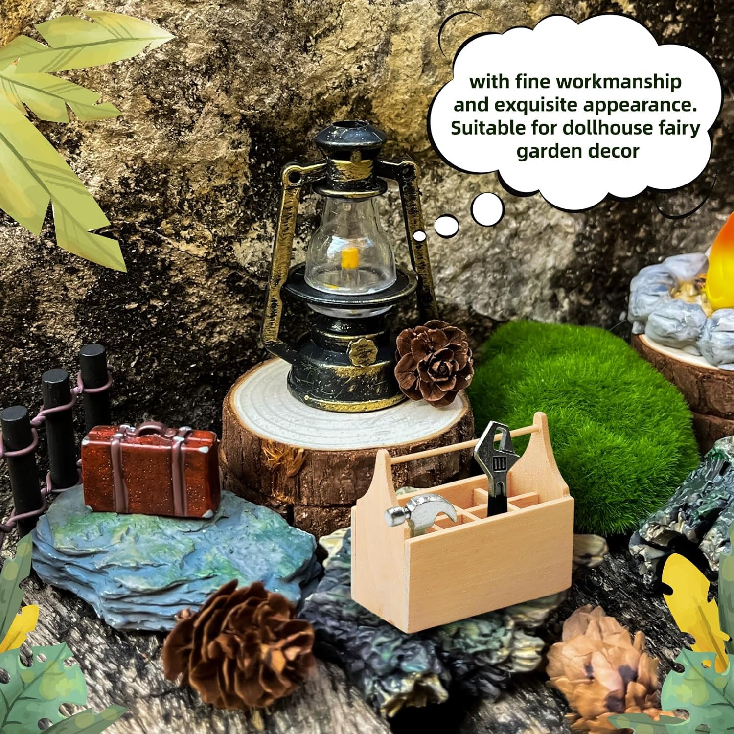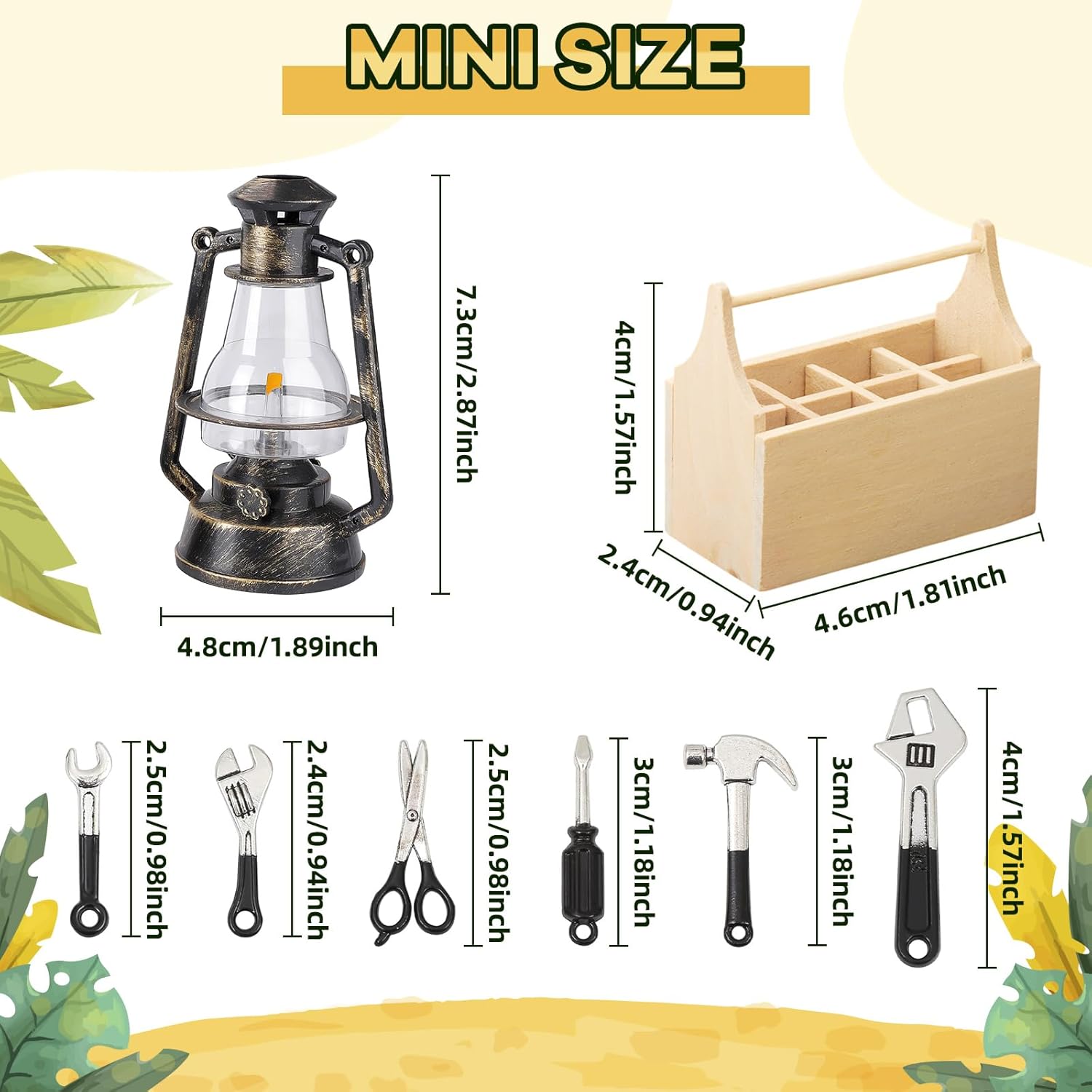 Materiali di alta qualità: i nostri accessori per cantieri Wichtel sono realizzati in lega di alta qualità e legno per garantire qualità e durata superiori. Ogni pezzo è realizzato con cura per aggiungere un tocco di realismo alle tue scene in miniatura. Set completo di attrezzi da giardino in miniatura: questo set completo di accessori per micro paesaggio contiene tutto il necessario per la cura del giardino della casa delle bambole. Il set include 1 forbici, 3 chiavi, 1 cacciavite, 1 martello, 1 mini lanterna da campeggio e 1 cassetta degli attrezzi in legno. Accessori versatili: questo accessorio in miniatura è perfetto per case delle bambole, giardini fatati o come decorazione per gli amanti delle piante. È ideale per creare incantevoli scene da giardino in miniatura, case delle fate, paesaggi in miniatura o aggiungere un tocco unico alle vostre piante da appartamento. Regalo ideale per gli amanti della casa delle bambole: questo set di accessori è una deliziosa sorpresa per gli amanti della casa delle bambole nella vostra vita. È un regalo meraviglioso per compleanni, feste, Pasqua, Ringraziamento, Natale, Capodanno e qualsiasi altra occasione. Lanterna in miniatura: il set include una lanterna in miniatura che dona al tuo giardino delle bambole un'atmosfera accogliente e piacevole. Il suo design vintage completa la cassetta degli attrezzi rustica e migliora il fascino generale della tua struttura in miniatura.